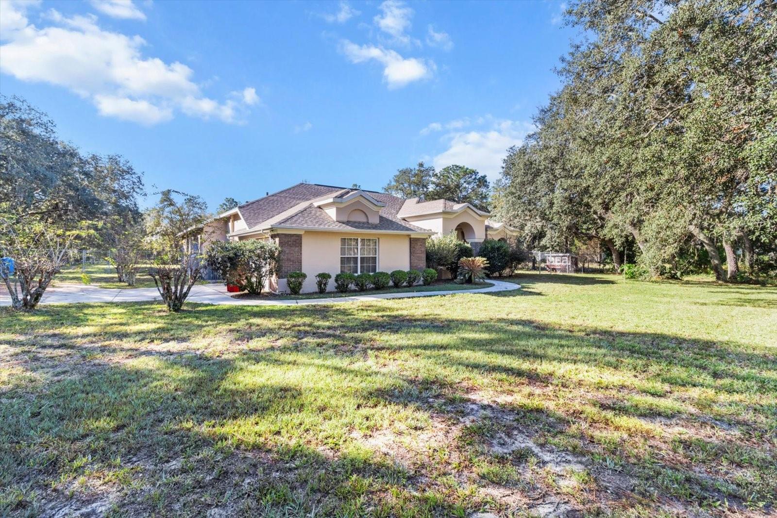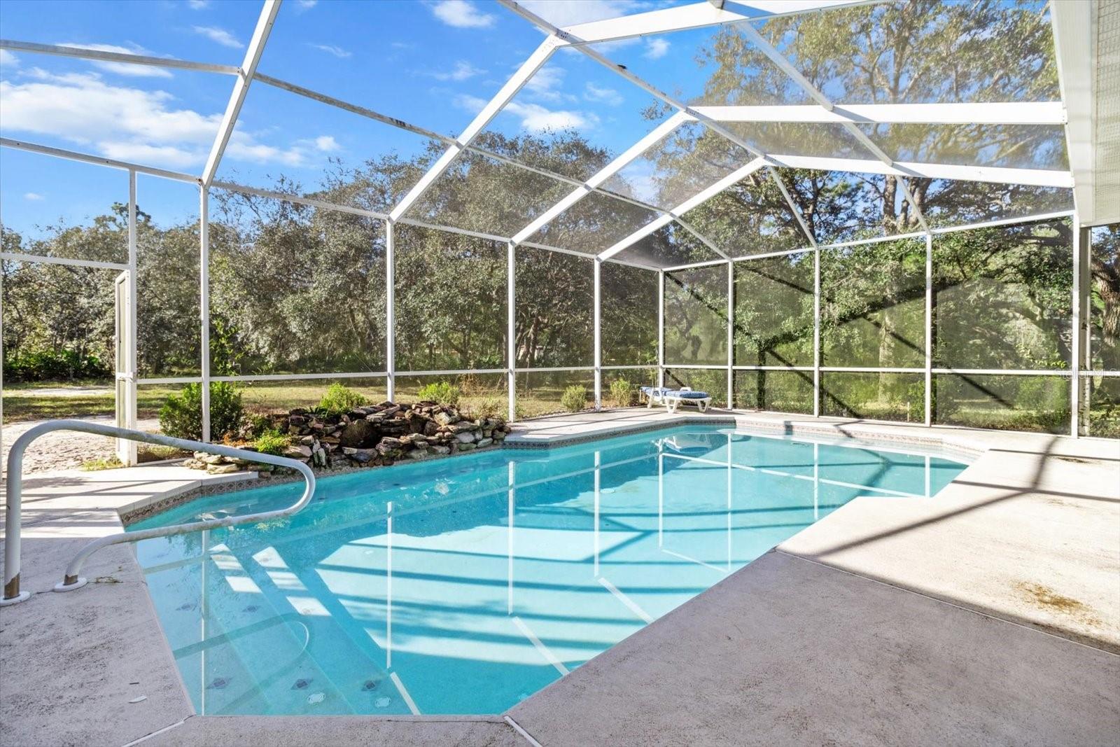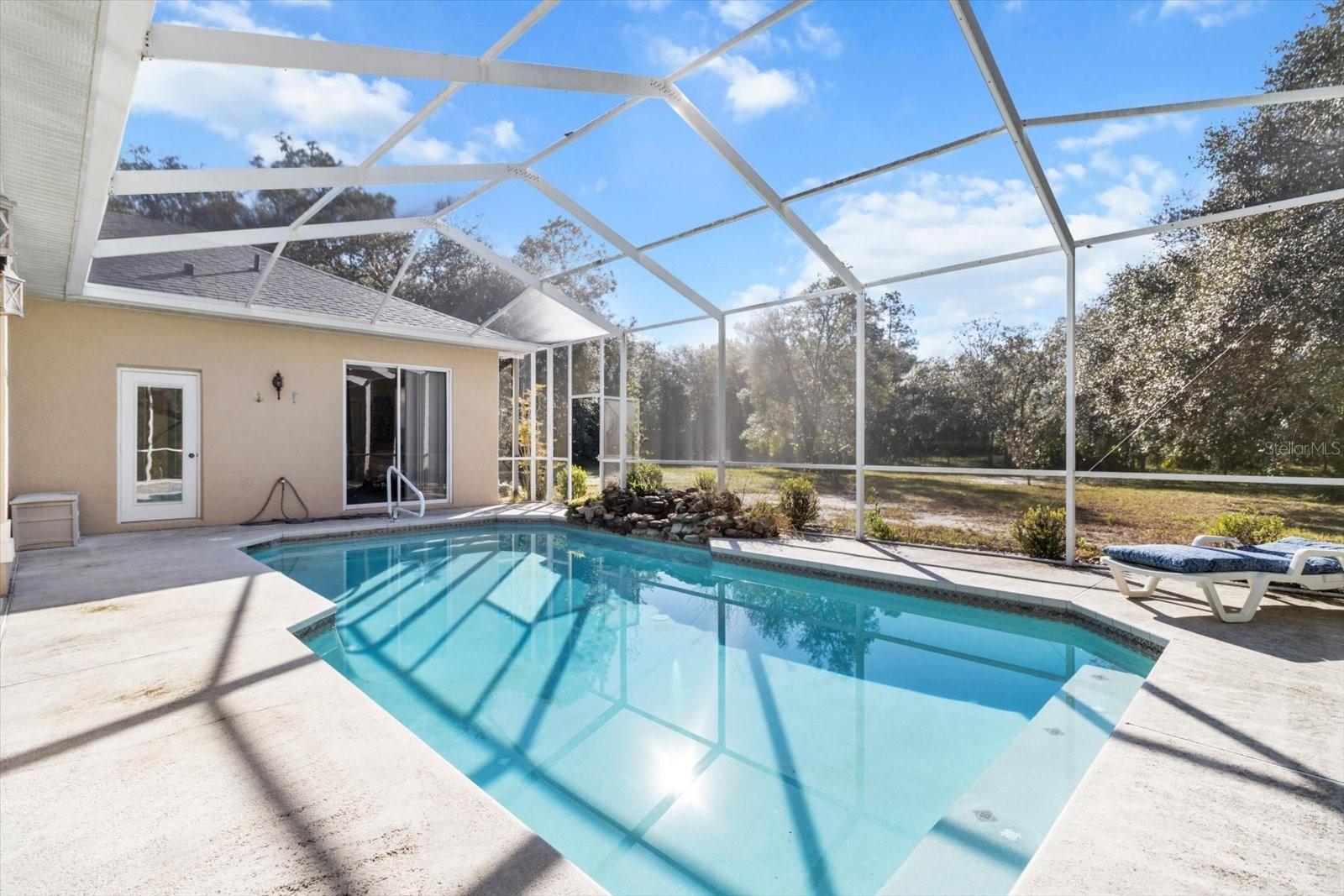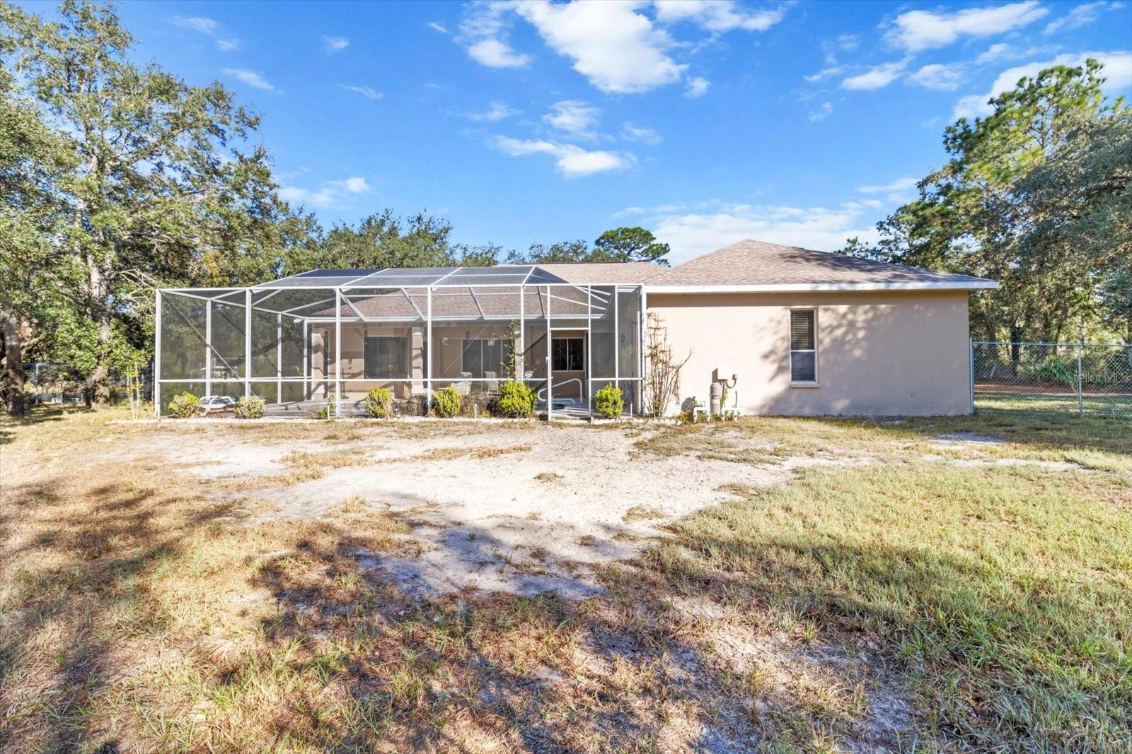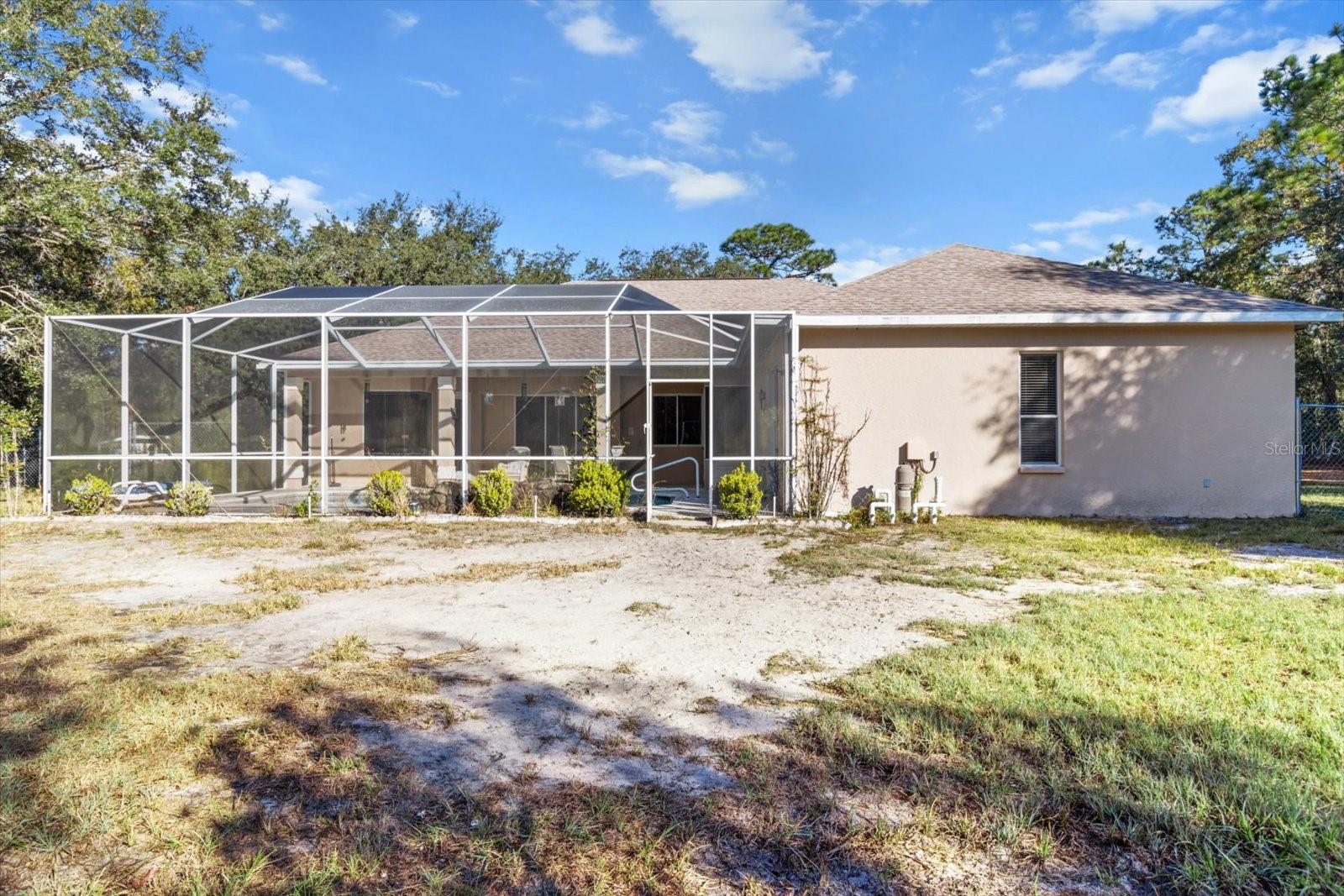 This high-and-dry Flood Zone X property is ready to become your dream home! A stunning 3-bedroom, 2-bath pool home sits on 2.44 acres with no restrictions or HOA, offering freedom for your horses, chickens, and toys. The large fenced front and back yards provide plenty of space for outdoor enjoyment. Inside, the open living, kitchen, and dining areas boast 12-ft ceilings, perfect for showcasing your personal style. Relax by the gas fireplace on cool evenings, or retreat to the primary suite with two walk-in closets, direct access to the lanai and pool, and a spa-like bathroom with dual sinks, a jetted tub, and enclosed shower and toilet. The kitchen features newer appliances and a corner window overlooking the lanai and pool area. Step outside to a screened pool, a charming chicken coop for fresh eggs, and a backyard extending beyond the fenced area, offering room to roam. Located near Homosassa’s waters for fishing, boating, and diving, this 2001-built home includes updates with PLUMBING, WATER HEATER, ROOF as of 2023 and HVAC with a 10-YEAR WARRANTY as of 2025! Conveniently close to grocery and retail stores, this is Homosassa living at its best!