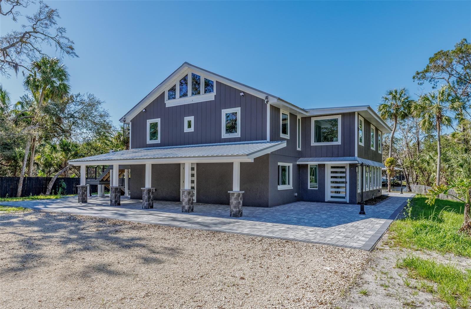 Motivated Seller! Now is the time to own the BEST waterfront home! Perfect Investment Property as this area does not have deed restrictions, up to $600 a night! Peaceful, Private, Pristine! This exquisite and magnificently scaled modern masterpiece is prominently positioned on more than an acre of property. The dock is located on a canal that will give you access to the gulf with a short boat ride. The custom touches define sophistication throughout the home. All levels of the home give you gorgeous views and bath you in natural sunlight. The upper level has an open concept floorplan that is perfect for entertaining. The beautiful tongue and groove ceiling flows throughout the living and kitchen spaces. The gorgeous residential “Chef’s” kitchen is equipped with high-end Café Appliances, unique Cristillo countertops and stunning cabinetry. All 3 bedrooms have their own ensuites which are tastefully designed. There is a separate space in the home that would make a fabulous office, den, workout room or even a fourth bedroom. High speed internet is available in this remote location. The extension of living space is carried outside with a large outdoor kitchen, beautiful paver patio with firepit and a massive deck constructed out of composite materials. The deck will be completed January 2025. There are too many upgrades to mention. Check out the full detailed list. This home is in a fabulous golf cart community that has some of the best food, drinks and low-key atmosphere all within a golf cart ride. There are no deed restrictions so you can park your RV at home. Even though this fabulous property gives you the “Old Florida” feel you are still close enough to shopping and the all the major cities. Tampa International Airport is an hour drive. Orlando International Airport and Disney World are less than 2 hours! Seller is also willing to accept Bitcoin as partial or full payment in lieu of traditional funding. This truly is a lifetime opportunity for any buyer who is seeking a private retreat that glistens with luxury!