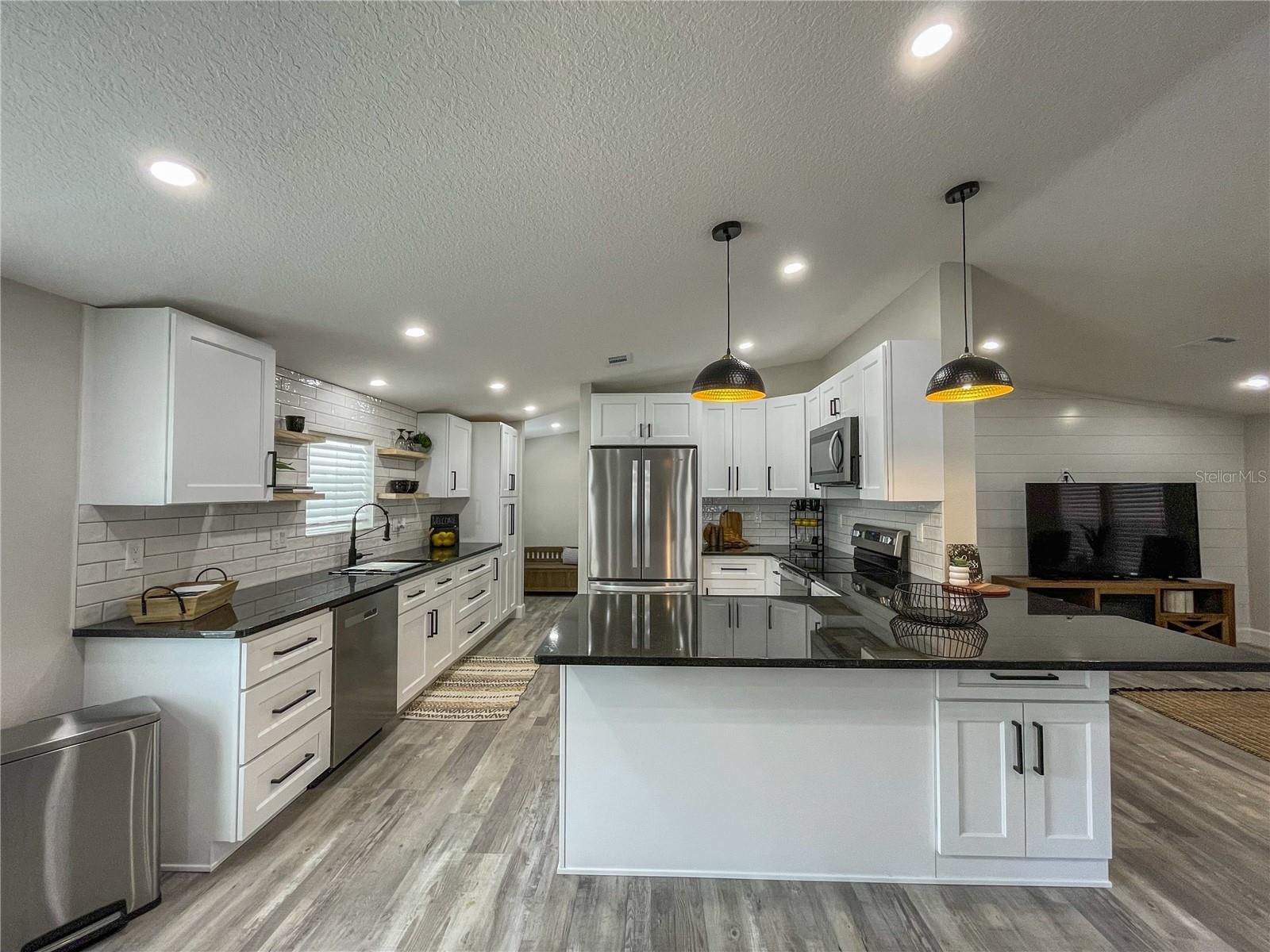 FULLY RENOVATED MODERN FARMHOUSE ON 1.89 FENCED ACRES – BRING YOUR RV! This turnkey 3-bed, 2-bath retreat in Whispering Woods sits on 1.89 Fully Fenced and Cleared Corner Lot with a Circular Driveway, Two Gated Entrances, and over 80 Mature Oak Trees. Nearly 5,000 sq. ft. of Concrete, including an Enclosed Front Porch, provides ample space for entertaining and parking your RV, Boat, Trailers, and more! Step inside to a Brand-New Interior, featuring a Designer Kitchen with new Shaker cabinets, Granite Countertops, Stainless Steel Appliances, and Stylish Fixtures. Newly Remodeled Kitchen and Bathrooms, New Doors, New Appliances, and Freshly Painted. Fully Remodeled Bathrooms, New Luxury Vinyl Plank Flooring, Recessed LED Lighting, and Shiplap Accents add a Modern Farmhouse touch! Every detail is New, from the Doors, Trim, and Baseboards to the Lighting, Fans, and Wire Closet Shelving. Enjoy an iced beverage of your choice in your spacious backyard to bask in the essence of the Florida lifestyle! **New washer & dryer included. **Brand-new water heater. **Huge storage shed wired and ready for electric. Prime Location right off Homosassa Trail for easy access to the Nature Coast through US-19 for adventures throughout Homosassa and Crystal River! Near multiple Marinas and Docks to set sail into the Gulf! Just a short drive to Suncoast 589 to travel to St Petersburg and the greater Tampa Bay Area. MOVE IN READY - SCHEDULE YOUR SHOWING TODAY!