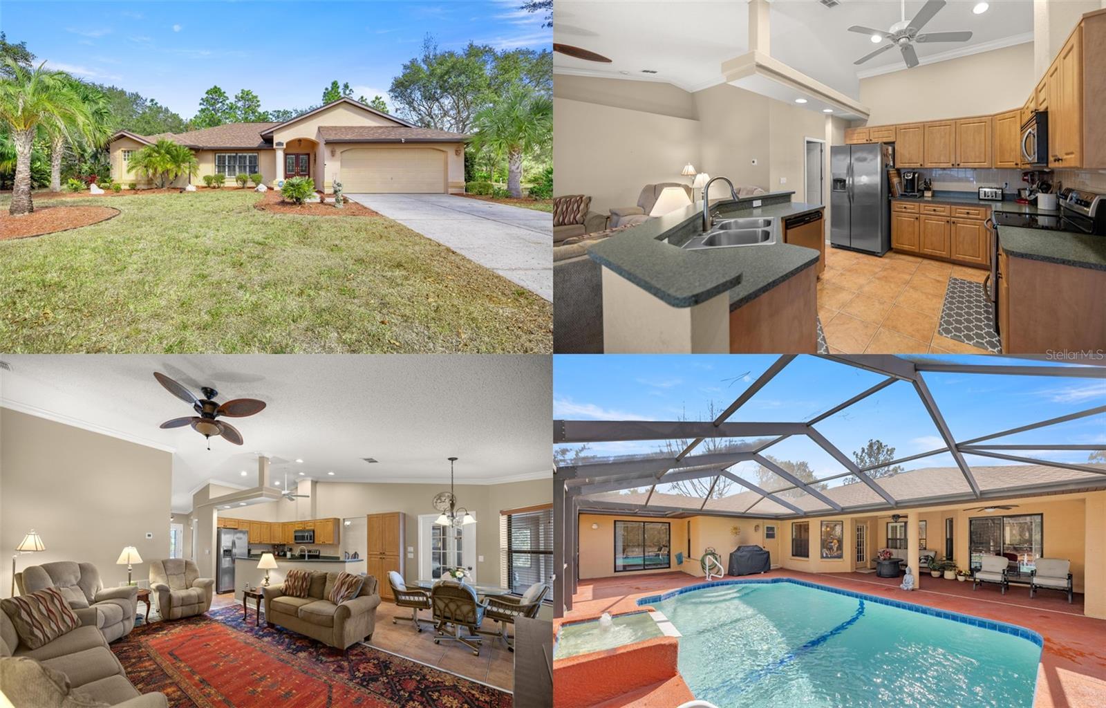 Welcome to this amazing Pool Home with a Brand New Roof! Located in Cypress Village East of the Sugarmill Woods Community in Citrus County. This property features 4 bedrooms, 2 full baths and 2 car garage with 2,148 living sq ft. Tile and LVP flooring throughout with no carpet to replace. Split floorplan offers privacy for multi-generational living options. This traditional Florida home has both a Living room and Dining room combo as well as an eat in kitchen and family room combo. The second guest bath doubles as a pool bath with a door to lanai. The screened in pool deck patio is perfect for entertaining the whole family or relaxing at the end of the day with a glass of wine listening to the waterfall. The .32 acre lot is private with mature landscaping including palm tress and an orange tree to enjoy the quintessential Florida lifestyle. No rear neighbors will ever build with the Greenbelt directly behind. Recent updates include: NEW ROOF 2024 with transferable warranty, HVAC 2020 with Evaporator and Handler replaced in 2024, new whisper quiet garage door opener, LVP flooring in 2021. Storm shutters available to use for peace of mind. This sought after community of Sugarmill Woods has a low HOA of only $125.00 annually. There is the option to join the Sugarmill Woods Country Club to access more amenities such as golf, pickleball, gym, junior Olympic pool and more. Ideal location in Homosassa is close to shopping, restaurants, medical centers and Tampa International Airport. Enjoy nearby Weeki Wachee Springs State Park and Homosassa Springs where you can swim with the manatees, snorkel, kayak, boating and fishing. The time to start enjoying this amazing Pool home and everything it has to offer is now!