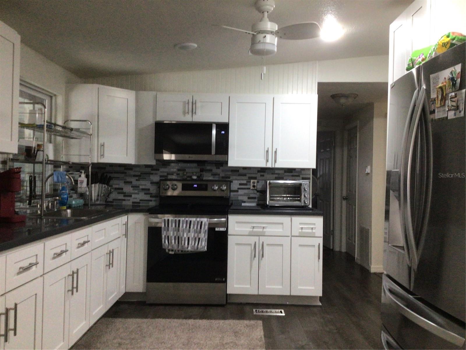 This home has literally been renovated from top to bottom starting with a 2024 roof and brand new subflooring. Enter the front door to the spacious living room and dining room via an open floor plan. The kitchen has been totally renovated with solid surface countertops tile backsplash, new cabinets and all new appliances that will stay with the home. There is luxury vinyl plank throughout the home with new carpeting in the master bedroom. The bathrooms boast slate tile and all new fixtures. Exit through the laundry room into the breezeway and into the 30x30 shop/man cave. Shop features a concrete floor along with 12x12 roll up doors on either side to make it drive through for even the biggest of vehicles. There is also a tiny house/mother-in-law suite with full bath, kitchenette and studio type bedroom/living room. This home has it all! Don't wait to schedule your personal tour of this exciting property.