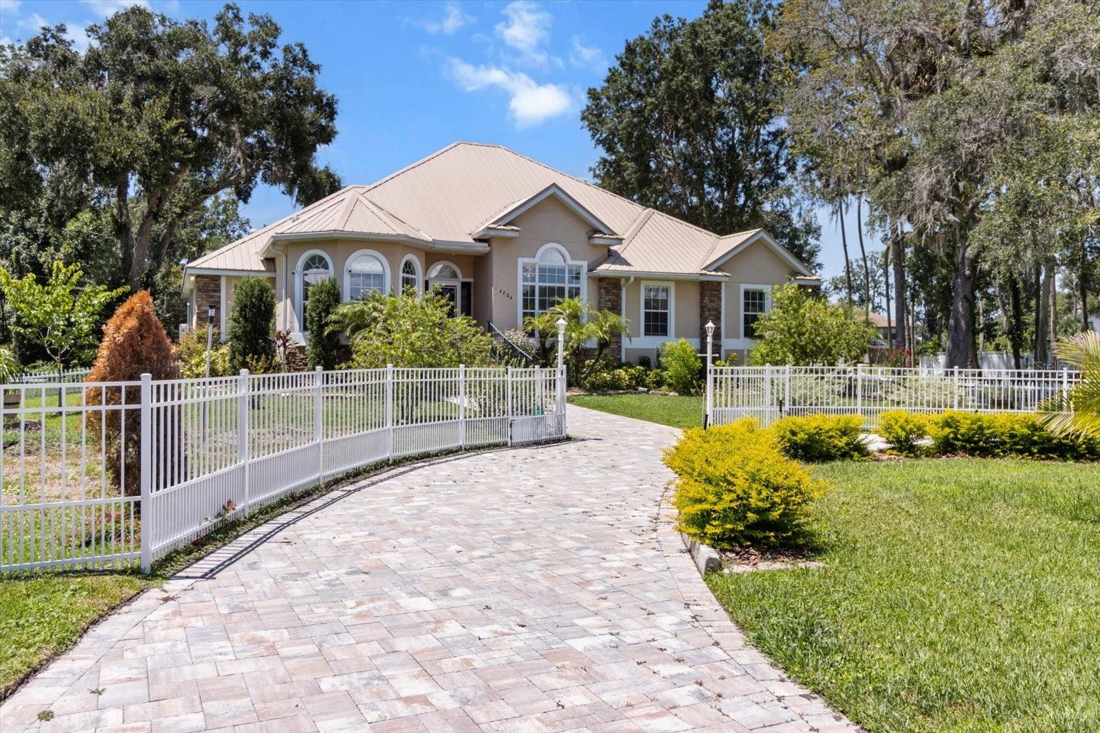 NEVER FLOODED! Custom-built in 2006, this beautiful residence is located in Bluewater Estates, just minutes from Homosassa’s National Wildlife Park and the main springs of the Homosassa River. This 3 bedroom, 3 bath home with den offers over 2,100 square feet of living space and more than 2,900 square feet under roof. The open floor plan features cathedral ceilings, Shaw hardwood floors, and ceramic tile throughout with lush carpeting in the bedrooms. The spacious kitchen is designed for both cooking and entertaining with granite countertops, stainless steel appliances, and custom wood cabinetry. The owner’s suite includes dual walk-in closets, dual sinks, a jetted garden tub, separate shower, and a mini-split A/C for added comfort. A whole-house generator powered by an owned propane tank provides peace of mind, while the newer metal roof ( 2022) adds lasting value. Additional highlights include a circular brick paver driveway, rear-entry garage, sprinkler system, alarm system, in-wall pest control, and decorative fenced dog runs both front and rear. With its prime location, thoughtful upgrades, and quality finishes, this home is a pleasure to show