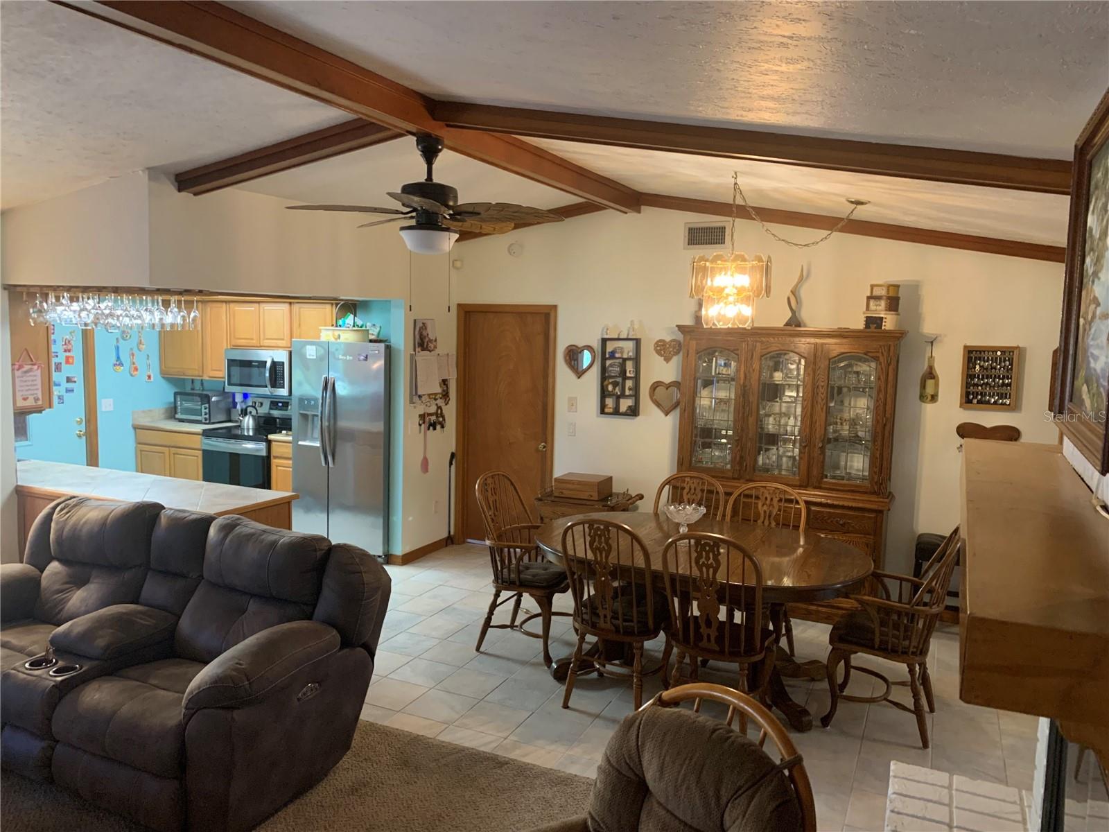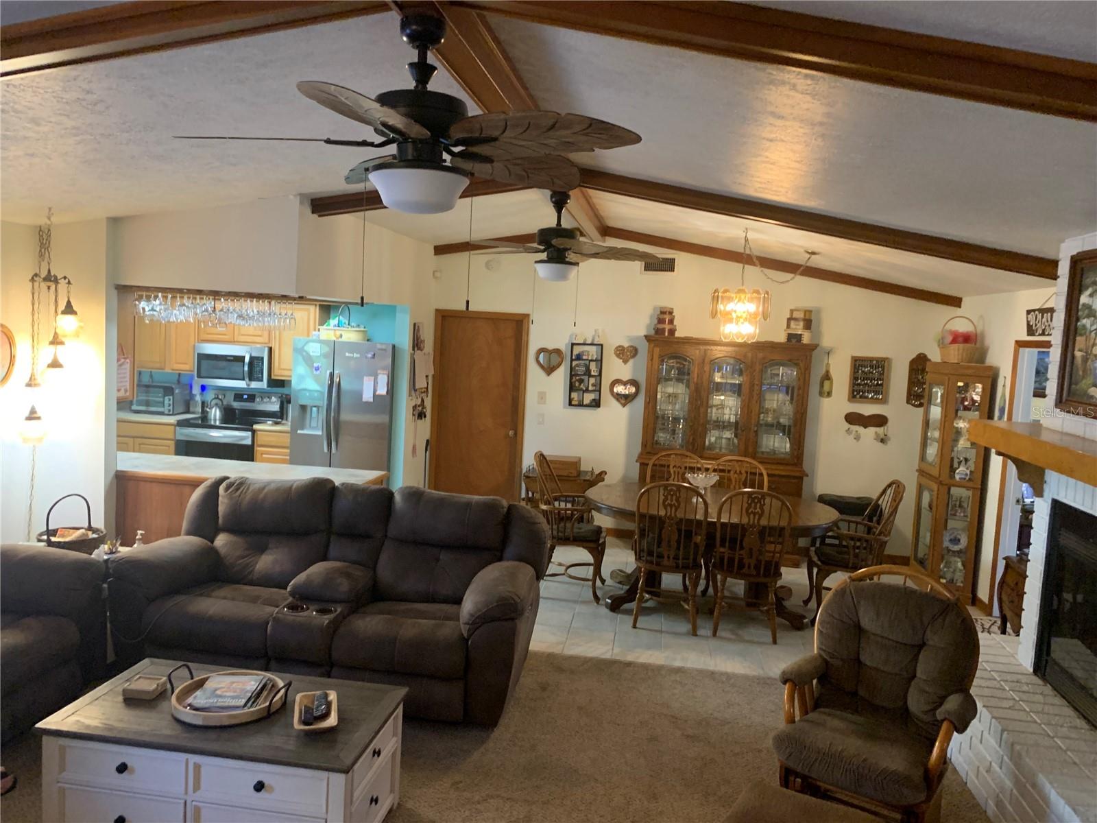 REDUCED PRICE! Step into this charming, spacious 3-bedroom, 2-bath home on a quiet street in the heart of Homosassa. The open living area features stunning vaulted beam ceilings and a cozy wood burning fireplace that creates a warm and inviting atmosphere. The updated kitchen overlooking the living and dining areas boasts sleek stainless steel appliances, perfect for everyday cooking or entertaining. Enjoy reading in the bright and airy sunroom that opens up to the back yard patio that is an ideal space for relaxing with your morning coffee or hosting guests. The large beautifully landscaped backyard is fenced with a separate garden area, storage shed, and plenty of space to relax or play. Major updates include fresh interior paint, a new complete septic system (2021), new garage door (2021) and a new roof (2024), providing peace of mind for years to come.. This home provides the perfect blend of comfort, style, and functionality and is ready to welcome its new owners!
