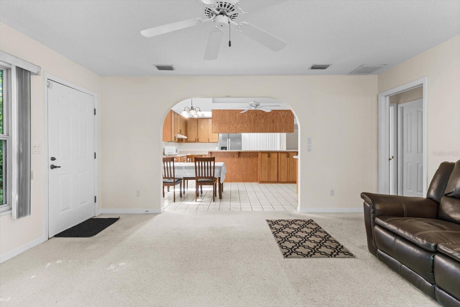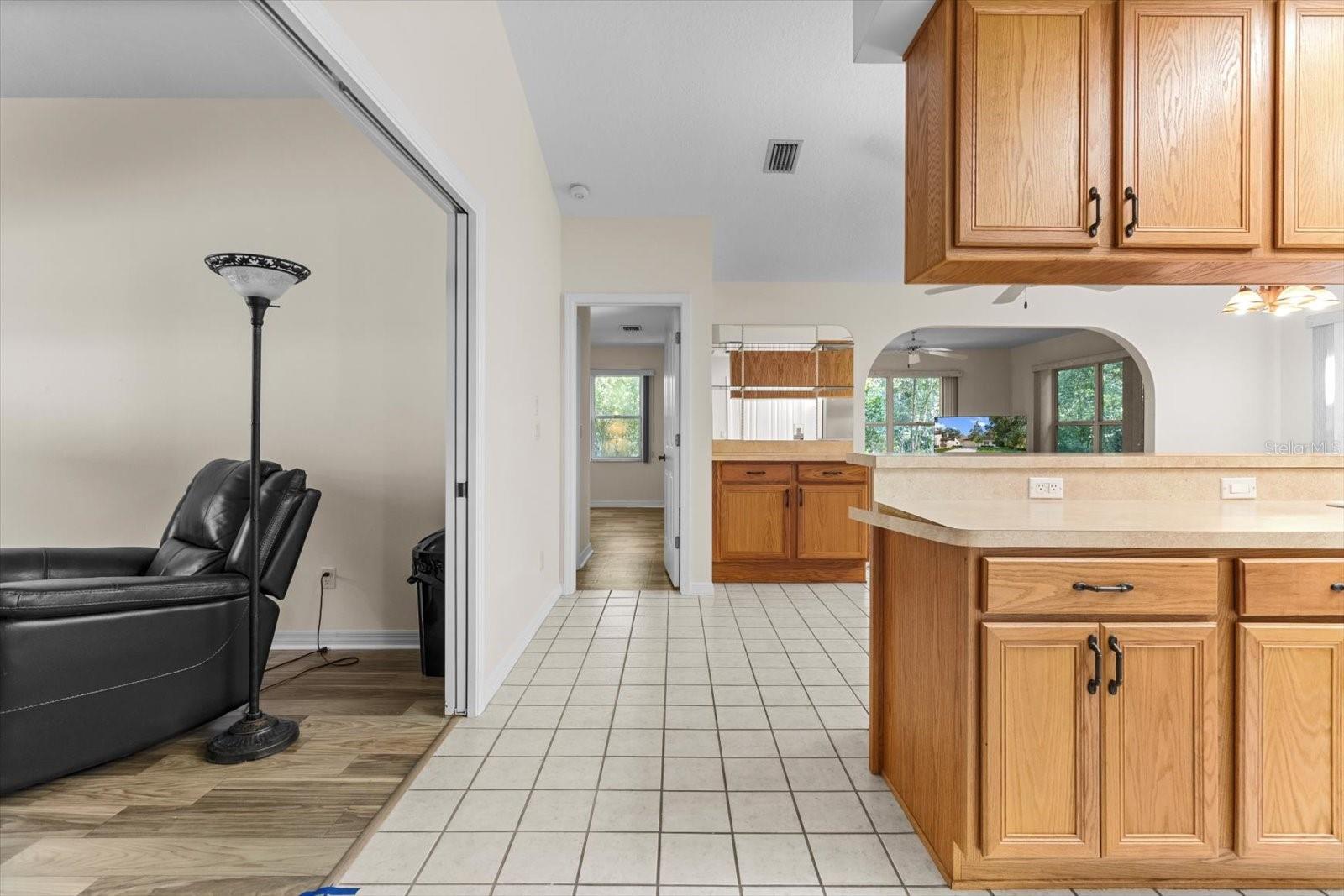 Spacious Villa with Possible 3rd Bedroom! Looking for room to spread out? This roomy 2,063 sq ft villa offers a light and airy split floor plan with plenty of living space and storage. A versatile den with built-in bookshelves, cabinets, and pocket doors could easily serve as a third bedroom or home office. You'll love the flow of this home—from the formal living and dining rooms to the cozy family room and large kitchen featuring a breakfast bar, pantry, dry bar, and plenty of cabinetry. The eat-in kitchen nook is perfect for morning coffee or casual dining. The primary suite is tucked away for privacy, and the second bedroom and bath offer comfortable accommodations for guests. The laundry room is loaded with storage, including two large closets, upper cabinets, and a built-in ironing board. Enjoy convenience of an oversized 2-car garage with a separate storage room, garage door screens, and a floored attic for even more storage. Step out to your sweet patio, a lovely spot for morning coffee or evening relaxation. The Nature Coast boasts world class recreation like diving, fishing, kayaking and much more! If you need a bit more hustle and bustle, this home is an easy drive ti the Suncoast Parkway that puts both Tampa and Orlando at your fingertips! Come take a look and bring your ideas to make this well maintained Villa your landing pad! Close