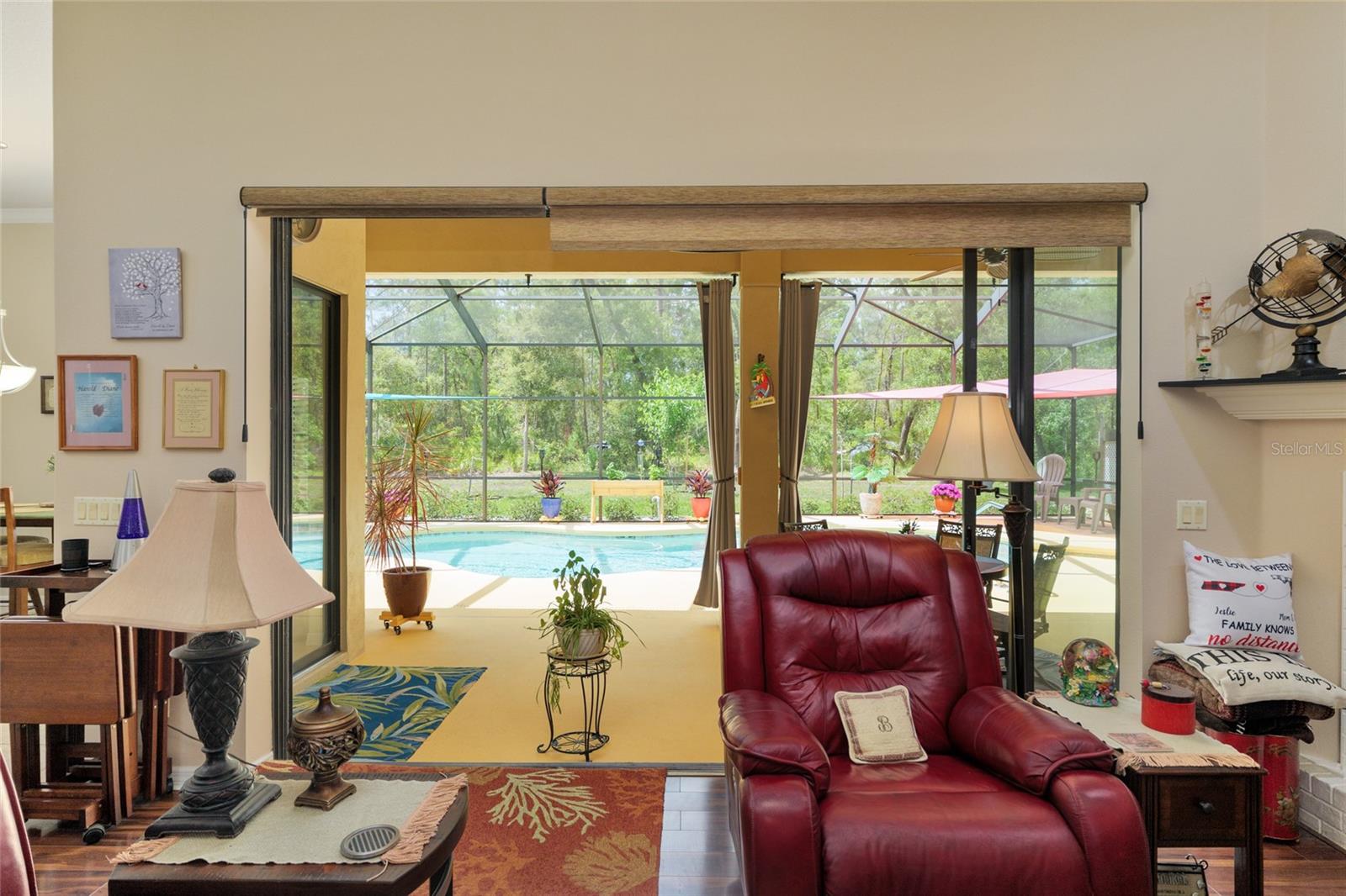 Welcome home to your Better-than-new concrete block pool home which offers exceptional craftsmanship, energy efficiency, and privacy in a highly convenient Nature Coast location. All the upgrades! Featuring a 2021 roof and leased solar panels at $214/month (transferable with approval), the home enjoys an average electric bill of approximately $30 a month, and newly installed AO 50 gallon water heater making it both luxurious and cost-efficient. The thoughtfully designed floor plan includes 3 bedrooms, 2.5 bathrooms, a dedicated office, and a 3-car garage. The third garage bay is currently configured as a workshop and all garage doors have been upgraded to hurricane-rated R-19 doors. Additional features include pull-down attic access, radiant barrier insulation, and enhanced insulation throughout the home, garage, and lanai, along with custom built-in garage storage. Freshly painted inside and out, the home also features a sealed and stained driveway and is perfectly positioned backing up to a greenbelt, offering exceptional privacy and peaceful views. Interior upgrades include a new HVAC A-coil ($5,000), whole-home ionizer, double-pane windows, front-facing window tint, custom plantation shutters, rear 3” faux wood blinds, and custom electric sunshades. The enclosed pool and lanai are ideal for year-round enjoyment, enhanced by a new variable-speed pool pump and heater. The professionally landscaped, eco-friendly yard is designed for minimal maintenance and showcases ProVista St. Augustine sod, palms, decorative rock, pavers, and curbing, delivering outstanding native curb appeal. A welcoming front porch provides the perfect setting to enjoy morning sunrises, while the enclosed pool area offers stunning sunset views. Inside, the home impresses with 12-foot ceilings, rounded corners, and refined custom details throughout. The custom kitchen features newer appliances, a 2018 refrigerator, pull-out drawers, and a walk-in pantry, blending style with functionality. The primary suite serves as a private retreat with dual walk-in closets, a spacious walk-in shower, and a soaking tub. Ideally located near Inverness, Homosassa, Crystal River, and Spring Hill, with shopping just minutes away and only one mile from the intersection of Highway 19 and Highway 98, this home offers both convenience and tranquility. A rare opportunity to own a turnkey, energy-efficient pool home with greenbelt privacy and premium upgrades in one of Florida’s most desirable coastal regions.