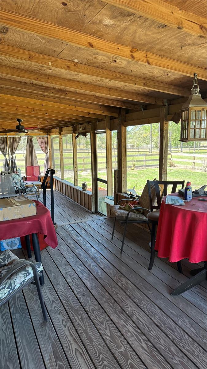 Hello to peace and quiet. Enjoy this 2 Bedroom 2 full bath on 2 acres. Located just 2 minutes from 589 turnpike. the 2 acres are separate lots that are fenced and crossed fenced. Primary bedroom is set with 4' handicap door and walk in shower and full convenient linen closet. Kitchen is open concept to living and dining space and feature oversized customer wood countertop bar top. Owners entry has full washer and dryer and large custom pantry cabinets. Bedroom 2 is oversized do to conversion from 3 bedrooms. Extra space in room Can be used for remote work, play area or reading space. Vaulted ceilings open up to living room for that convenient open concept. Florida Room is a fantastic screened outdoor space with two separate seating areas, where you can enjoy the beautiful morning and evening Florida weather. Let step outside to take in the mature landscaping and fenced yard nice done with corral boards and wire fence. Large outdoor paver space for those grilling nights and extra entertaining space. Garden green house 9 x8, ready to make your own. For the yard equipment step into the stout 16 x12 building with 5' doors and ramp for easy access to shop. separately wired electric box, 3/4" PT plywood floors, built in shelving, 10' high peak ceiling, Master Rid metal siding and roofing. This private property is adjacent to potential vacant investment land. A blank slate to make your own or extend your private oasis. Make your appointment today for your private viewing.