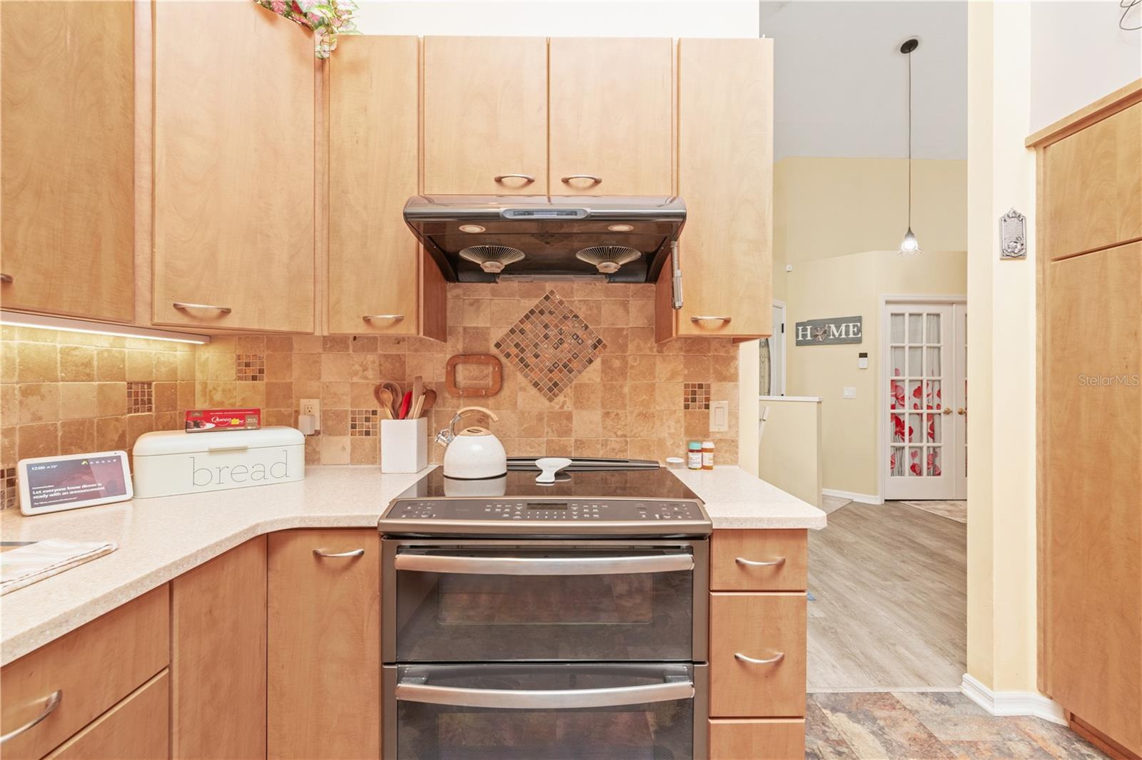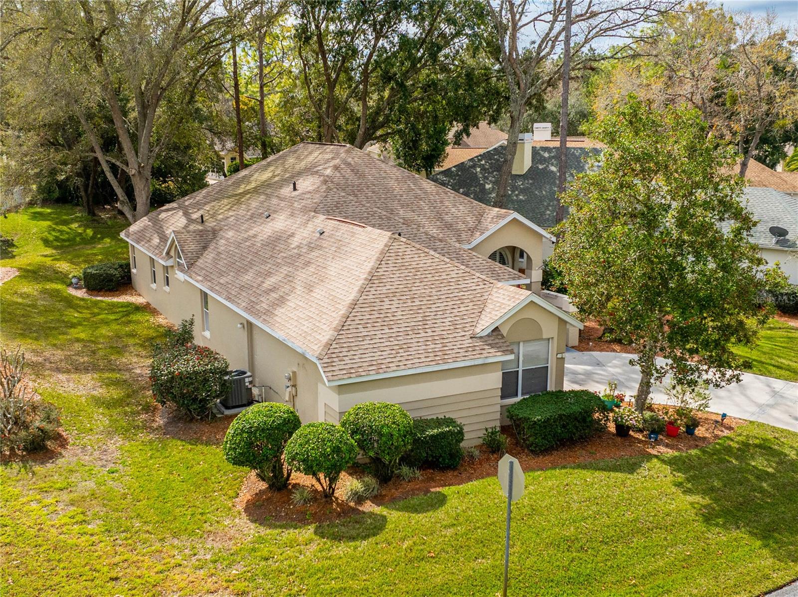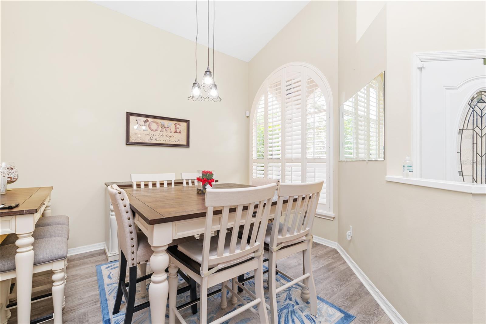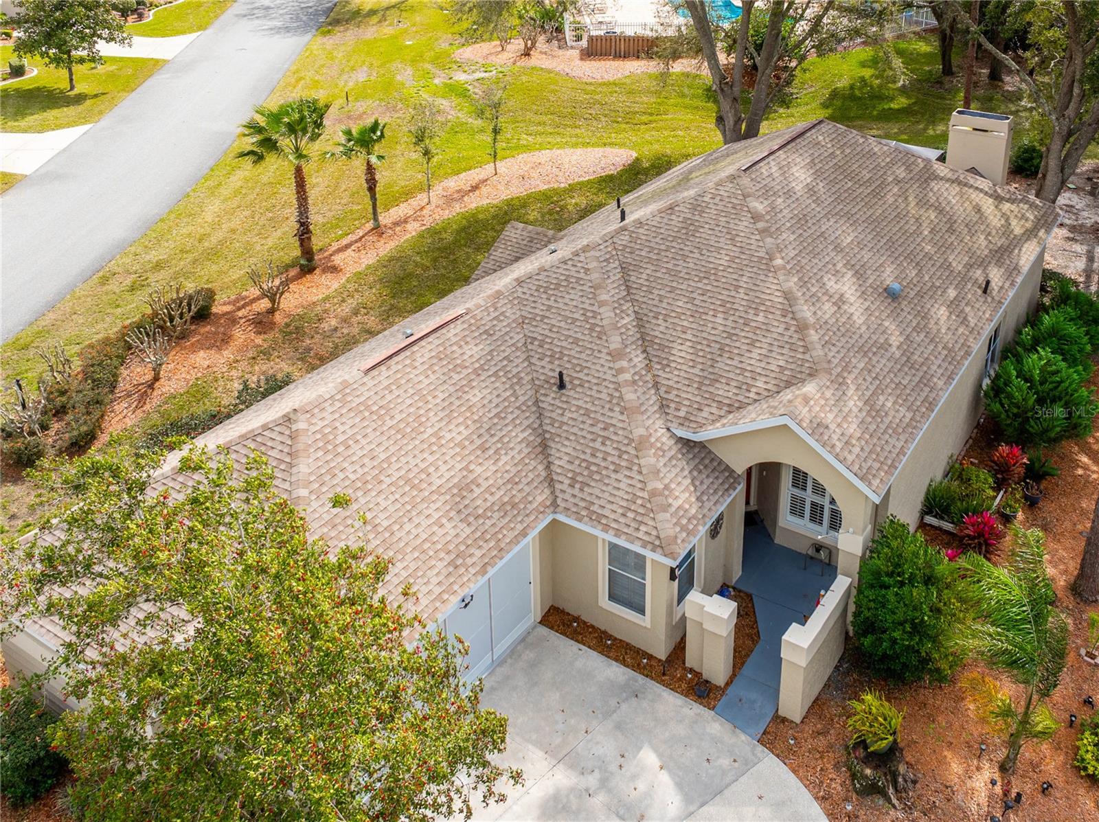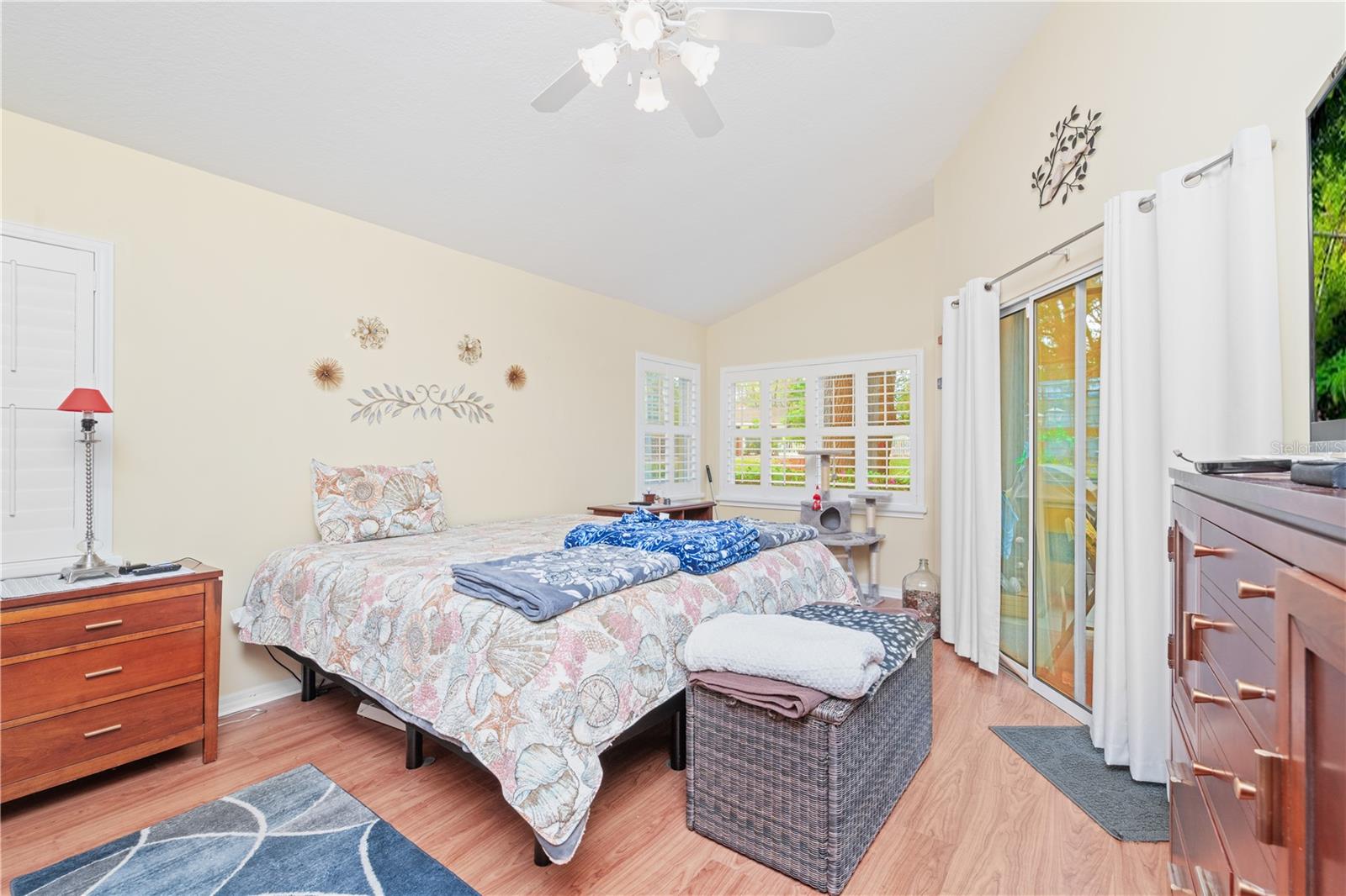 NEW walk in shower, quartz counter tops, plantation shutters and NEW A/C replaced in 02/2024. Welcome to this spacious home boasting 2062 square feet of living space, offering 3 bedrooms and 2 bathrooms. Step inside to discover new luxury vinyl plank flooring throughout. The heart of this home is its expansive living area, adorned with vaulted ceilings and a sliding glass door leading to the fully screened-in oversized lanai. As you enter, to your left is Guest Bedroom 1, featuring French doors that can easily transform it into a den or office space. To the right, the formal dining room awaits just steps away. Continuing through, you'll find Guest Bedroom 2 with a ceiling fan and ample closet space, conveniently located near the guest bathroom, complete with a single sink vanity featuring a top-mount bowl sink and a tub-shower combo. Down the same hallway, discover the indoor laundry room, equipped with a deep sink and wall-mounted cabinets, offering access to the 2-car garage. The kitchen is a highlight, boasting abundant cabinet space, a tiled backsplash, slide-in range, stainless steel appliances, and a center island. Adjacent to the kitchen is a cozy sitting room with a fireplace and sliding doors leading to the lanai. The master bedroom is a retreat of its own, featuring sliding glass doors to the lanai, a large closet, and an ensuite bathroom complete with a jetted tub, dual sink vanity, and a walk-in tiled shower. This home sits proudly on a corner lot, surrounded by beautifully landscaped grounds. Don't miss the opportunity to make this charming residence yours – schedule your showing today and seize this chance to call it home!The HOA fee includes lawn maintenance, irrigation, trash pick up as well as the Spectrum Gold cable TV package (2 HD television connections including one DVR) and WIFI with modem and wireless router.