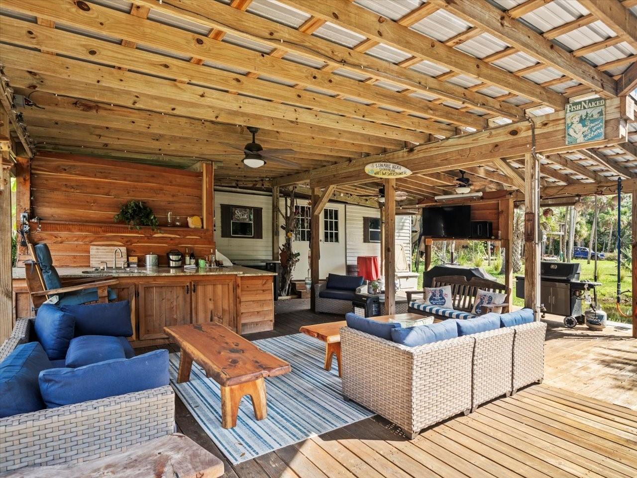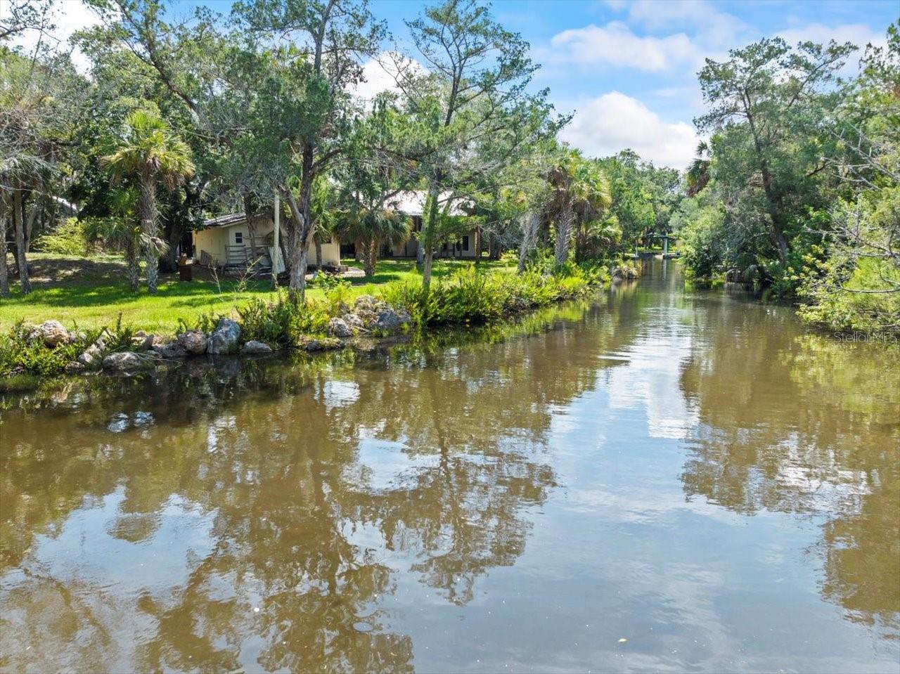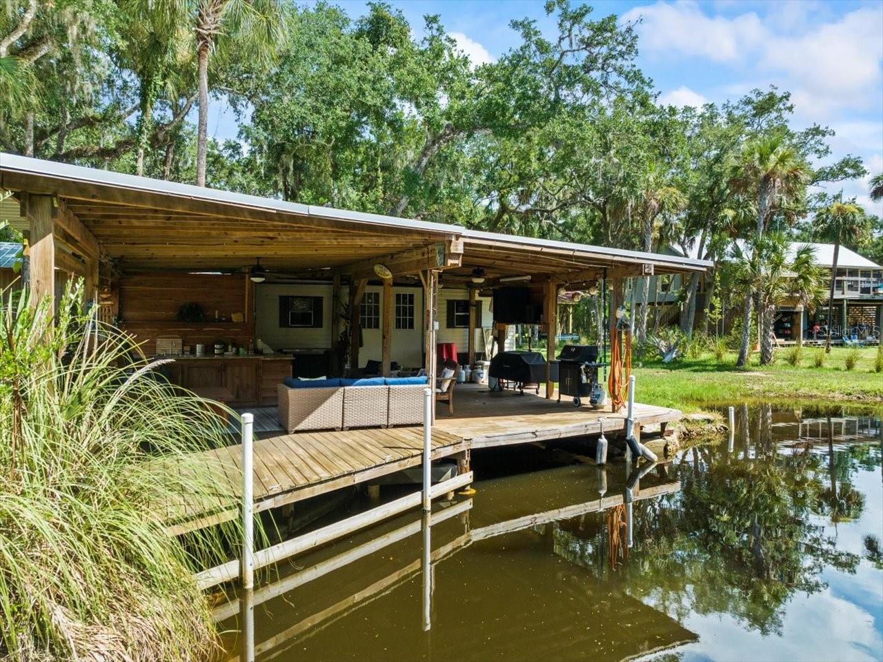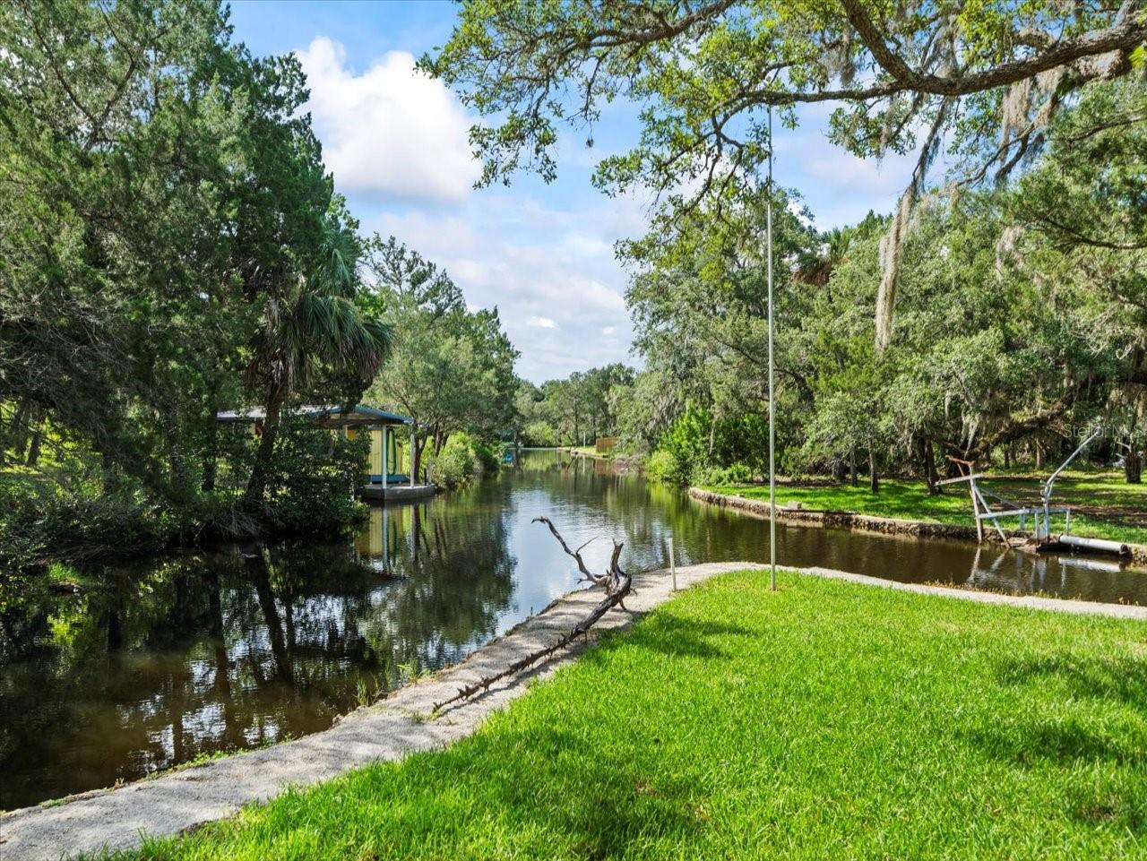 Nestled on a picturesque acre of land along a serene split canal, this house boasts charm and versatility. Featuring expansive wrap-around porches on both floors, the home invites you to relax and take in the stunning water views. Perfect for family living, the house offers ample space and comfort. A cozy she-shed provides a perfect retreat, and the outdoor kitchen/bar area next to the canal is ideal for entertaining. The property also includes a barn/garage for hobbies and projects, and an additional garage with a full bathroom that offers potential for conversion into a separate living unit. This unique property blends comfort, functionality, and the allure of waterfront living.