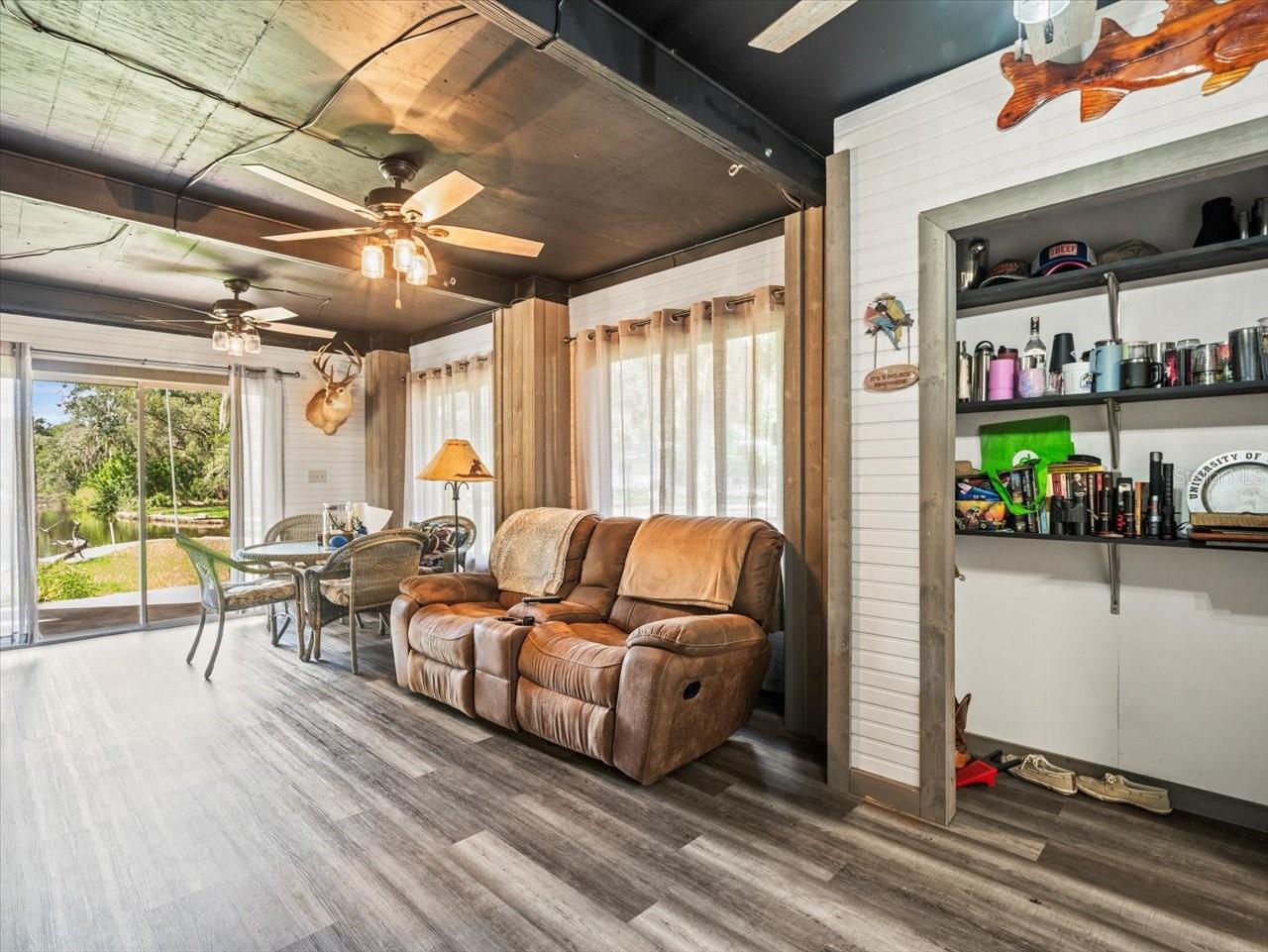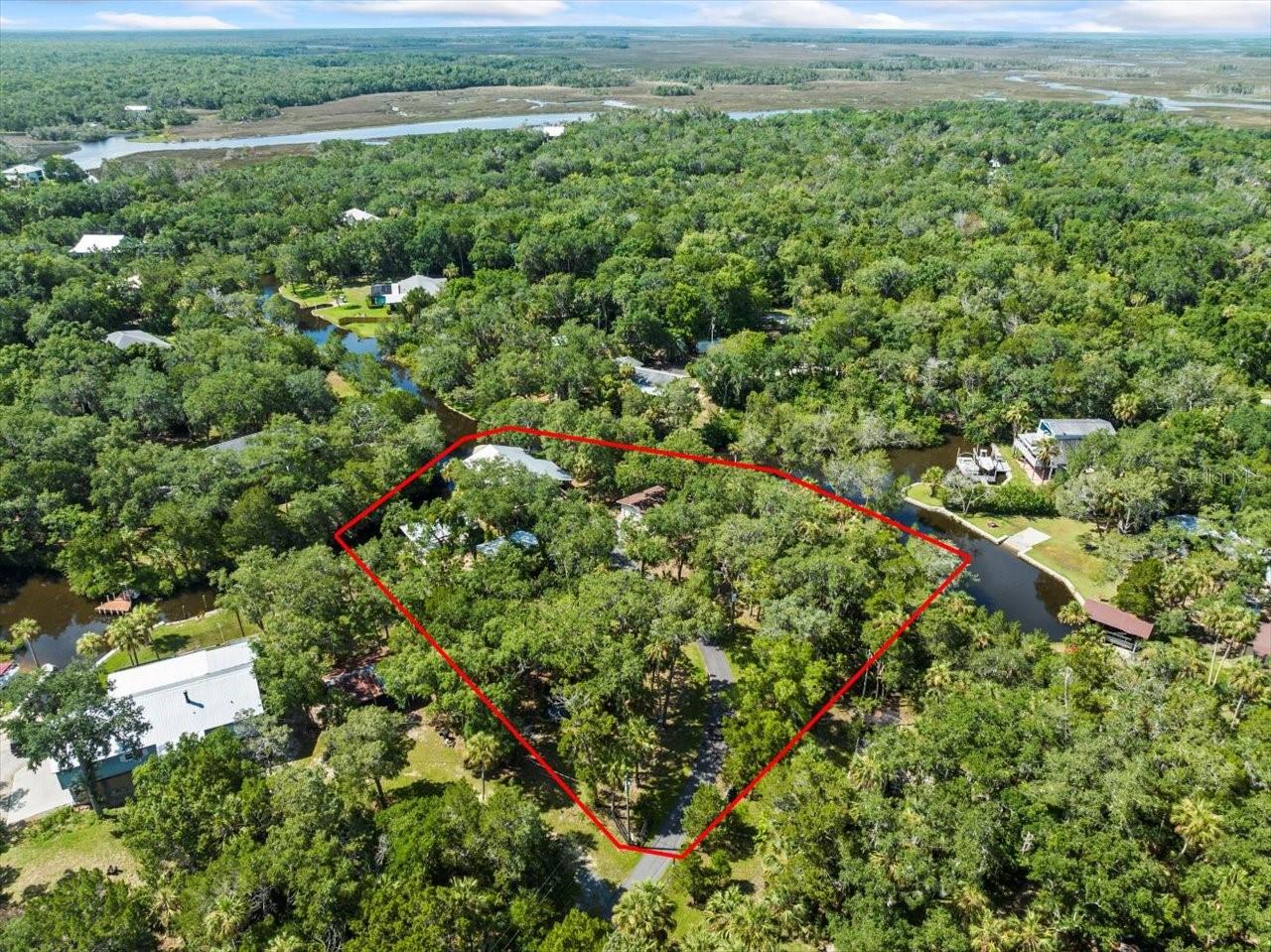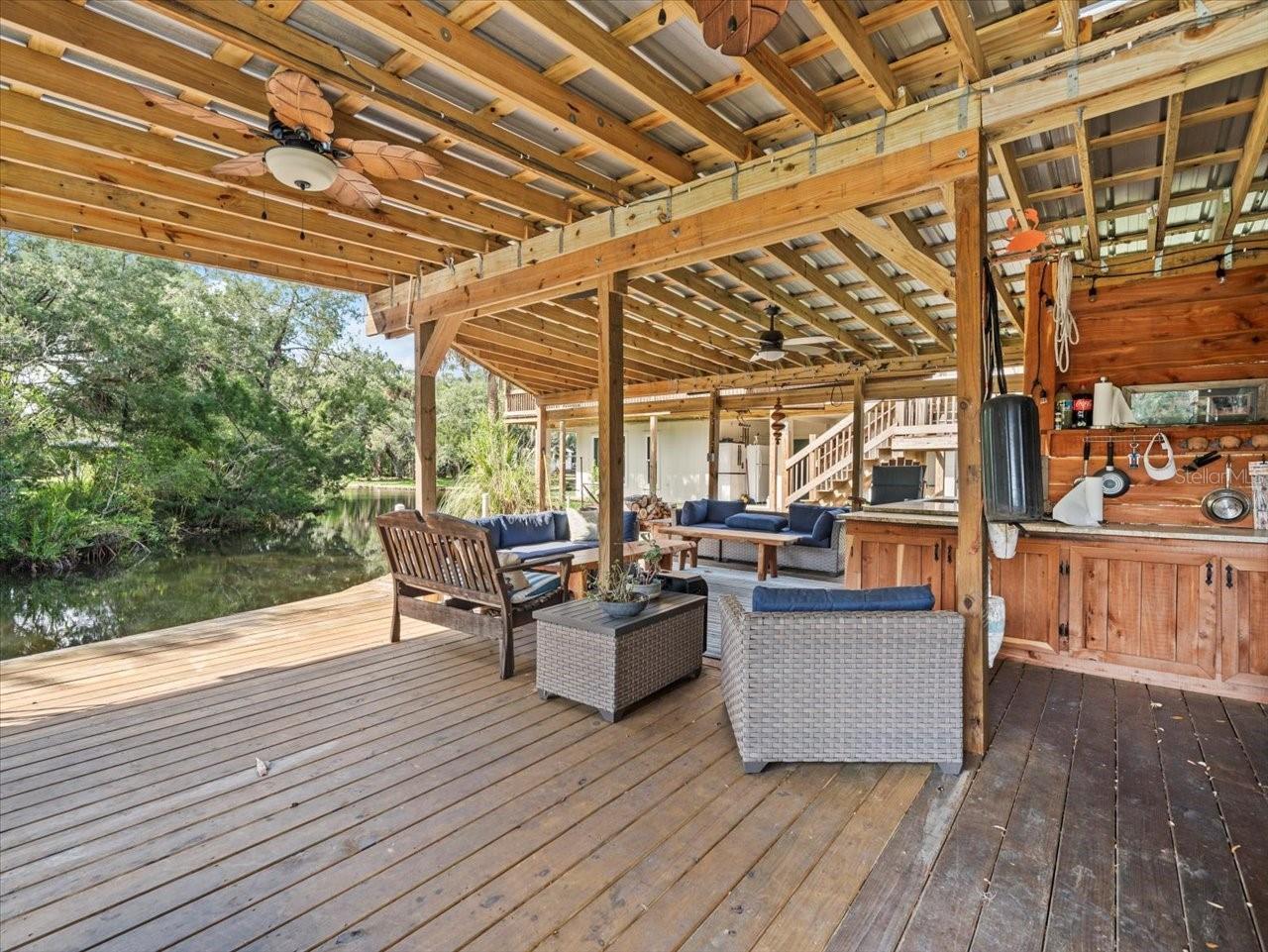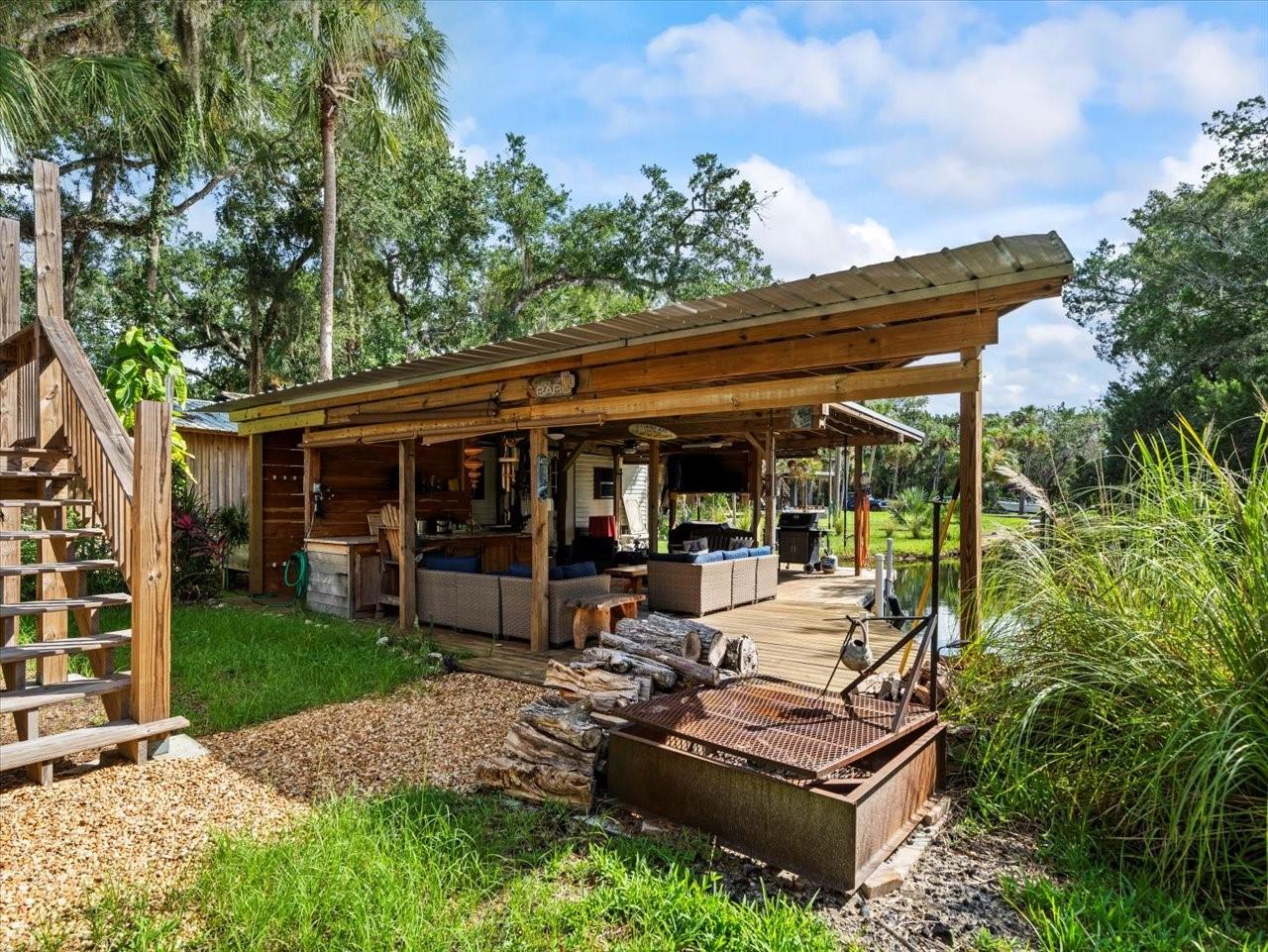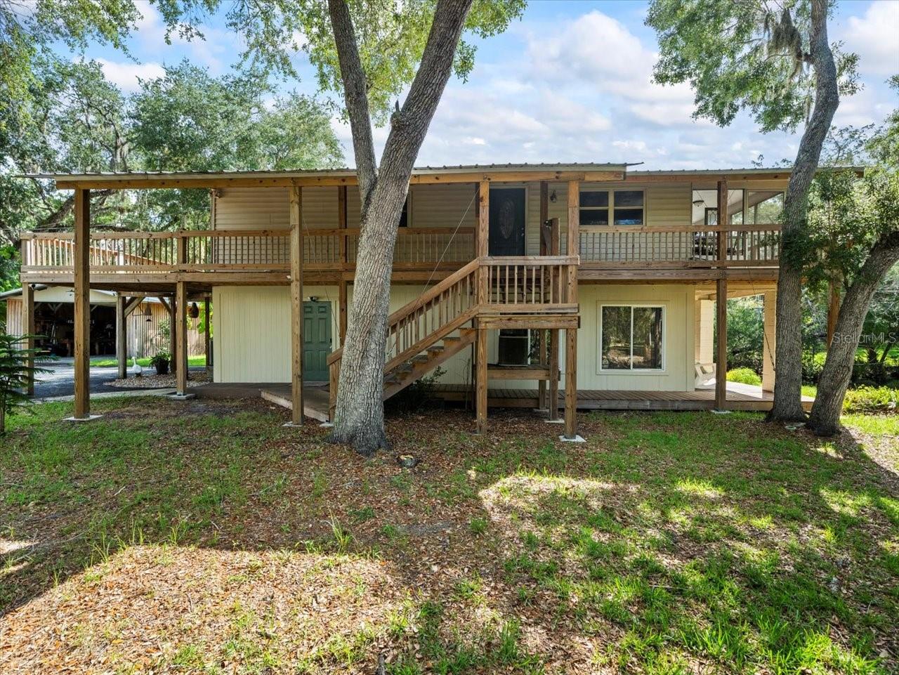 Nestled on a picturesque acre of land along a serene split canal, this house boasts charm and versatility. Featuring expansive wrap-around porches on both floors, the home invites you to relax and take in the stunning water views. Perfect for family living, the house offers ample space and comfort. A cozy she-shed provides a perfect retreat, and the outdoor kitchen/bar area next to the canal is ideal for entertaining. The property also includes a barn/garage for hobbies and projects, and an additional garage with a full bathroom that offers potential for conversion into a separate living unit. This unique property blends comfort, functionality, and the allure of waterfront living.