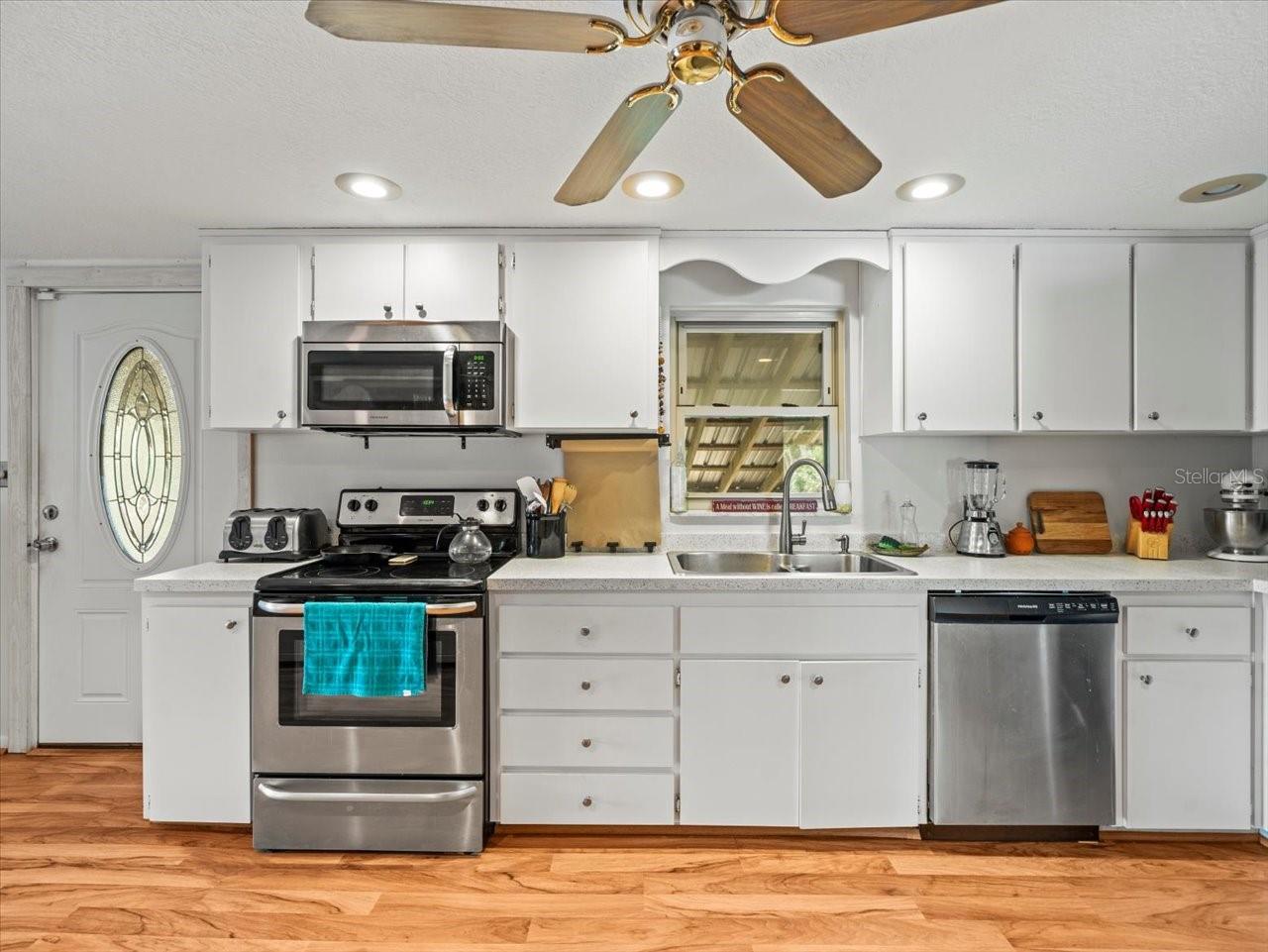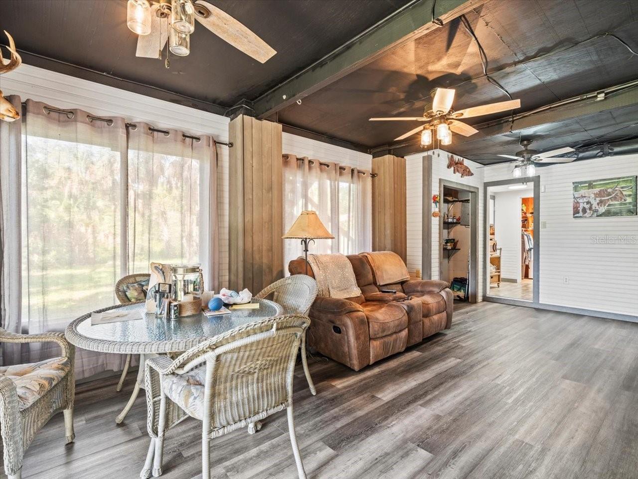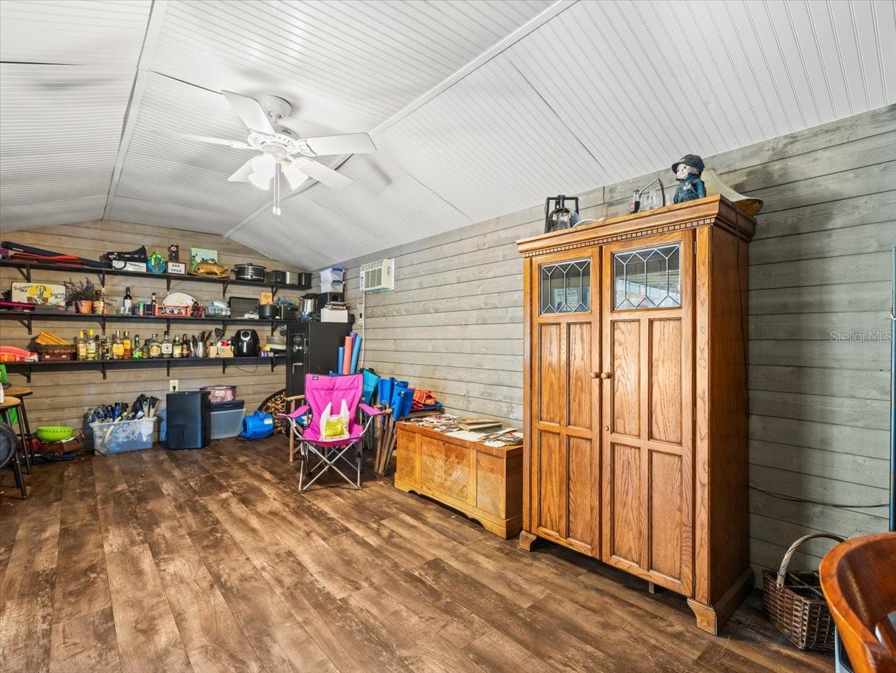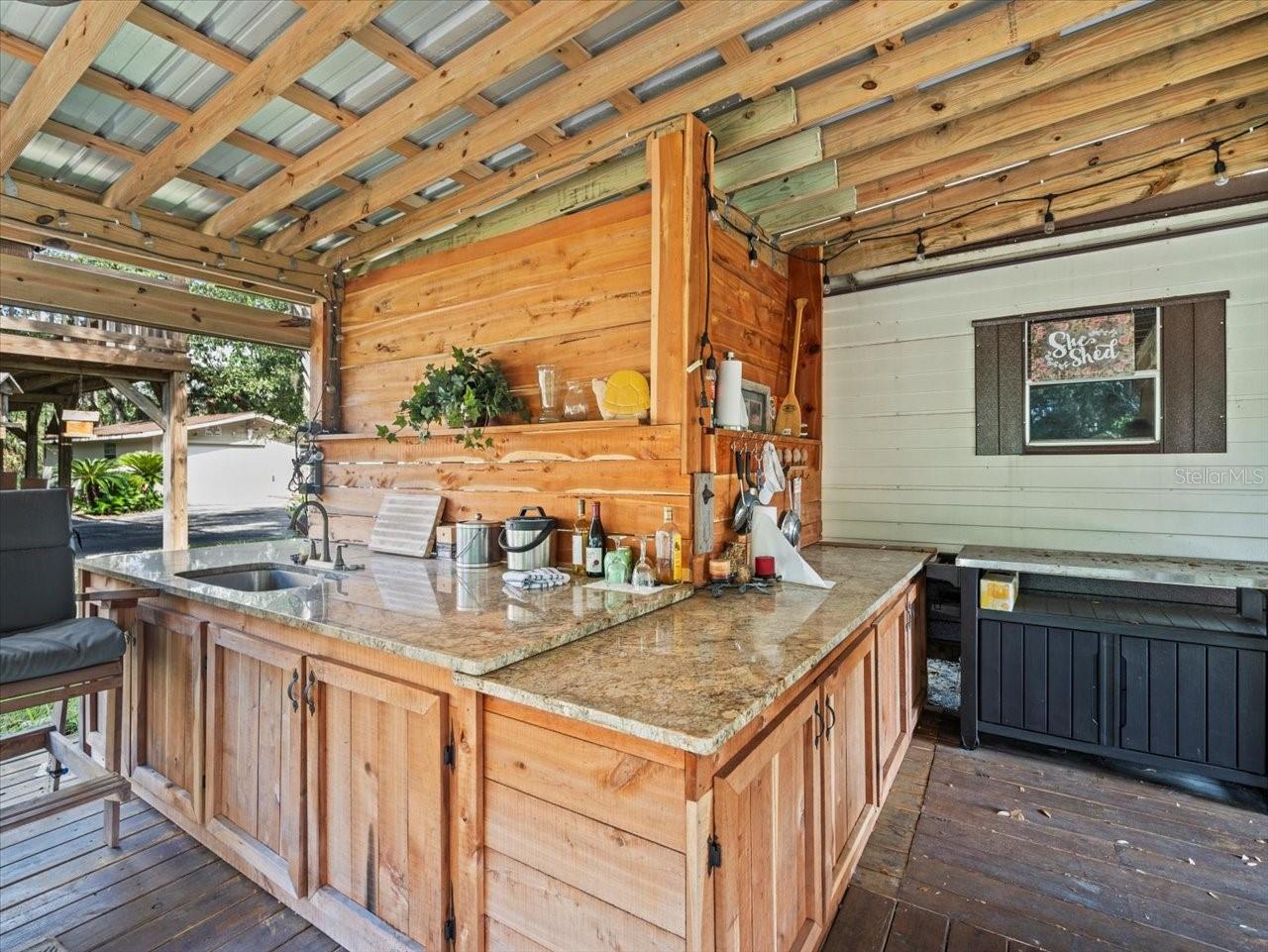 Nestled on a picturesque acre of land along a serene split canal, this house boasts charm and versatility. Featuring expansive wrap-around porches on both floors, the home invites you to relax and take in the stunning water views. Perfect for family living, the house offers ample space and comfort. A cozy she-shed provides a perfect retreat, and the outdoor kitchen/bar area next to the canal is ideal for entertaining. The property also includes a barn/garage for hobbies and projects, and an additional garage with a full bathroom that offers potential for conversion into a separate living unit. This unique property blends comfort, functionality, and the allure of waterfront living.