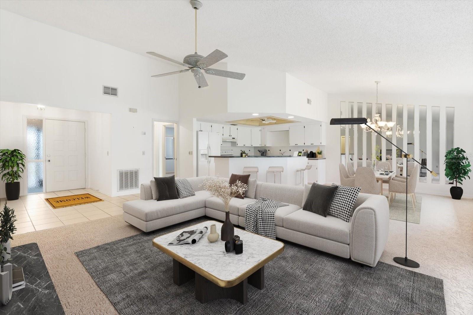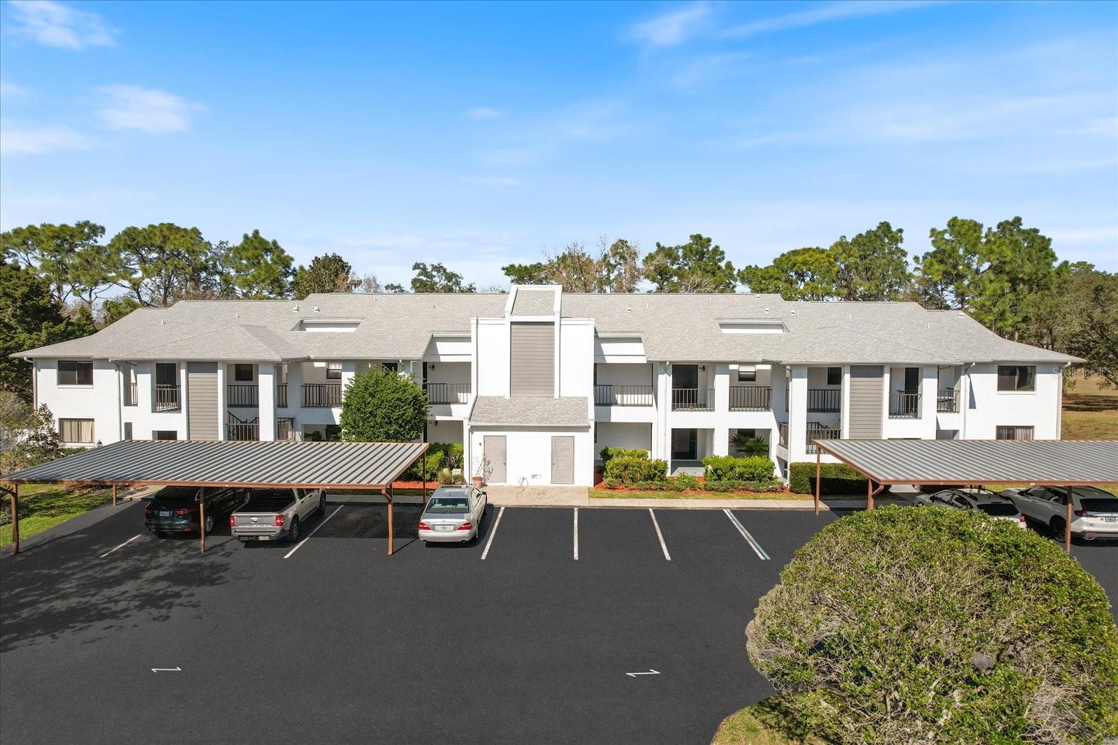 One or more photo(s) has been virtually staged. HERE’S YOUR INSPIRATION TO IGNITE YOUR CREATIVITY! This 2BD/2BA, 2nd floor unit provides the perfect environment to create a truly remarkable space. In the heart of the home, natural light is maximized through a large sliding window and a 3-panel stacking slider, creating an open, airy and inviting atmosphere. The continuity of the visual flow extends from the vaulted ceiling and out to the large 22’x8’ covered, screened balcony. Glimpses of the 5th hole fairway on the Pine Golf Course at Sugarmill Woods Country Club can be seen in the distance. The neutral colors throughout provide a harmonious backdrop for you to define your personality and allows you to experiment with different textures and patterns. The timeless black and white kitchen features a tile backsplash, two tier island with breakfast bar and a drop down tray ceiling. The master bedroom boasts a slider to the balcony, an ample sized 9’x5’ walk-in closet and ensuite w/ dual sinks, makeup desk, tiled shower & water closet. In unit laundry for convenience. A screened front entry with a double door storage closet, an additional storage room down the walkway from the unit, an assigned, covered parking space and plenty of guest parking are a plus! Roof 12/2021 and HVAC 2020. Conveniently located! Only 10 minutes to the Suncoast Parkway and about 15 minutes to the hottest NEW Golf Destination, the NEWLY OPENED CABOT CITRUS FARMS GOLF COMPLEX. Hit the links and enjoy the world-class amenities including two revitalized 18-hole courses, one 9-hole course, an 11-hole par-3 course, a new clubhouse and practice facilities with a putting course and driving range. A FREE 1-year HOME WARRANTY for PEACE OF MIND is OFFERED as a GIFT to the FUTURE BUYER! One or more photo(s) has been virtually staged.