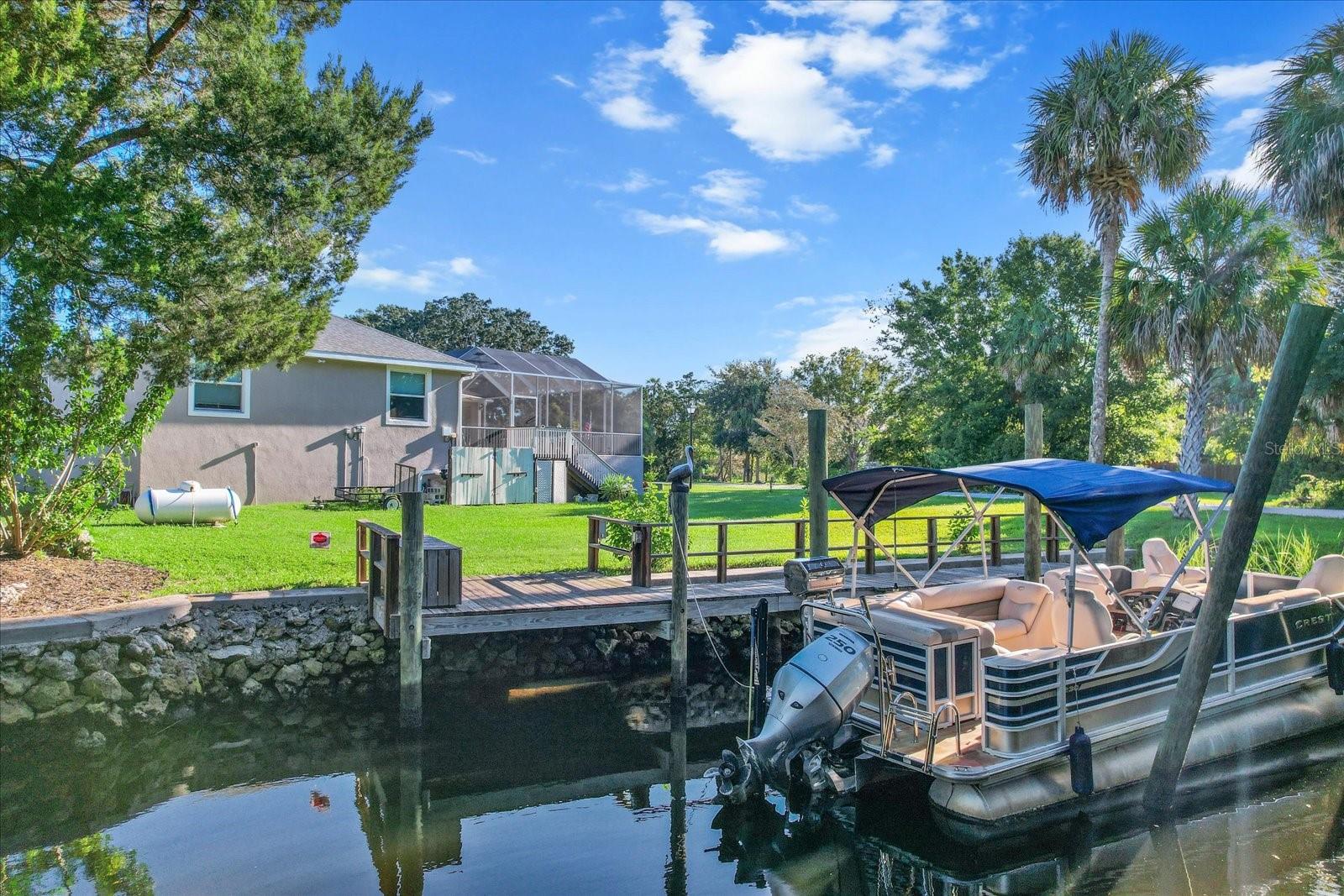 A RARE GEM! Built in 2018, this NEVER FLOODED waterfront pool home in Riverhaven Village sits high & dry because of its impressive 10+ ft stem wall construction! (This significantly reduces flood insurance costs.) A short boat ride down the canal leads to the gorgeous Homosassa River, and the Gulf. Four bedrooms, 3 baths - includes a primary suite and an in-law suite, plus an office. The primary suite provides privacy, with dual closets and an en-suite bathroom featuring a double vanity and a luxurious soaking tub. The versatile guest/in-law suite includes its own private bathroom and additional sitting area. The modern kitchen boasts white cabinets, modern appliances, and a walk-in pantry. Tall sliding glass doors in several rooms throughout the house open to the beautiful screened lanai with a propane-heated saltwater pool and spillover spa. The home also features a 2-car garage with decked attic space for extra storage. As part of Riverhaven Village, new owners will have access to a voluntary club membership offering amenities such as a pool, tennis courts, pickleball courts, library, clubhouse, children's playground, and dog park. Zoned for Homosassa Elementary, Crystal River Middle, and Crystal River High schools, this home is located in the heart of the Nature Coast, offering some of the best fishing, boating, kayaking, biking, and trails. Just over 2 miles from the Suncoast/Veterans toll road, providing easy access to the Tampa airport in less than an hour. Don't miss this opportunity to own a piece of paradise!