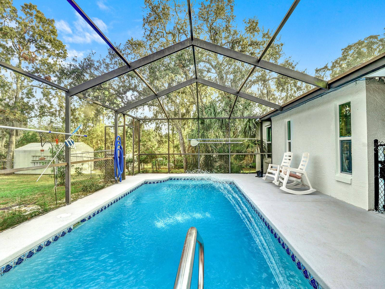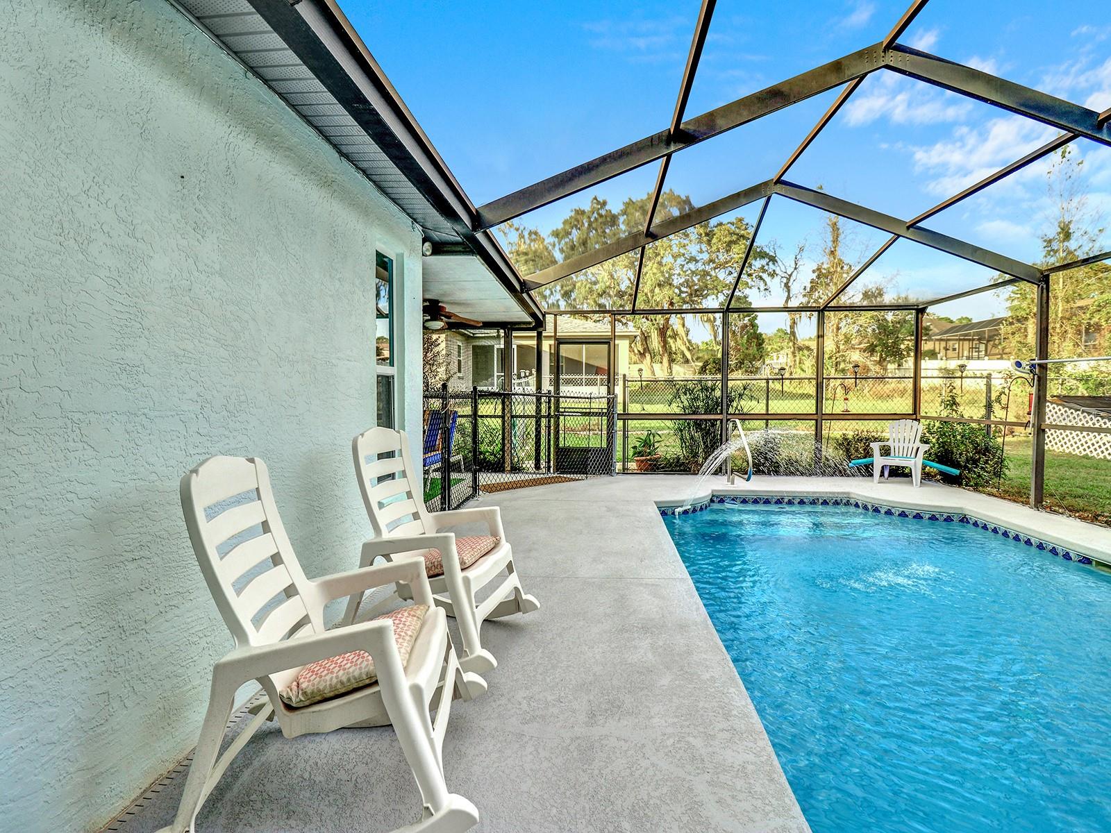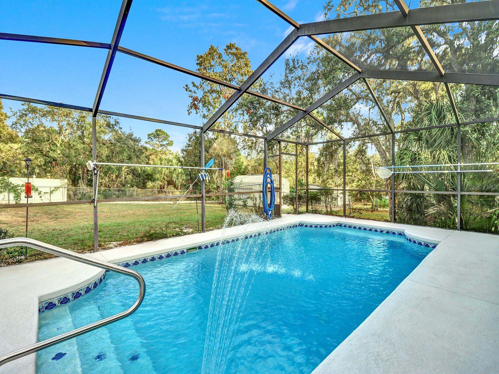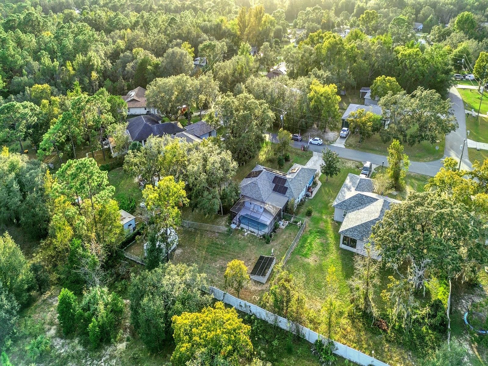 This charming three-bedroom, two-bath home offers a fantastic opportunity for homeownership with a beautiful screened-in pool area on an oversized 0.39-acre lot, providing ample privacy with NO HOA fees. The spacious backyard includes a large shed for added storage convenience. Enjoy outdoor living on the spacious lanai, perfect for entertaining and relaxation, and take advantage of nearby access to the Suncoast Parkway for convenient travel. Key upgrades include a new roof installed in 2024 and an AC unit from 2019, making this home both appealing and functional. Solar panels totally free to buyer, they'll not only cover all their electrical needs but also benefit from reduced energy costs in the long run, potential tax incentives, and a smaller carbon footprint, making it an attractive investment for sustainable living. Do not miss this opportunity! Call or text for a private showing.
