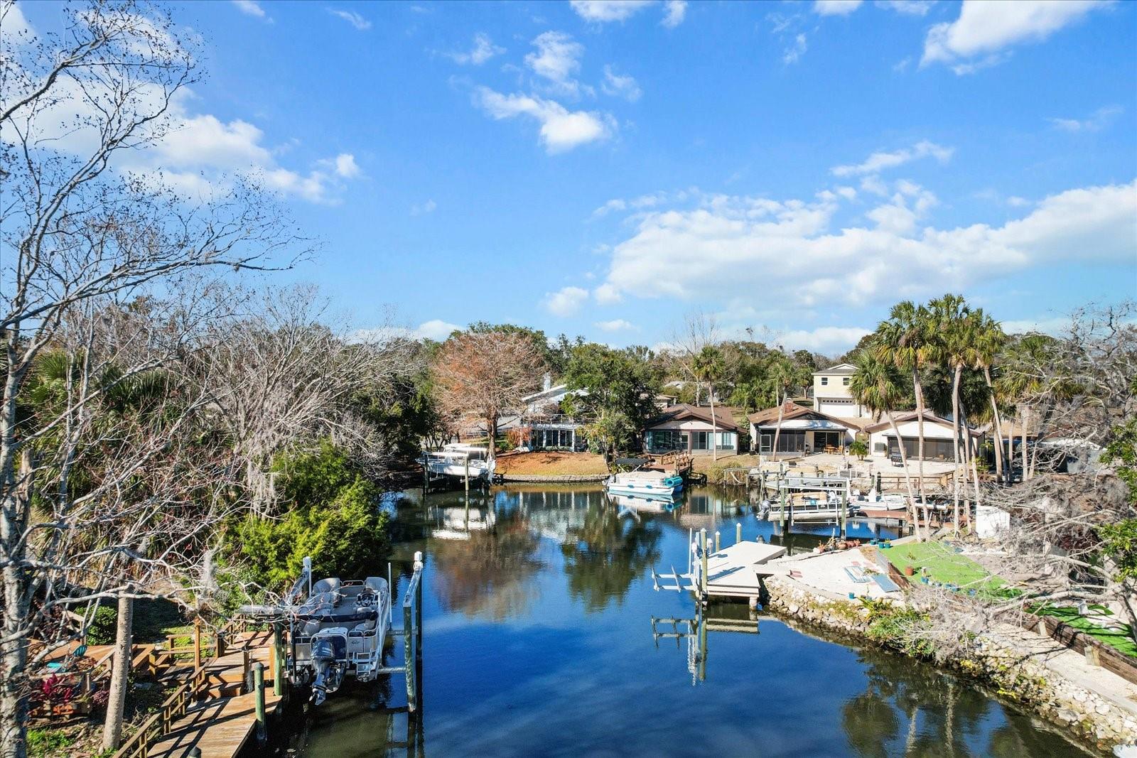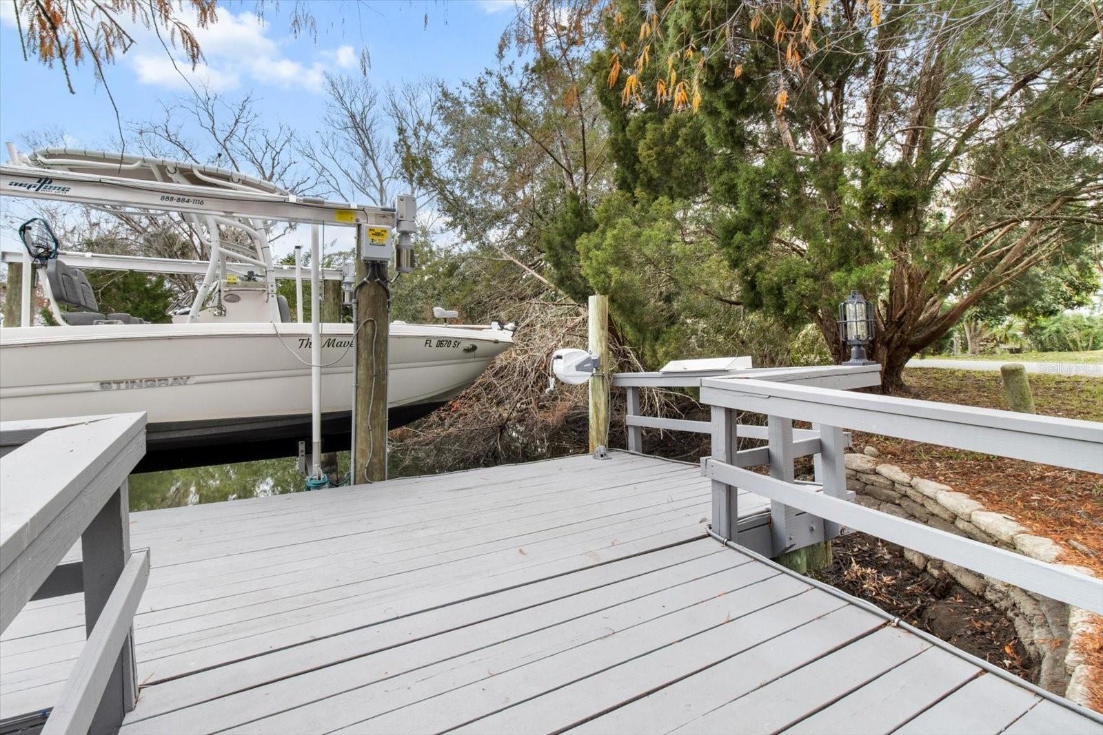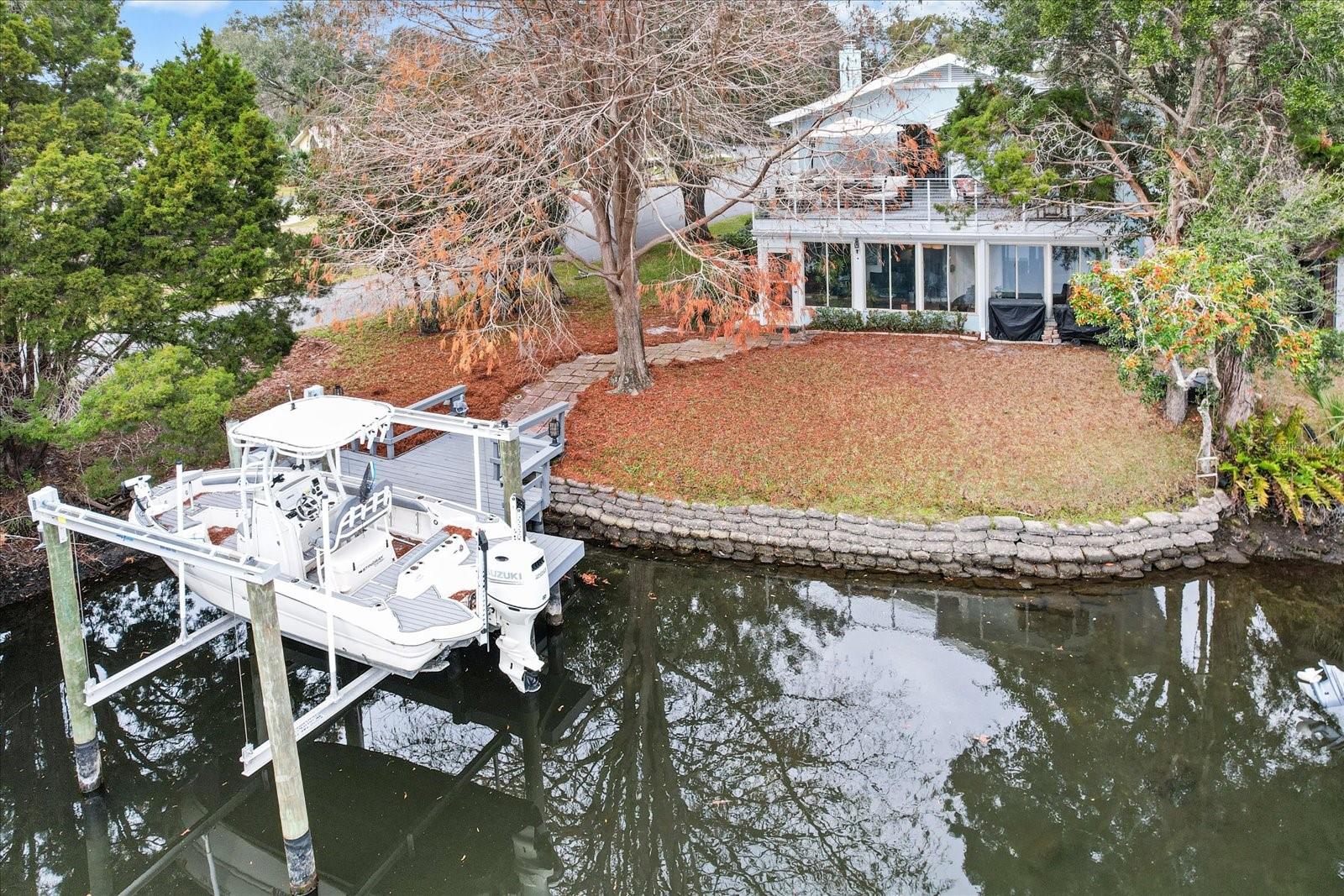 Scallop season is almost here - no waiting in line at the boat ramp, you’ll be cruising out from your own dock and boat lift, ready to scoop up the day’s fresh catch! Enjoy the ultimate in WATERFRONT living in this charming 2-story home in Riverhaven Village, perfectly positioned at the end of the CANAL on the Homosassa River. New ROOF, New smart Hot Water Heater, New Cabinets, New drywall and insulation, Tile floors resealed, and all New LG smart appliances including an induction stove. Outside security cameras (1 solar powered) and the ring bell security keypad lock on the front door. Discover the ultimate blend of luxury and tranquility with: This elegantly designed home boasts 2 bedrooms, 2.5 baths, and a 2-car GARAGE, offering plenty of space for comfortable and stylish living. The timeless elegance of terracotta tile flooring throughout the 1st floor adds warmth and character. The Primary bedroom is located on the main floor with a shower, while the 2nd bedroom is on the 2nd floor with an en suite featuring a tub-shower combo. Both full bathrooms have DUAL SINKS. Half bathroom is located on main floor. A 7,000lb 4 post BOAT LIFT off existing DOCK and new 4'x4' walkway extension (installed 2023) with electric (50 amp Marine/RV hookup), running water, w/ cleaning station and lighting, nestled in its own spacious corner at the END OF THE CANAL, offers effortless access for your boat. Approx 800 ft to the Homosassa River and no bridges to navigate. Vaulted ceilings create an open and airy ambiance as you enter through inviting double doors into the expansive living room, which features a cozy wood-burning fireplace. This space seamlessly flows into a captivating loft living area that overlooks the living and dining rooms, complemented by a kitchen with a pass-through window, and breakfast bar. Enjoy the stunning canal views in the window enclosed LANAI or from the generously sized 2nd floor BALCONY with NEW stainless-steel railings and NEW composite decking.