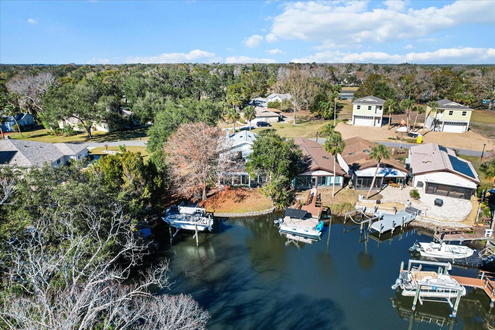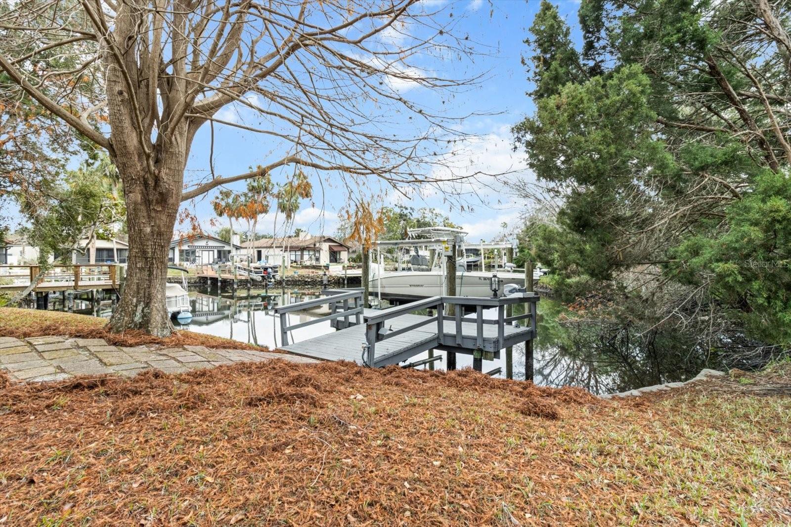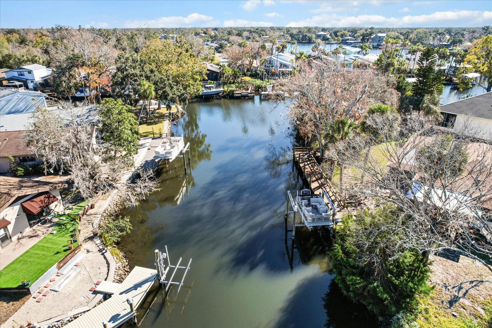 Scallop season is almost here - no waiting in line at the boat ramp, you’ll be cruising out from your own dock and boat lift, ready to scoop up the day’s fresh catch! Enjoy the ultimate in WATERFRONT living in this charming 2-story home in Riverhaven Village, perfectly positioned at the end of the CANAL on the Homosassa River. New ROOF, New smart Hot Water Heater, New Cabinets, New drywall and insulation, Tile floors resealed, and all New LG smart appliances including an induction stove. Outside security cameras (1 solar powered) and the ring bell security keypad lock on the front door. Discover the ultimate blend of luxury and tranquility with: This elegantly designed home boasts 2 bedrooms, 2.5 baths, and a 2-car GARAGE, offering plenty of space for comfortable and stylish living. The timeless elegance of terracotta tile flooring throughout the 1st floor adds warmth and character. The Primary bedroom is located on the main floor with a shower, while the 2nd bedroom is on the 2nd floor with an en suite featuring a tub-shower combo. Both full bathrooms have DUAL SINKS. Half bathroom is located on main floor. A 7,000lb 4 post BOAT LIFT off existing DOCK and new 4'x4' walkway extension (installed 2023) with electric (50 amp Marine/RV hookup), running water, w/ cleaning station and lighting, nestled in its own spacious corner at the END OF THE CANAL, offers effortless access for your boat. Approx 800 ft to the Homosassa River and no bridges to navigate. Vaulted ceilings create an open and airy ambiance as you enter through inviting double doors into the expansive living room, which features a cozy wood-burning fireplace. This space seamlessly flows into a captivating loft living area that overlooks the living and dining rooms, complemented by a kitchen with a pass-through window, and breakfast bar. Enjoy the stunning canal views in the window enclosed LANAI or from the generously sized 2nd floor BALCONY with NEW stainless-steel railings and NEW composite decking.