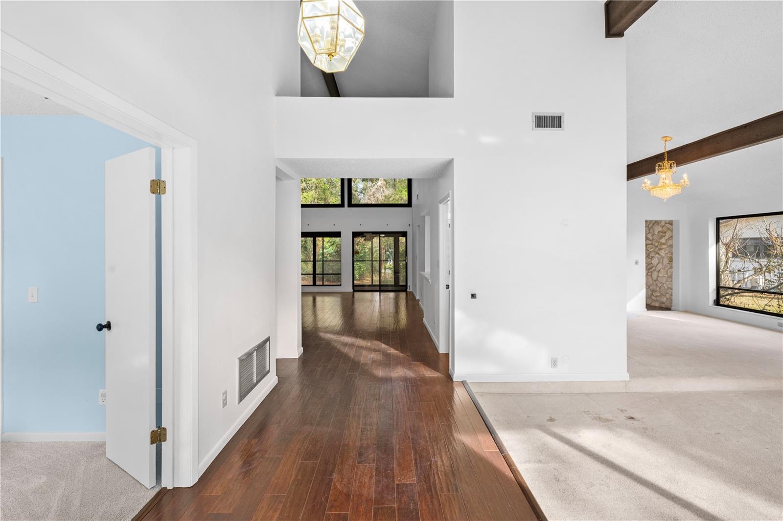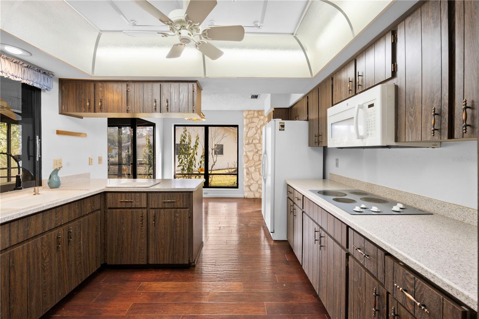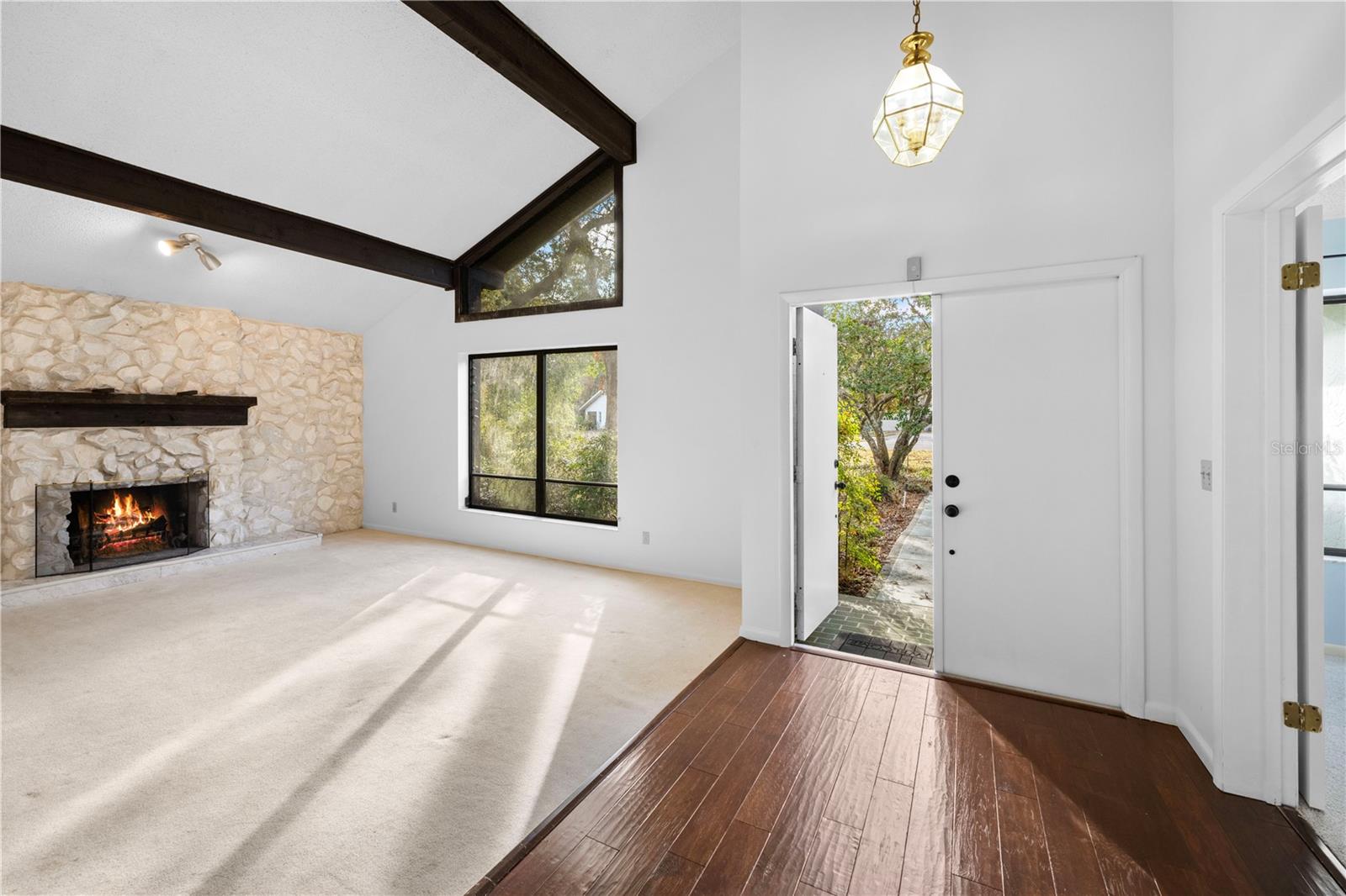 Tucked away on a peaceful cul-de-sac in the heart of Sugarmill Woods, this 3-bedroom, 2.5-bathroom retreat invites you to reconnect with nature. Surrounded by lush trees and thoughtfully designed landscaping, this home feels like a sanctuary. The tall, wood-beamed ceilings in the living area create a warm and inviting atmosphere, while expansive windows flood the space with sunlight and frame serene outdoor views. A cozy wood-burning fireplace adds to the charm, perfect for relaxing evenings at home. Between the living and dining areas, you’ll find a wet bar—ideal for entertaining. The kitchen blends function and style with its built-in double ovens, cooktop, microwave, and dishwasher, plus a casual dining nook for quiet mornings. A pass-through window opens to the large vinyl-enclosed patio, making it easy to enjoy meals while gazing out at your private, natural surroundings. The primary bedroom is a true escape, featuring sliding doors that lead to a peaceful pavered garden area where you can sip coffee or stargaze in complete tranquility. The en-suite bathroom feels like a spa, with dual sinks, a walk-in shower, and a large window that brings the beauty of the outdoors inside. The third bedroom offers versatility, with its dual entries making it perfect for an office or guest space. With updates like a new HVAC system (2021) and roof (2022), this home is ready for you to settle in and create lasting memories. From the natural wood accents to the connection to the outdoors, every detail of this home feels raw, warm, and grounded. Don’t miss your chance to make it yours!