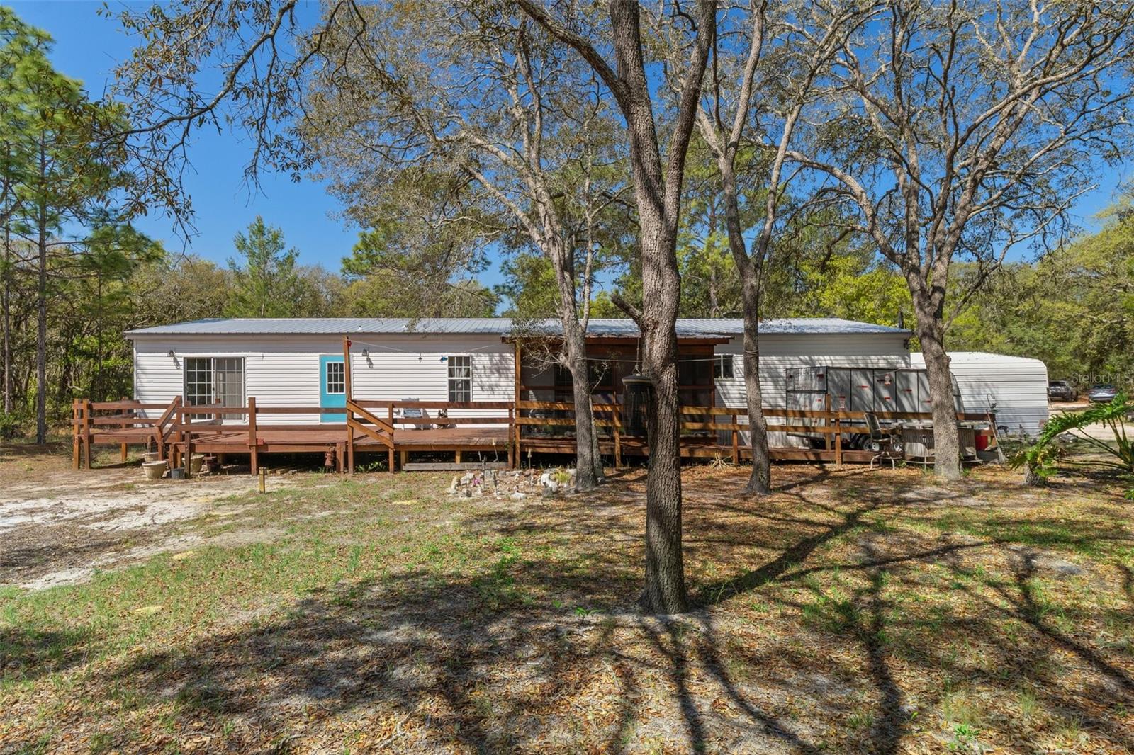 Price greatly improved Come take a tour today! Enjoy your escape to the serenity of true Florida country living on this secluded 4.97-acre agricultural haven—just minutes from Hwy 589 for easy access to everything Homosassa, Lecanto, Crystal River and beyond have to offer. This spacious 2003-built, 4-bedroom manufactured home is nestled at the end of a quiet country road, offering privacy, open skies, and the freedom to live off-grid if you choose. With a metal roof, spacious screened porch, expansive wood deck, and a 2-car metal carport, the exterior is just the beginning. Inside, you’ll find a bright, open layout with a cozy wood-burning fireplace, generous kitchen with tons of cabinets and counter space, walk-in pantry-perfect for food prepping, canning, etc. At the end of the home, is a huge 30x14 ft family room which could add more bedrooms if needed. The split-plan design includes a spacious primary suite with garden tub, separate shower, and abundant storage. New Well tank and electrical installed 9-2025. Animal lovers will adore the space and land—bring your horses, goats, chickens, and more. This is the Florida lifestyle redefined: private, peaceful, and full of possibility. Spectrum cable is in place.
