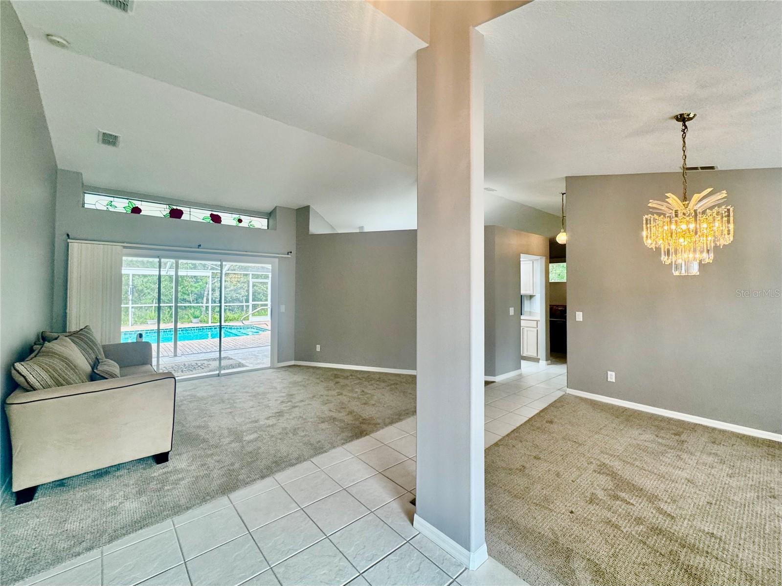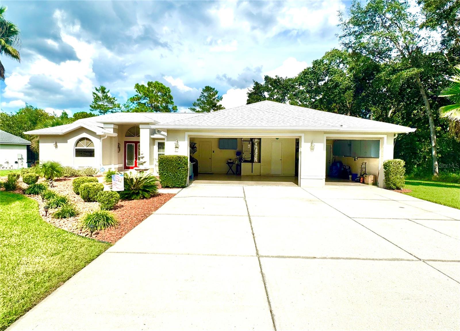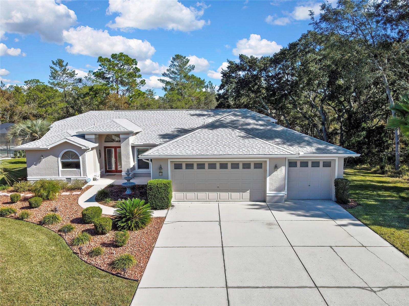 Immaculate 3BR/2.5BA Pool Home in Sugar Mill Woods Oak Village This meticulously maintained home offers a thoughtful SPLIT FLOOR PLAN with a spacious master suite featuring a jetted tub, two additional bedrooms, and BOTH formal and family living/dining areas. Elegant TRANSOM windows throughout the home bring in natural light. Both the master and guest bedrooms have direct access to the pool. Notable features include stunning etched glass in the master bath and a beautifully designed stained-glass window in the formal living room. The 3rd bedroom, with its own half-bathroom and direct access to the garage, offers potential as a PRIVATE ENSUITE or separate entry space. The kitchen is a chef's dream with Corian countertops, ample cabinetry, UPDATED appliances with TRIPLE load dishwasher, a DOUBLE oven stove, a pantry, and a cozy breakfast nook. Tile floors throughout the home and TILE BASEBOARDS detailing in the bathrooms, along with energy-efficient LED lighting, add to the home's charm and practicality. Enjoy year-round outdoor living with a screened-in pool and covered lanai, overlooking a PRIVATE GREENBELT—perfect for relaxing or entertaining. The pool area is surrounded by a SPACIOUS brick deck, ample seating, an outdoor shower, and a fenced in utility area for pool equipment. RECENT UPGRADES include a NEW ENERGY-EFFICIENT POOL HEAT PUMP capable of both heating and cooling the pool—only $35 monthly average added to your electrical bill—along with an UPDATED washer and dryer and NEWER carpeting (2 yrs) in select areas (approximately two years old). The home also features a COMMERCIAL-GRADE whole-house surveillance system, additional attic storage, and a dedicated pool storage container. Major components include a 2015 roof and a 2011 HVAC system. The 3-CAR GARAGE features DIRECT ACCESS to a bathroom, a garage sink, lightening suppressors, dual openers, an outside code box, a workshop area, and a rear door leading to a small side patio. Located in a quiet neighborhood with LOW HOA fees, UNDERGROUND utilities, and NO FLOOD INSURANCE required (OUTSIDE OF THE FLOOD ZONE), this home is perfectly positioned for convenience. Residents enjoy ADDITIONAL AMENITIES including access to the Sugar Mill Golf Course, tennis, pickleball, racquetball, basketball, a fitness center, and community pool. With close proximity to hospitals, shopping, fresh springs, rivers, Gulf fishing, wildlife parks, and the Withlacoochee Bike Trail, this home offers an ideal lifestyle. Live your retirement dream in this beautiful, move-in-ready home!