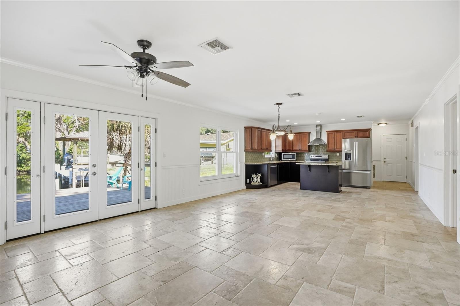 One or more photo(s) has been virtually staged. Welcome to your beautifully renovated WATERFRONT RETREAT in the heart of Homosassa! This stunning 2-bedroom, 2-bath home sits on a large CORNER LOT and has been thoughtfully upgraded from top to bottom, offering both style and functionality for Florida living. Step inside to find tile flooring throughout, wood cabinetry, GRANITE COUNTERTOPS, and stainless-steel appliances, including a range with hood. The kitchen is a true showstopper with a center island and breakfast bar, glass tile backsplash, recessed lighting, and crown molding, perfect for entertaining or casual everyday living. NEW WINDOWS throughout and NEW FRENCH DOORS leading to the back deck allowing tons of natural light. Both bathrooms are beautifully finished, featuring fully tiled showers from floor to ceiling, a built-in bench seat, and designer details. The bedrooms showcase elegant wainscoting, adding charm and character. A dedicated laundry room which includes a scrub sink, in the deep one car garage. Outside, enjoy the ultimate coastal lifestyle with a spacious deck for entertaining, boat tie-up, and a fish-cleaning station. The property also includes a large WORKSHOP shed with CARPORT, an aluminum roof, including a retractable rear awning for added sunshade. Adding a unique artistic touch, the home features beautifully HAND-PAINTED MURALS for that Florida touch that truly sets it apart. Located just minutes from some of Homosassa’s most popular waterfront restaurants, marinas, and local favorites, this home offers the perfect blend of comfort, character, and coastal charm. Turn-key, waterfront, and move-in ready—this one is a must-see!