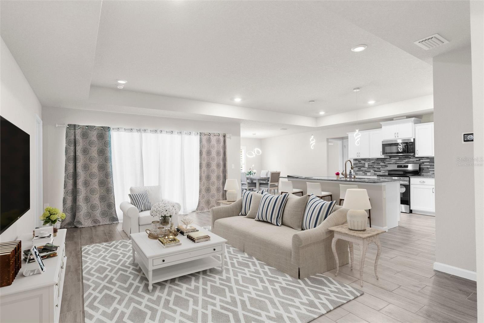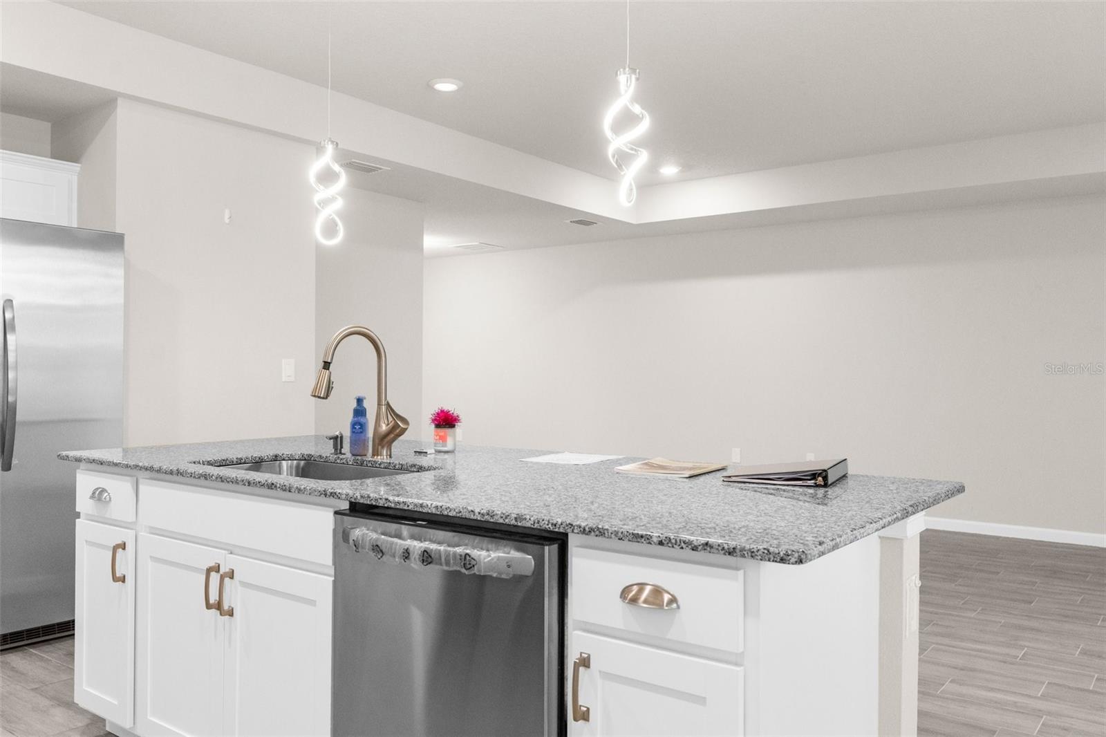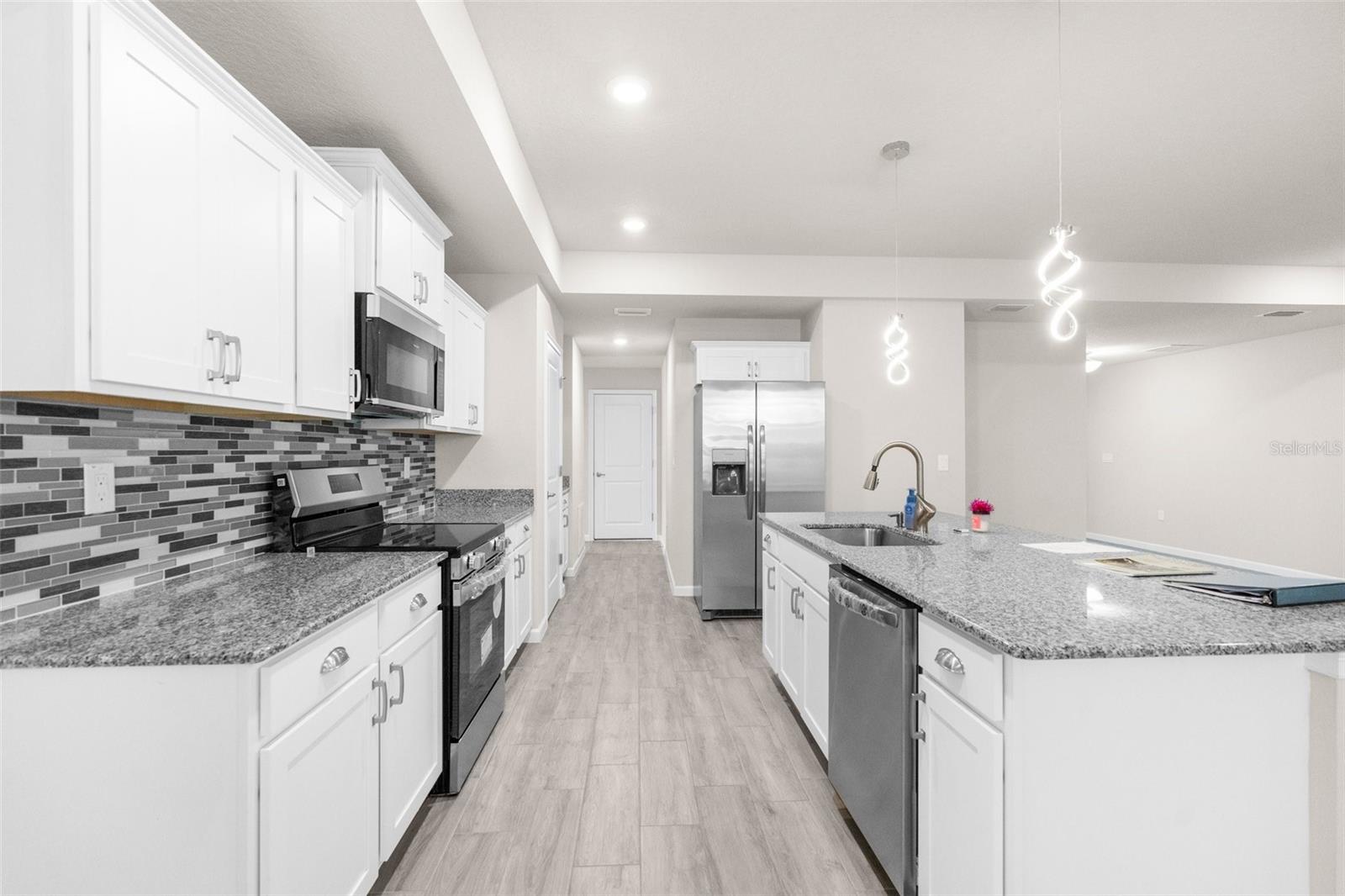 This stunning home built in 2022 on .33 of an acre, 3-bed, 2-bath home with a bonus room for an office or extra bedroom is a masterpiece of luxury living, offering elegance, comfort, and outdoor entertainment. Inside you will find the heart of this home is the open kitchen, featuring granite countertops and backsplash with brand new never used Frigidaire appliances. Kitchen overlooks the living room, dining room and back porch which is perfect for entertaining. Ceramic tile flows seamlessly throughout the main living areas and bathrooms and carpet for the comfort of the bedrooms. The master bedroom has 2 walk-in closets with plenty of space, and the luxurious master bath, featuring a large shower, his and hers sink, and extra storage closet. Three large guest bedrooms and an updated guest bath provide ample space for family and guests. Additional features include beautiful high end Norman brand plantation shutters, and an oversized 2-car garage, an extended drive for extra parking space, and landscaping irrigation system. Enjoy the convenience of an indoor laundry room. Conveniently located just minutes from shopping, the Suncoast Parkway, golf courses, this home offers the perfect blend of luxury and convenience. Don't miss your chance to own this exquisite home.