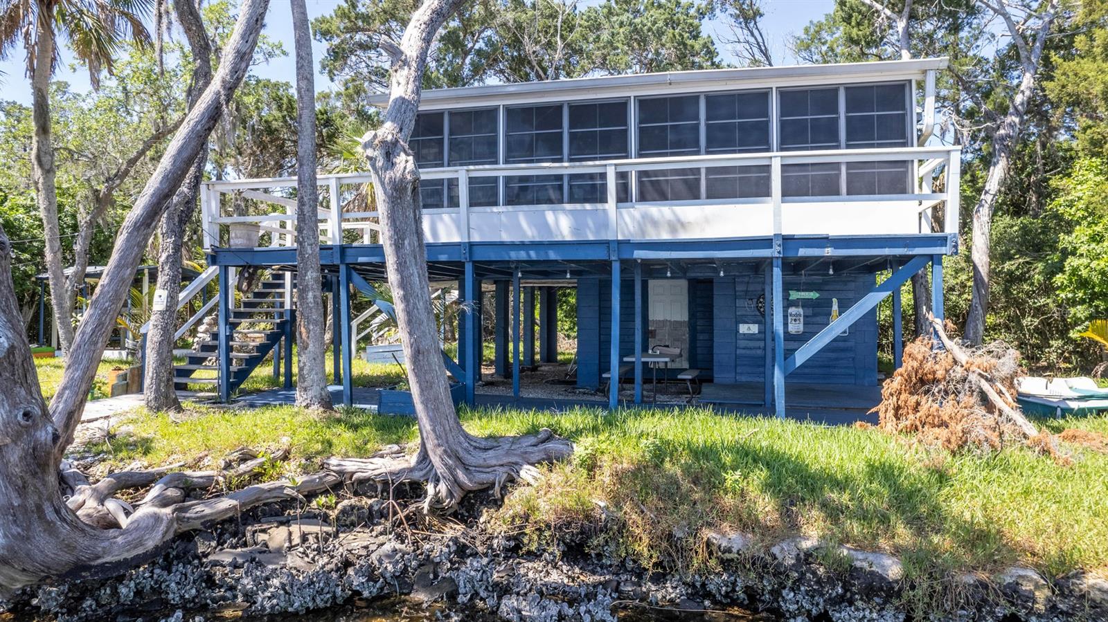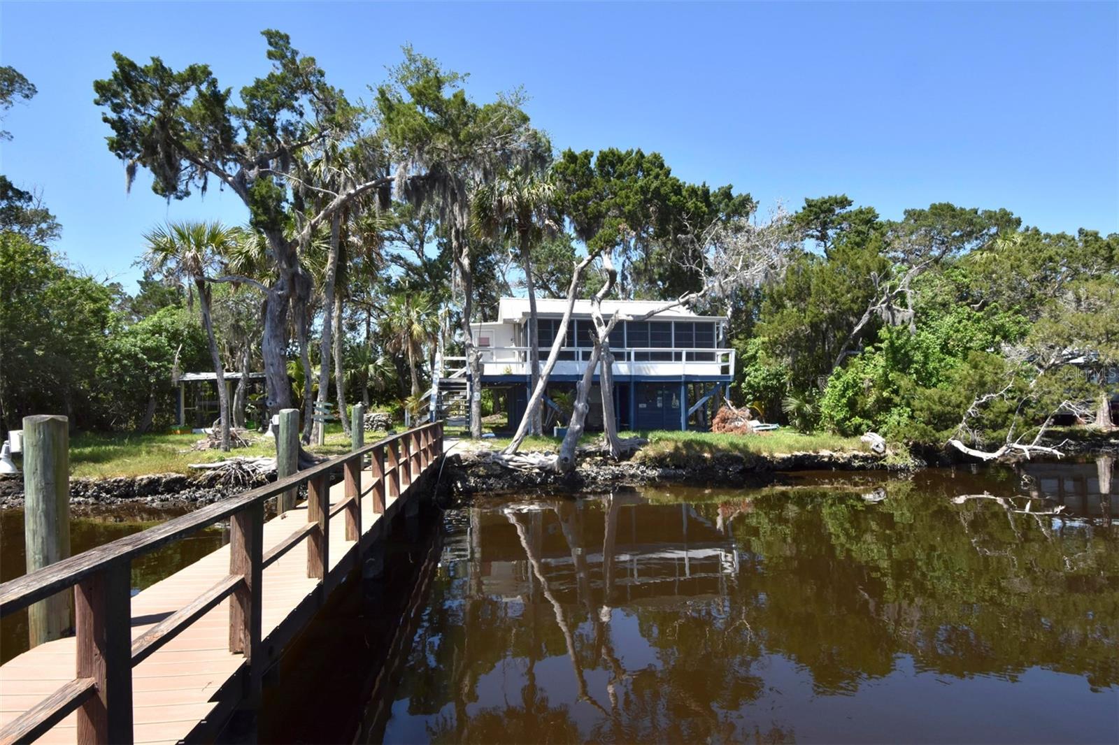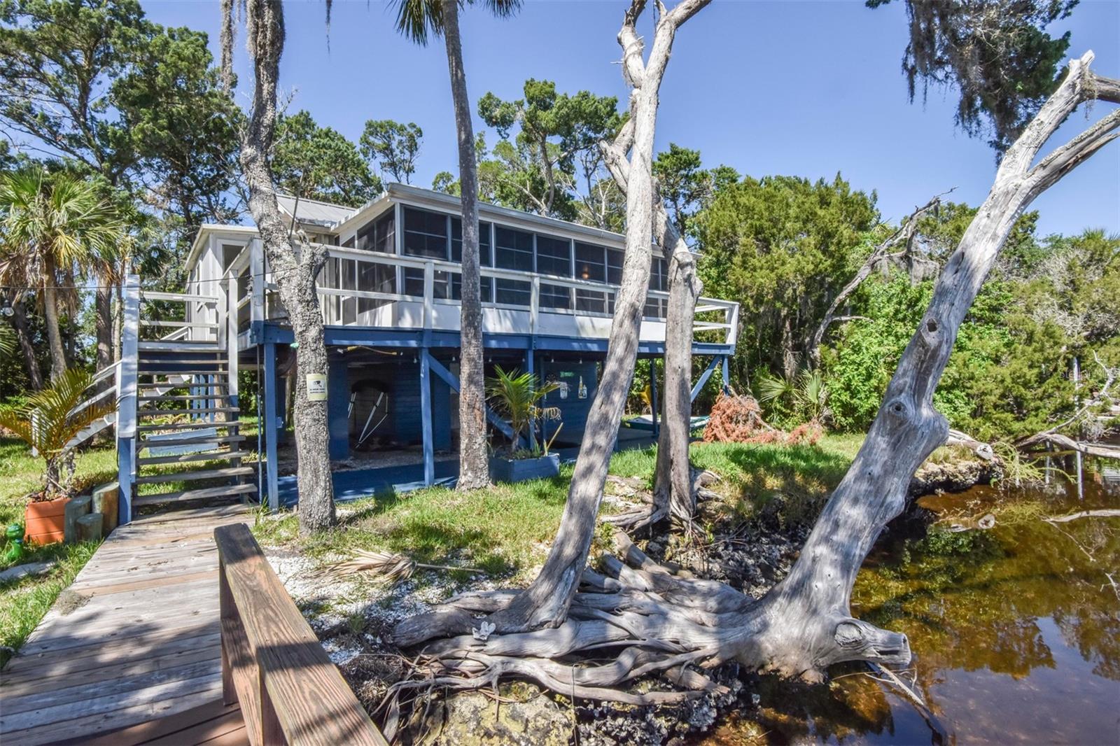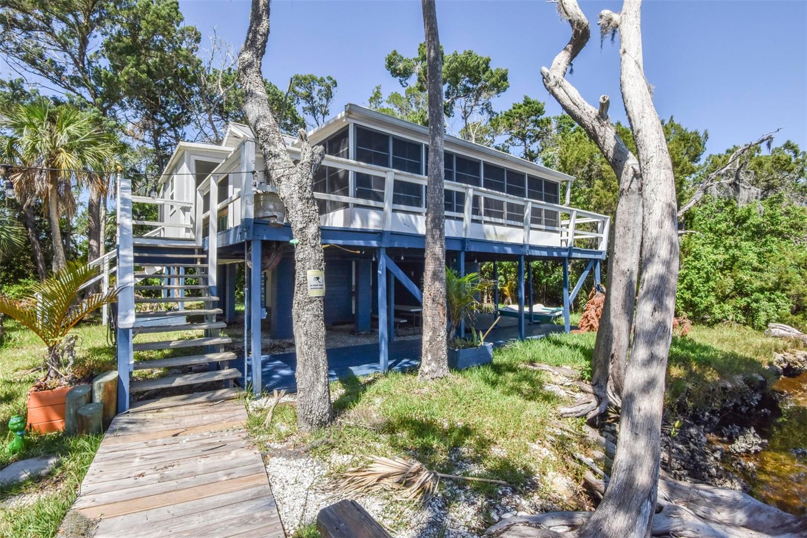 ESCAPE LIFE AT YOUR VERY OWN ISLAND HOME IN BEAUTIFUL HOMOSASSA!!! DIRECT GULF ACCESS! DIRECT ACCESS TO HOMOSASSA SPRINGS! HOME HAS NEVER FLOODED! BOAT ACCESS ONLY! This cozy cabin is situated on an island in Shivers Bay (just off main river) allowing you the freedom to explore the salt life for fishing & scalloping or fresh water springs where the manatees gather and the water is crystal clear & cool all year. Sip your morning coffee and watch the breathtaking sunrise & porpoises play from your Florida room or balcony. Firework events throughout the year can also be viewed from your balcony. Spend the day on the water tubing in the brackish water bay or exploring the Little Homosassa River and other waterways. When you return home, clean your catch of the day at your cleaning station on the dock, equipped with power and water supply. Admire the sunset as it slowly sinks over your home, or grab a bite to eat at one of the local waterfront restaurants where you also have a captivating view as it sets. Cabin comes furnished & features an open floor plan with double sided gas fireplace situated between main living area and Florida Room. Window unit & portable electric unit for A/C. Futon in Florida room provides additional sleeping space. Upstairs bath has been remodeled. Additional space with large storage cabinets. Below the home includes a newly added full bathroom, enclosed storage, & lots of open storage. Water collection/filtration system is in place, but not warranted. It was possibly damaged during Hurricane Idalia. Washer/dryer were more than likely damaged as well, but hookups are there. METAL ROOF, outdoor fire pit for cooking, & a cute gazebo with bar area & swings to relax. Approx 10-15 min boat ride from MacRae's, Riverside, Crump's, Florida Cracker Monkey Bar, The Freezer, & Monkey Island where the monkey's live! CASH OR OWNER FINANCING ONLY!! Selling AS-IS for seller convenience. Channel marker 72 make a right, go through power poles and it opens into Shivers Bay. Home on left.