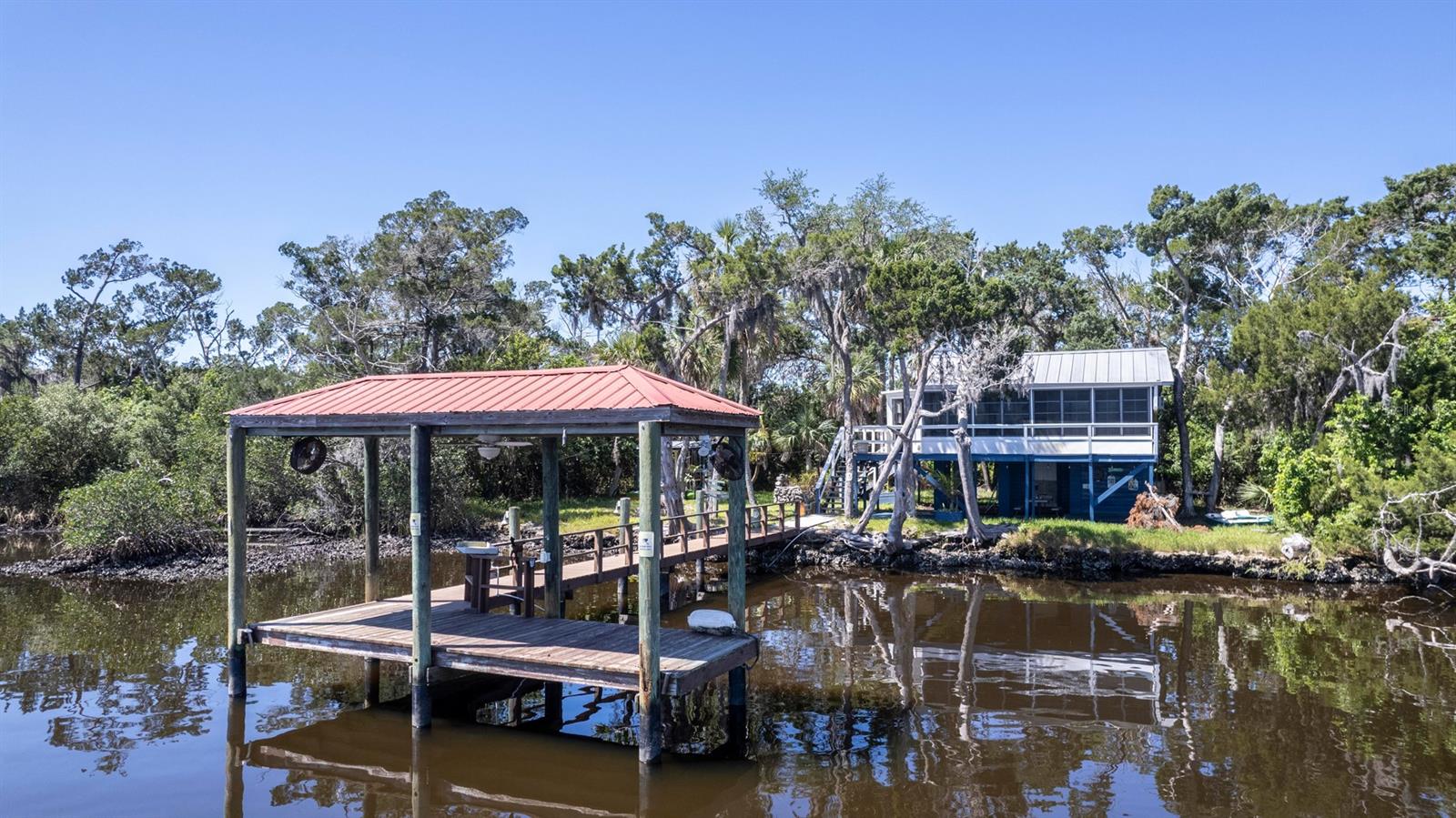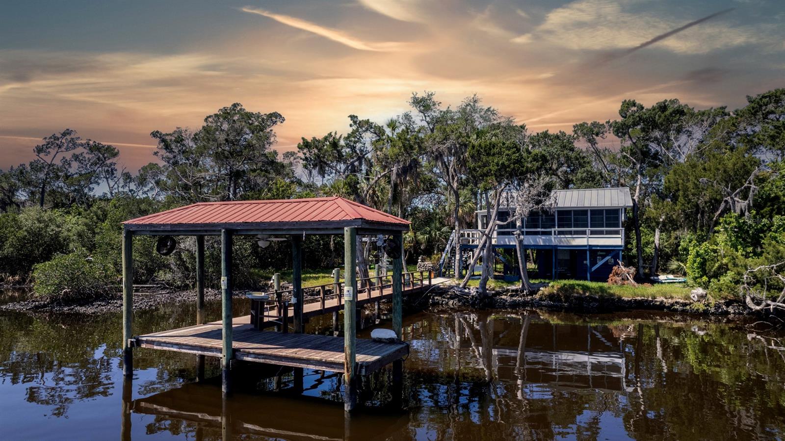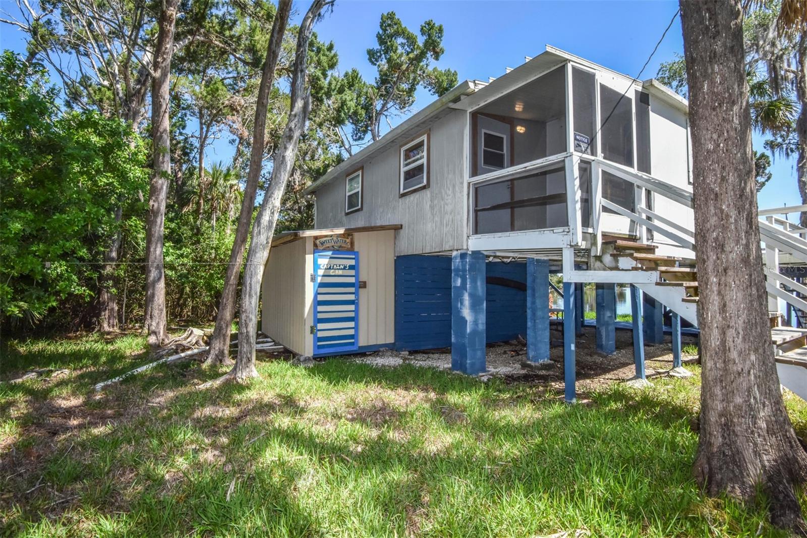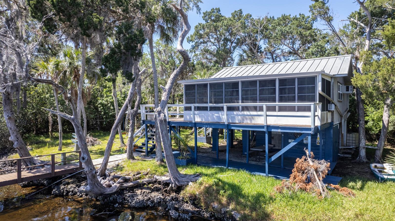 ESCAPE LIFE AT YOUR VERY OWN ISLAND HOME IN BEAUTIFUL HOMOSASSA!!! DIRECT GULF ACCESS! DIRECT ACCESS TO HOMOSASSA SPRINGS! HOME HAS NEVER FLOODED! BOAT ACCESS ONLY! This cozy cabin is situated on an island in Shivers Bay (just off main river) allowing you the freedom to explore the salt life for fishing & scalloping or fresh water springs where the manatees gather and the water is crystal clear & cool all year. Sip your morning coffee and watch the breathtaking sunrise & porpoises play from your Florida room or balcony. Firework events throughout the year can also be viewed from your balcony. Spend the day on the water tubing in the brackish water bay or exploring the Little Homosassa River and other waterways. When you return home, clean your catch of the day at your cleaning station on the dock, equipped with power and water supply. Admire the sunset as it slowly sinks over your home, or grab a bite to eat at one of the local waterfront restaurants where you also have a captivating view as it sets. Cabin comes furnished & features an open floor plan with double sided gas fireplace situated between main living area and Florida Room. Window unit & portable electric unit for A/C. Futon in Florida room provides additional sleeping space. Upstairs bath has been remodeled. Additional space with large storage cabinets. Below the home includes a newly added full bathroom, enclosed storage, & lots of open storage. Water collection/filtration system is in place, but not warranted. It was possibly damaged during Hurricane Idalia. Washer/dryer were more than likely damaged as well, but hookups are there. METAL ROOF, outdoor fire pit for cooking, & a cute gazebo with bar area & swings to relax. Approx 10-15 min boat ride from MacRae's, Riverside, Crump's, Florida Cracker Monkey Bar, The Freezer, & Monkey Island where the monkey's live! CASH OR OWNER FINANCING ONLY!! Selling AS-IS for seller convenience. Channel marker 72 make a right, go through power poles and it opens into Shivers Bay. Home on left.