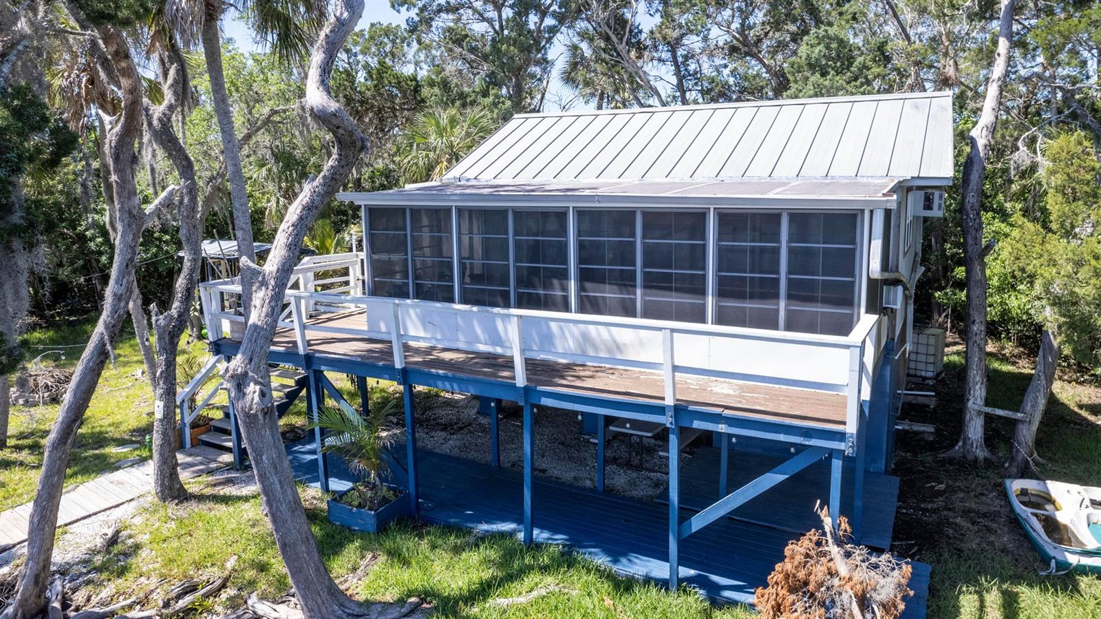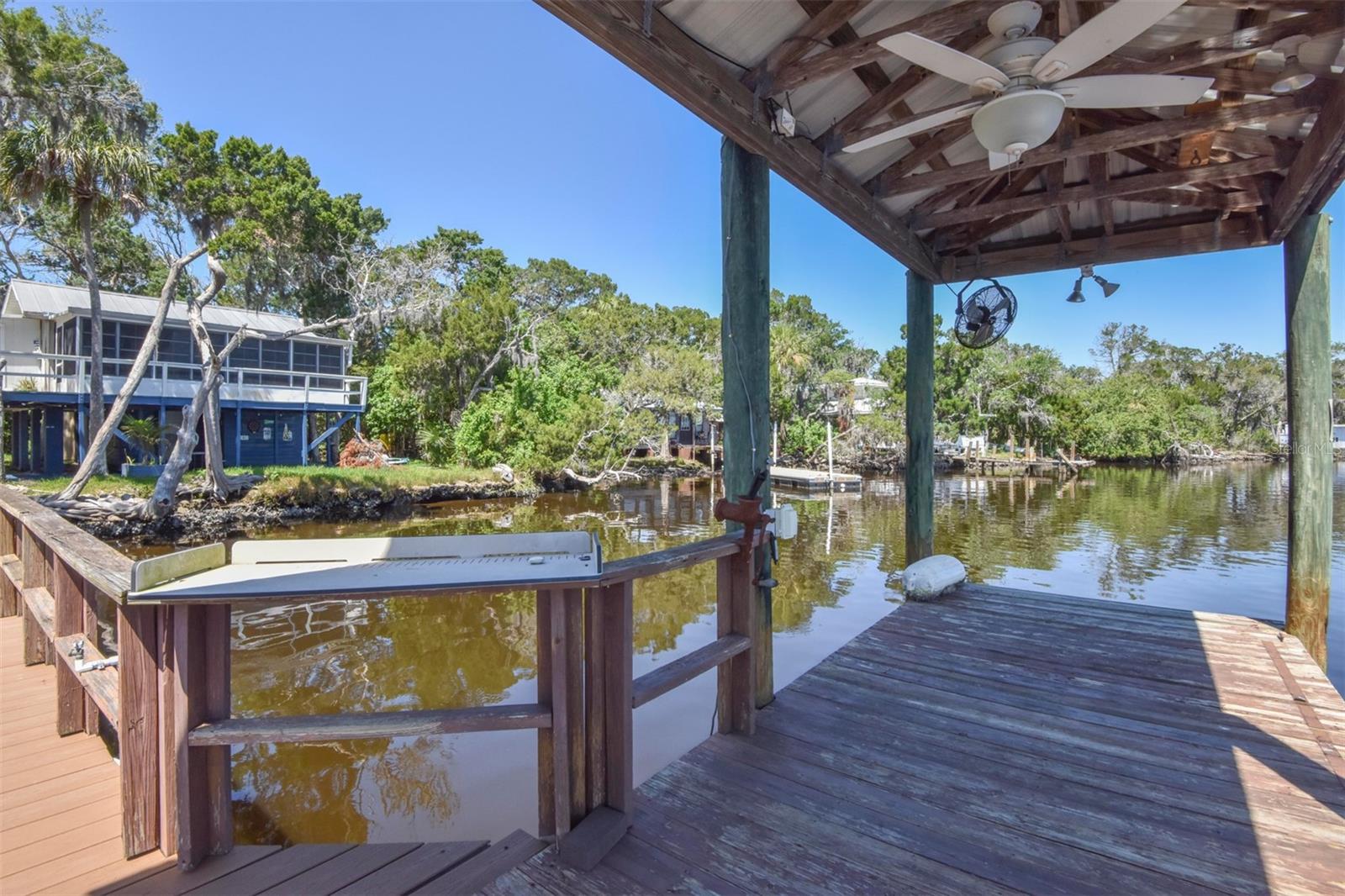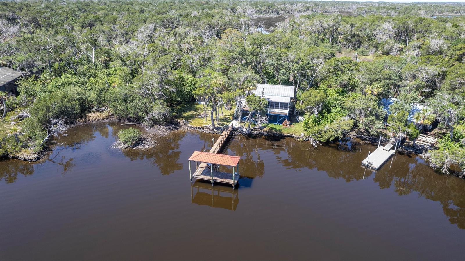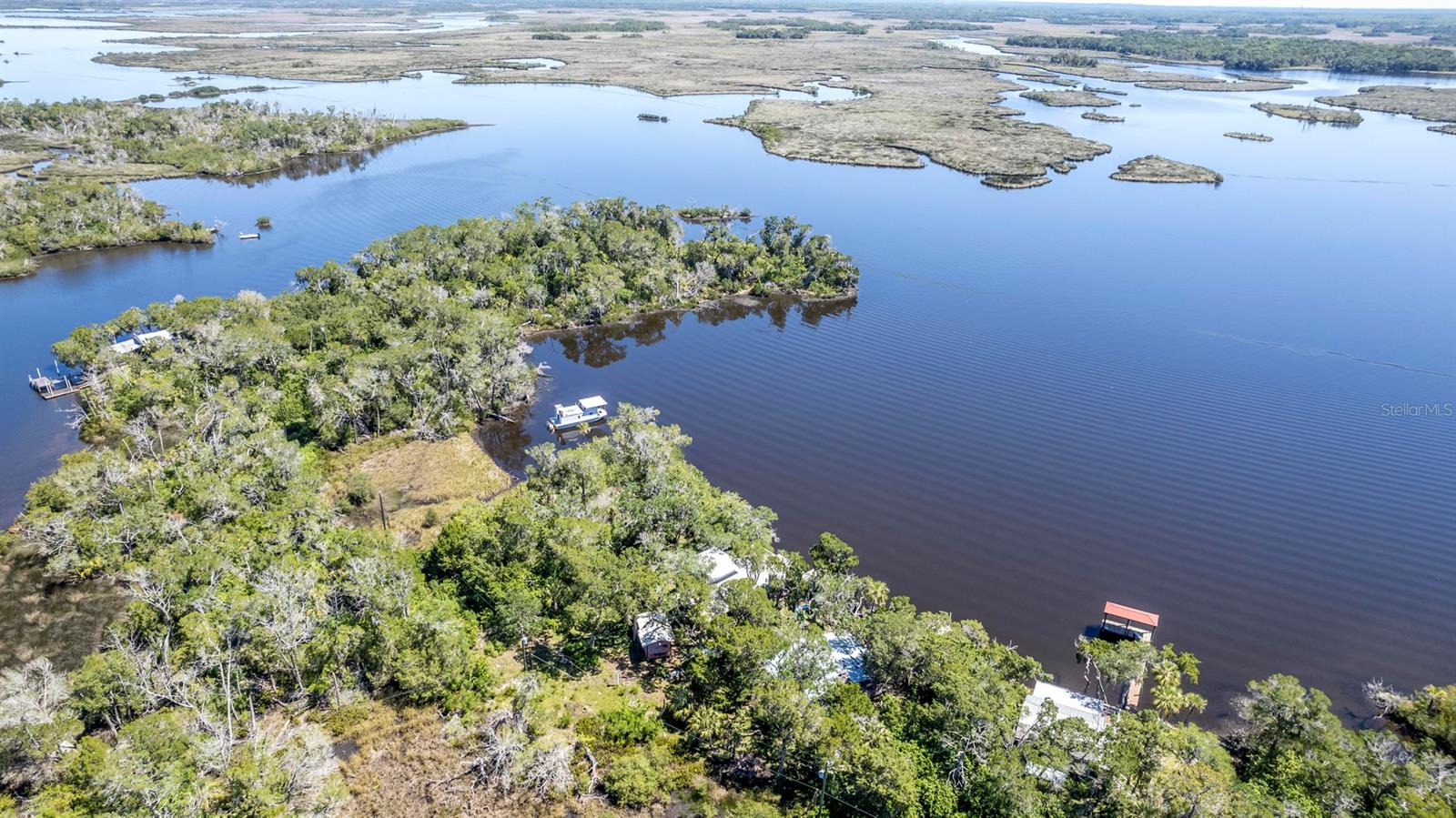 ESCAPE LIFE AT YOUR VERY OWN ISLAND HOME IN BEAUTIFUL HOMOSASSA!!! DIRECT GULF ACCESS! DIRECT ACCESS TO HOMOSASSA SPRINGS! HOME HAS NEVER FLOODED! BOAT ACCESS ONLY! This cozy cabin is situated on an island in Shivers Bay (just off main river) allowing you the freedom to explore the salt life for fishing & scalloping or fresh water springs where the manatees gather and the water is crystal clear & cool all year. Sip your morning coffee and watch the breathtaking sunrise & porpoises play from your Florida room or balcony. Firework events throughout the year can also be viewed from your balcony. Spend the day on the water tubing in the brackish water bay or exploring the Little Homosassa River and other waterways. When you return home, clean your catch of the day at your cleaning station on the dock, equipped with power and water supply. Admire the sunset as it slowly sinks over your home, or grab a bite to eat at one of the local waterfront restaurants where you also have a captivating view as it sets. Cabin comes furnished & features an open floor plan with double sided gas fireplace situated between main living area and Florida Room. Window unit & portable electric unit for A/C. Futon in Florida room provides additional sleeping space. Upstairs bath has been remodeled. Additional space with large storage cabinets. Below the home includes a newly added full bathroom, enclosed storage, & lots of open storage. Water collection/filtration system is in place, but not warranted. It was possibly damaged during Hurricane Idalia. Washer/dryer were more than likely damaged as well, but hookups are there. METAL ROOF, outdoor fire pit for cooking, & a cute gazebo with bar area & swings to relax. Approx 10-15 min boat ride from MacRae's, Riverside, Crump's, Florida Cracker Monkey Bar, The Freezer, & Monkey Island where the monkey's live! CASH OR OWNER FINANCING ONLY!! Selling AS-IS for seller convenience. Channel marker 72 make a right, go through power poles and it opens into Shivers Bay. Home on left.