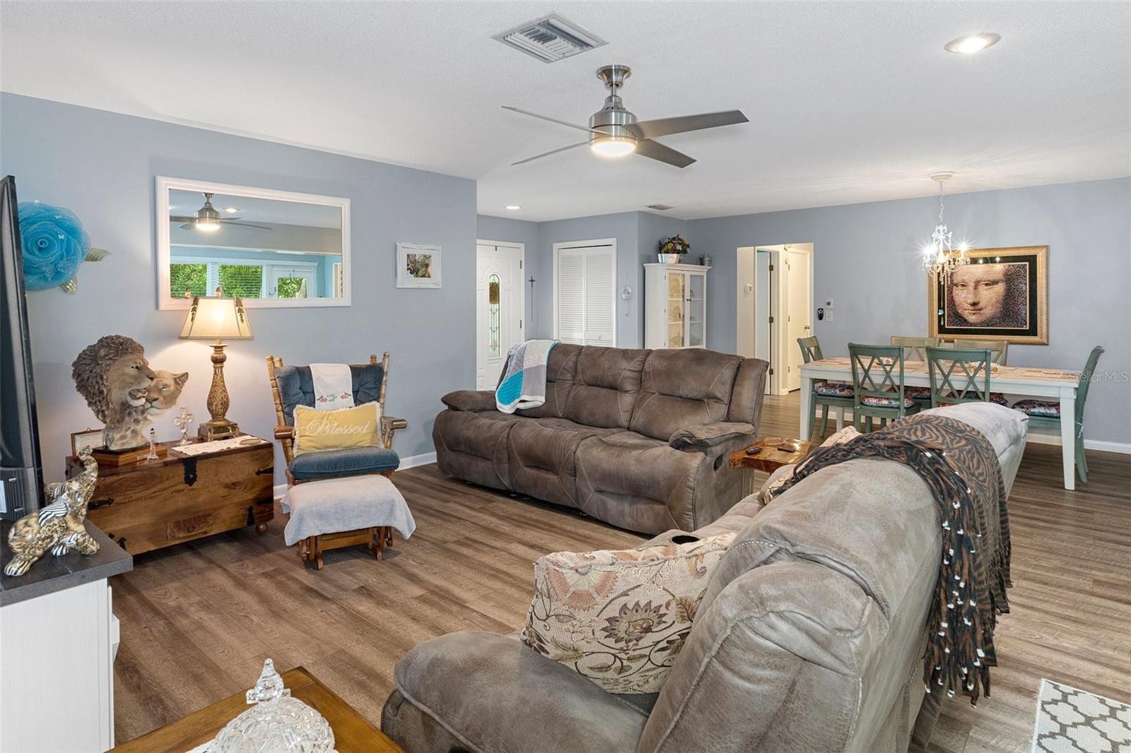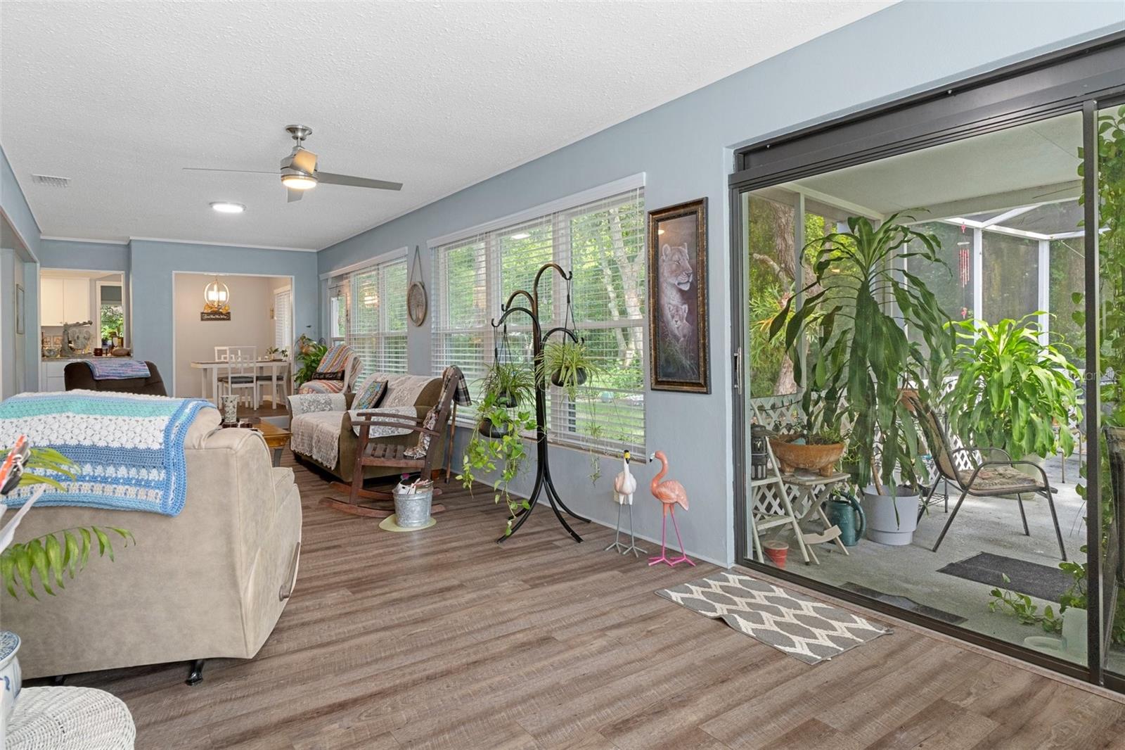 *Motivated Seller* Enter the captivating Sugarmill Woods Community, this Home is on a quiet cul-de-sac street with street lighting, boasting curb appeal with a side entry driveway. Enter through double doors in the covered entry. The Great Room is Open, and used as a Living Room/Dining Room, with access to the A/C Florida Room, filled with light viewed through the new windows. Split floor plan, Master and master bath on one end, with sliders to Florida Room; 2 Bedrooms on the other side, with bath between. Kitchen has a breakfast nook area, Upgraded Appliances. Vinyl planking throughout the home, and Freshly Painted Interior/Exterior. Laundry has storage and a deep sink, as you pass thru to the 2-car Garage. A Screened Patio provides the place to Grill and Chill, enjoy the nature. This home with the landscape and natural surroundings boasts a serene feeling. The Upgrades are Re-roof 2023, New Gutter & Downspouts, Windows 2018, A/C Unit replaced 2021, Painting Interior & Exterior, Bosch Dishwasher, Fans & Lighting. Landscape upgraded. If you wanted to live near the Nature Coast in Sugarmill Woods, this Home awaits you, in that location.