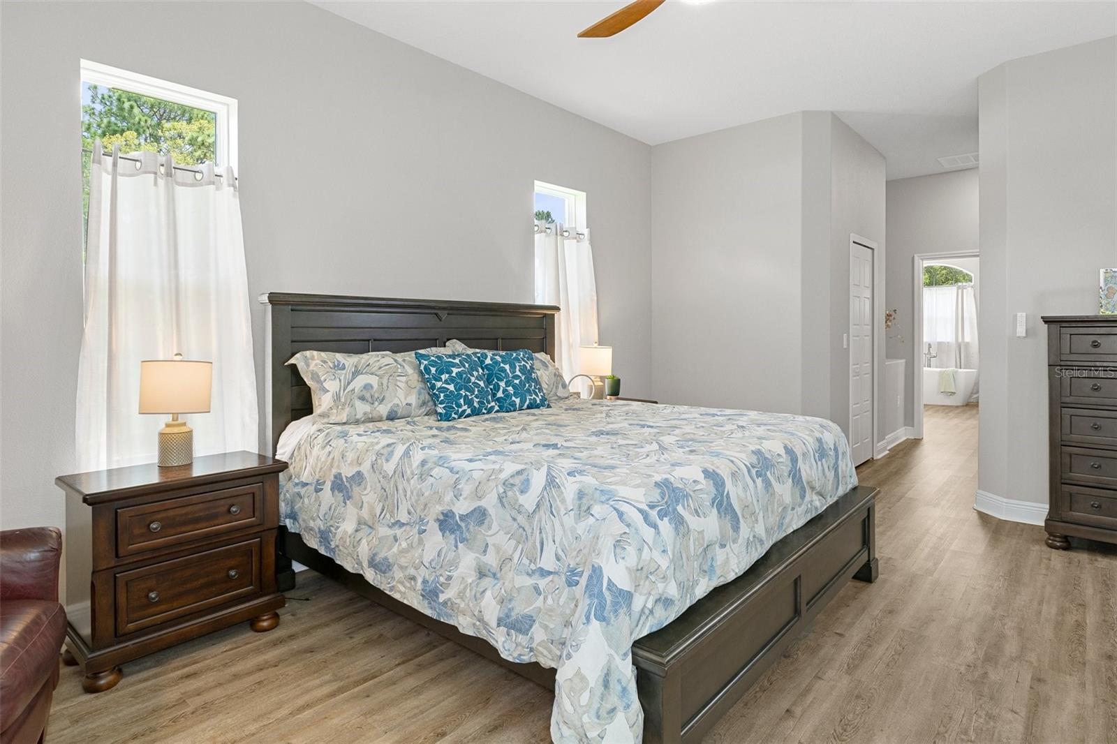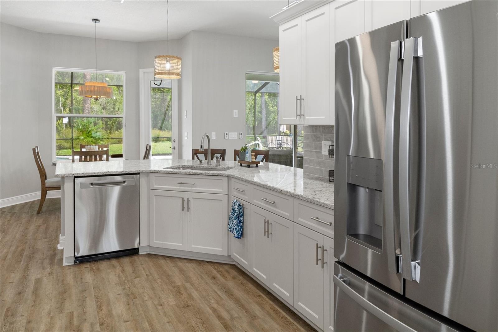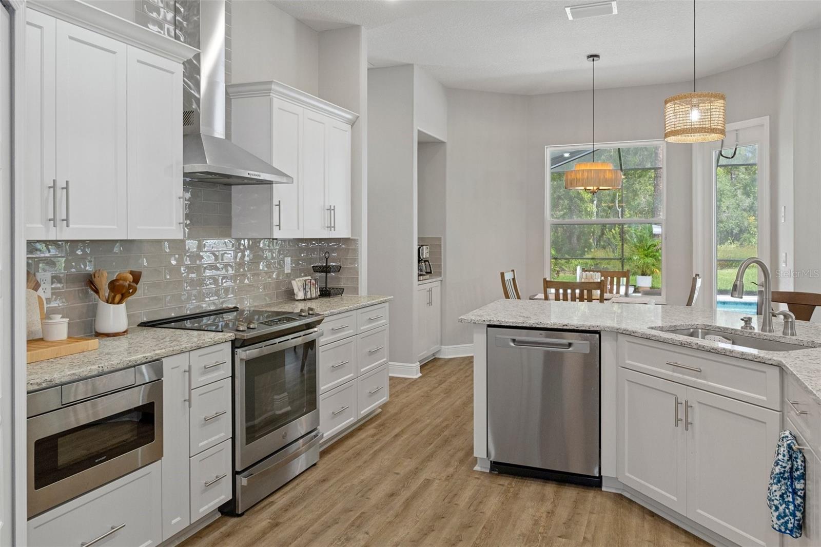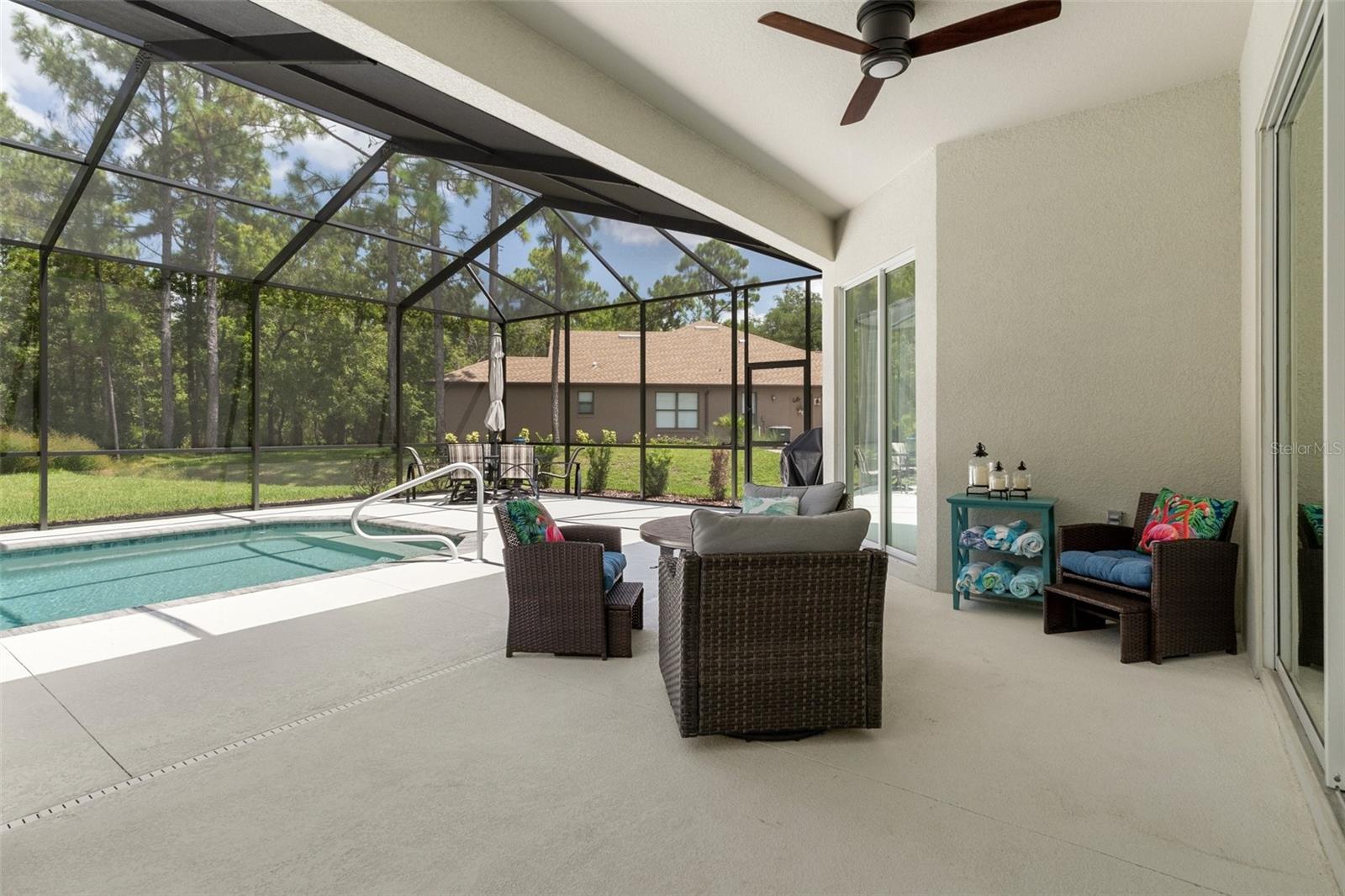 Welcome to 54 Daisy Street, a 2024-built and extended Chesterfield model by Royal Coachman. It's ideally situated on a .38-acre corner lot in the Oak Village of Sugarmill Woods, just minutes from the Veterans Expressway and Highway 19. Step into the foyer of this beautiful home and be swept away with the luxury that surrounds you. An open concept with architectural variety, this home offers a large dining room and a great room that provides a full view of the sparkling (and HEATED) pool and hot-tub through triple sliding-glass doors. It boasts high tray ceilings, crown molding, a fireplace, luxury vinyl floors, extra-wide baseboards, a breakfast nook with a coffee bar and large windows and a door to the back lanai and pool areas. And let's talk KITCHEN. This beauty has 42-inch wood cabinets topped with granite, deep drawers for easy access to pots and pans, pullout shelving, upgraded stainless steel appliances, a walk-in pantry, and much, much more. The primary bedroom, with its extended square footage, has room for reading chairs or exercise equipment and offers double walk-in closets. That's not all. The primary bath feels like a spa with its free-standing tub, HUGE shower, and separate vanities. Can there be more, you ask? Absolutely, there can be more! We haven't even talked closets, and this home is designed with storage in mind. You won't be disappointed when you unpack your things, and the oversized three-car garage has epoxy floors and an extra workspace / storage area. The attic access is complete with a pull-down ladder, and the attic itself is finished to provide lots of room for those seasonal items. The front exterior entryway has travertine tile under foot and double doors for an easy move-in day, and the massive 30'4" x 10' back lanai is complete with a barbecue area and exterior shower. The yard is landscaped and has a sprinkler system, and there are gutters on both the front and back of the home. FURNITURE IS NEGOTIABLE (excluding sectional and coffee table). This lovely property is a must see. Make your appointment today!