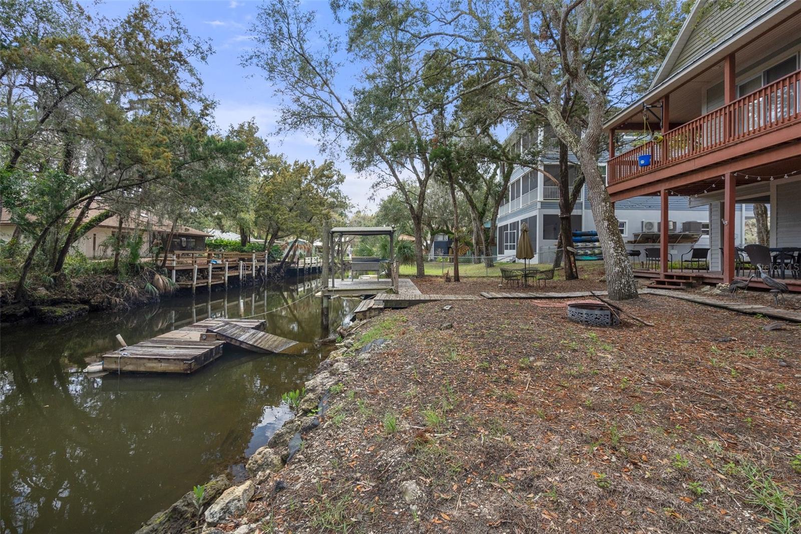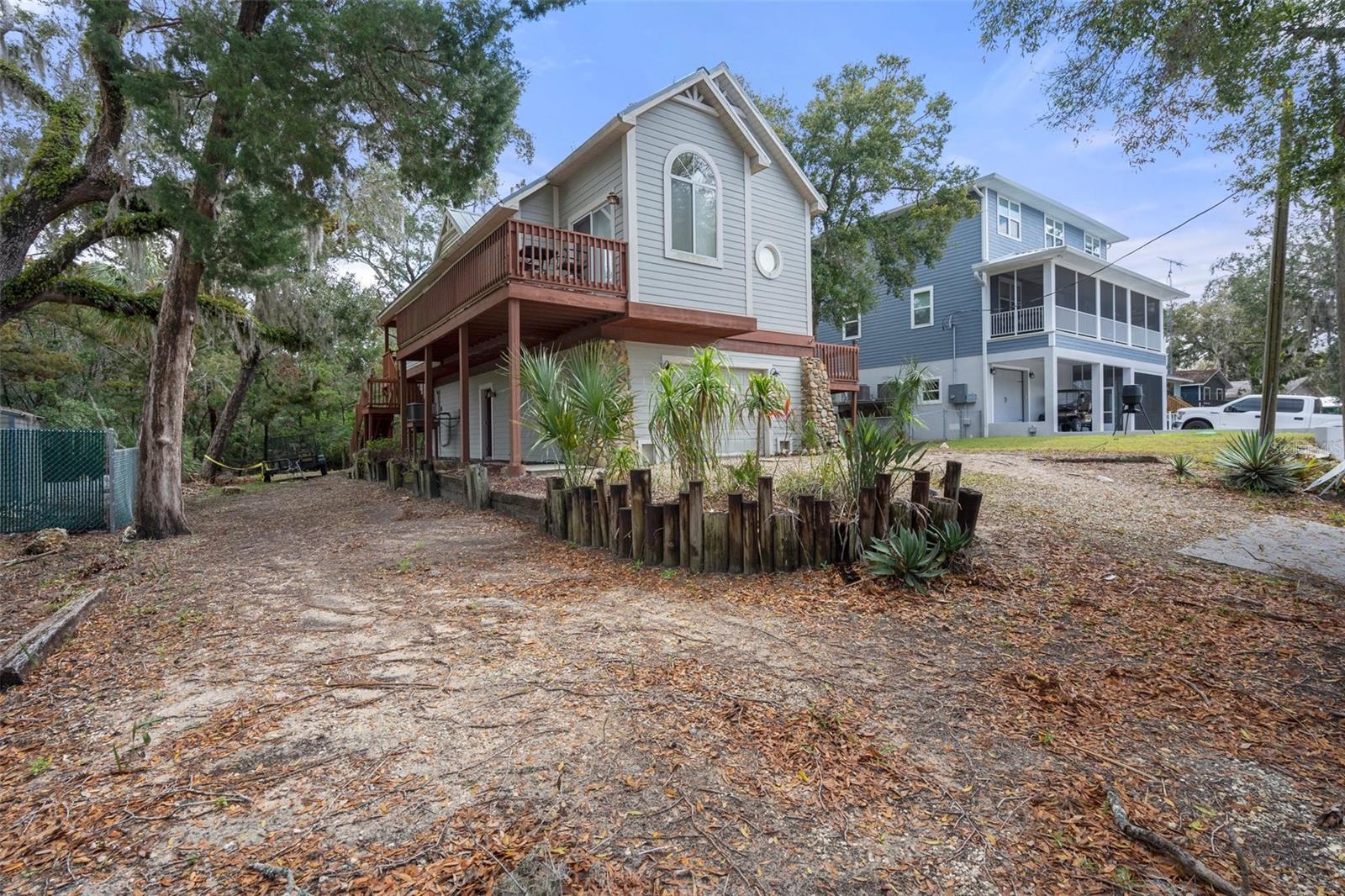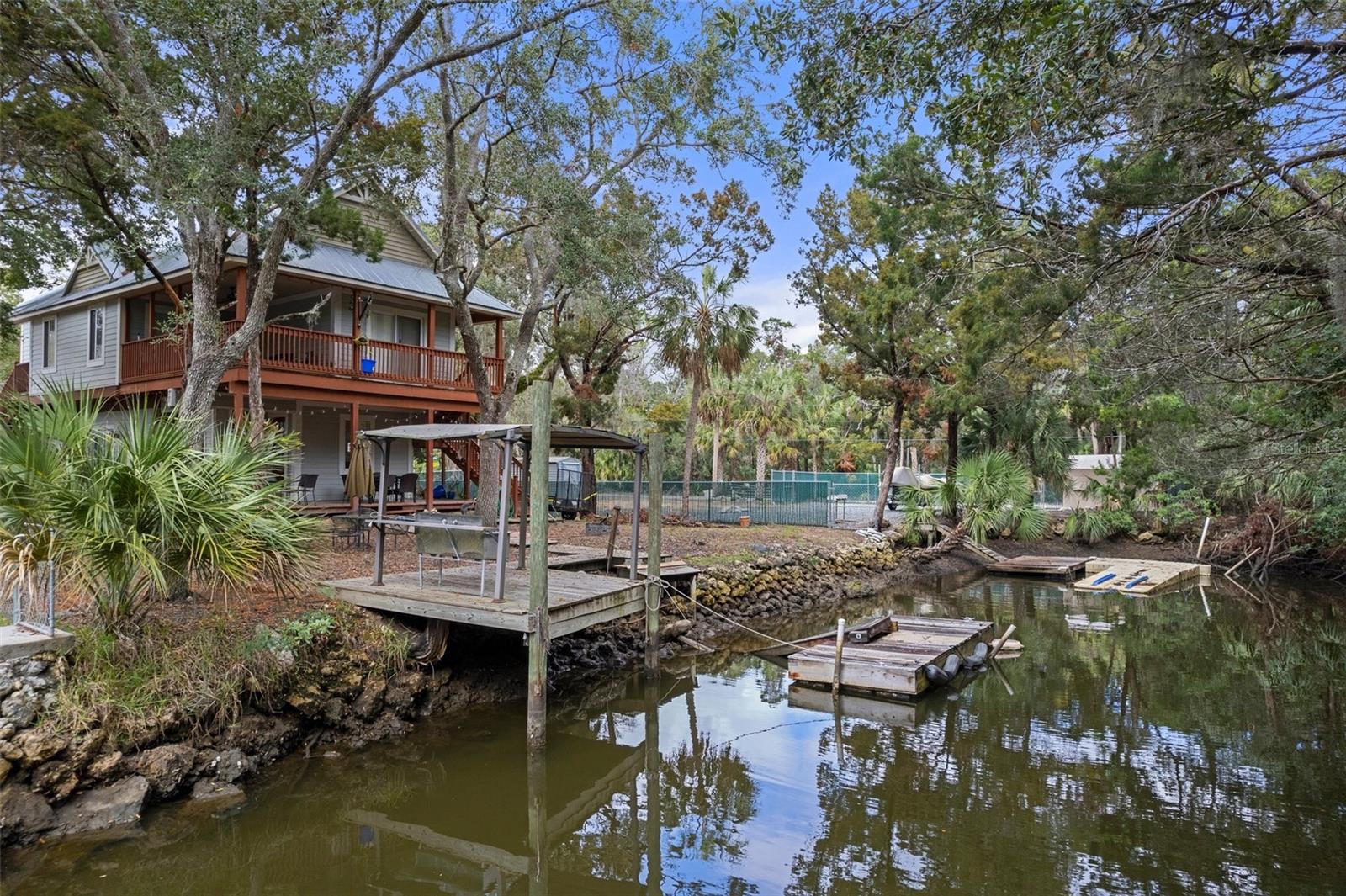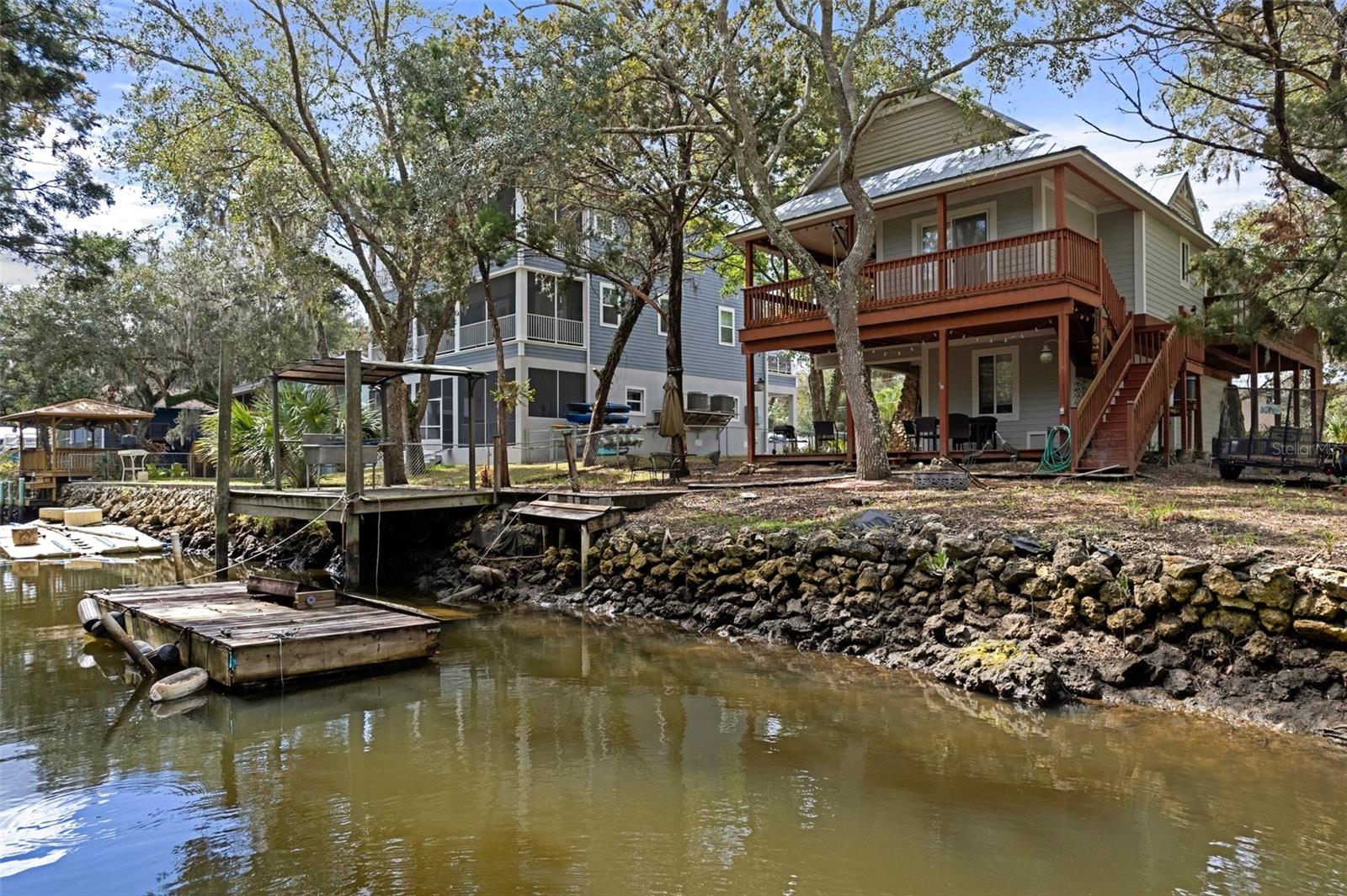 Discover your dream waterfront oasis with this stunning 3-bedroom, 2-bathroom home, located just 700 feet from direct Gulf access. As you step through the raised front entry, you’re welcomed into a bright and spacious living room featuring cathedral ceilings, stylish plant shelving, an updated ceiling fan, and an abundance of natural light. The beautifully designed kitchen makes entertaining effortless, showcasing sleek stone countertops, modern cabinetry, stainless steel appliances, and a convenient eat-in breakfast bar. Adjacent to the kitchen, the 15x9 dining room offers a seamless transition to the first of two balconies—an ideal spot for morning coffee while soaking in the serene views of Florida’s native wildlife. Escape to the tranquil master suite located on the second main living floor, complete with cathedral ceilings, generous closet space, and private access to the second balcony overlooking the backyard and picturesque canal. Just outside the master bedroom, the main bathroom boasts a tub/shower combination and a spacious single vanity. Guests will appreciate the thoughtful layout, offering privacy and comfort. The first guest bedroom, situated on the second level, features direct access to the first balcony. Meanwhile, the second guest bedroom on the ground level provides added seclusion, easy access, ample storage, and an en-suite bathroom with a tiled shower and modern vanity. Experience true Florida living on the expansive 26x19 open rear porch, which leads to an inviting wooden dock complete with a fish cleaning station. Additional highlights of this exceptional property include a durable metal roof, raised HVAC system, low-maintenance vinyl plank flooring throughout, extra boat parking, and so much more. Don’t miss out on this rare waterfront gem! Who do you know that’s ready to make this paradise their new home? Call us today to schedule a private showing!