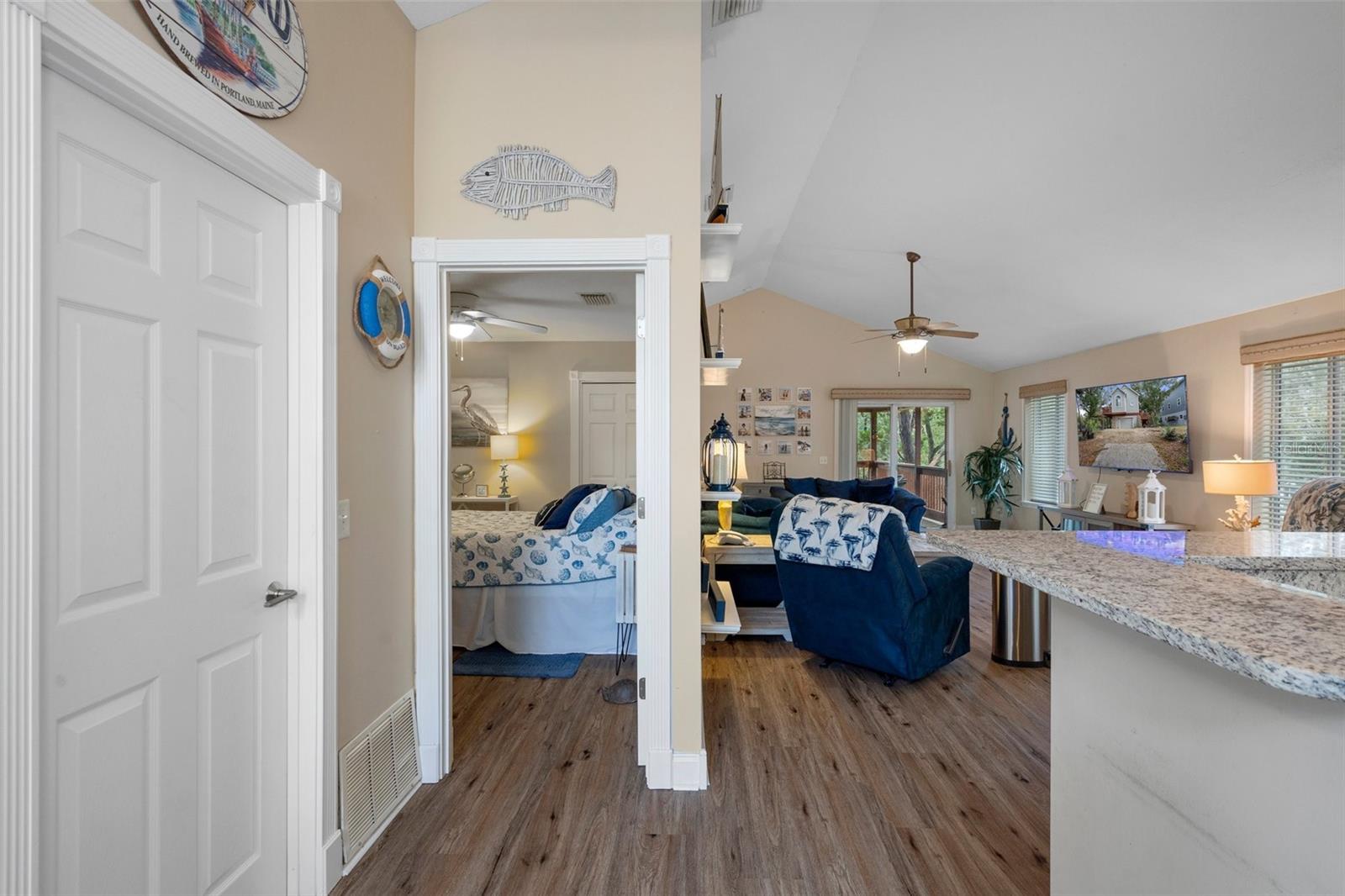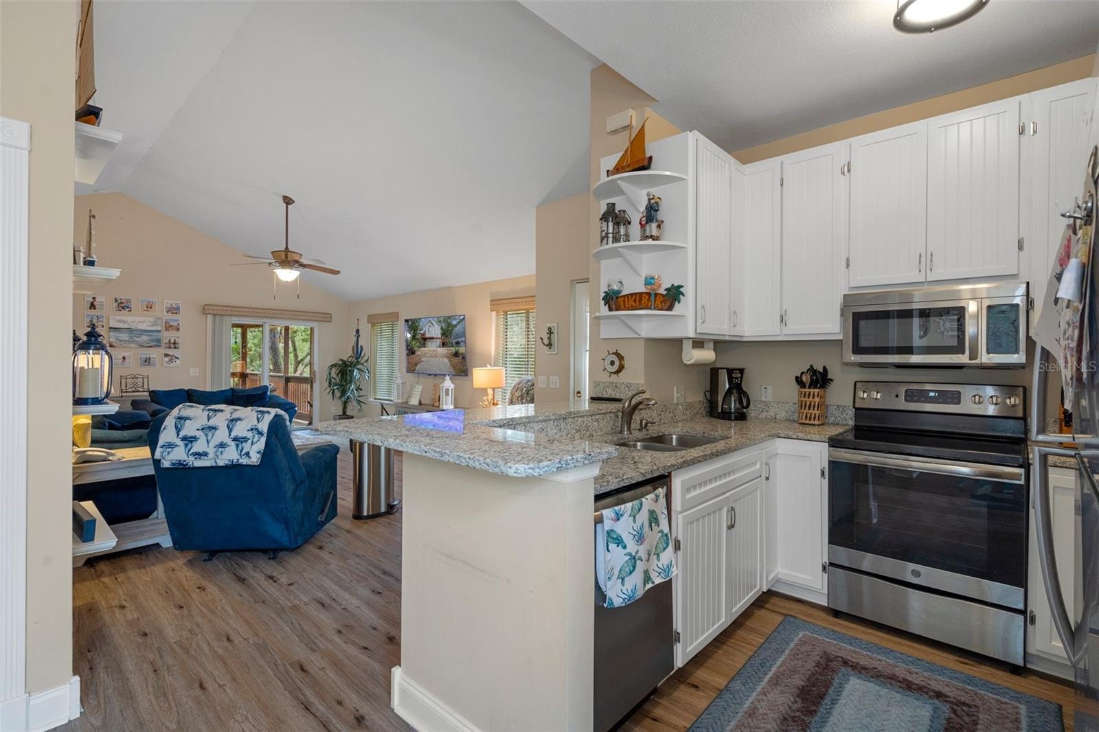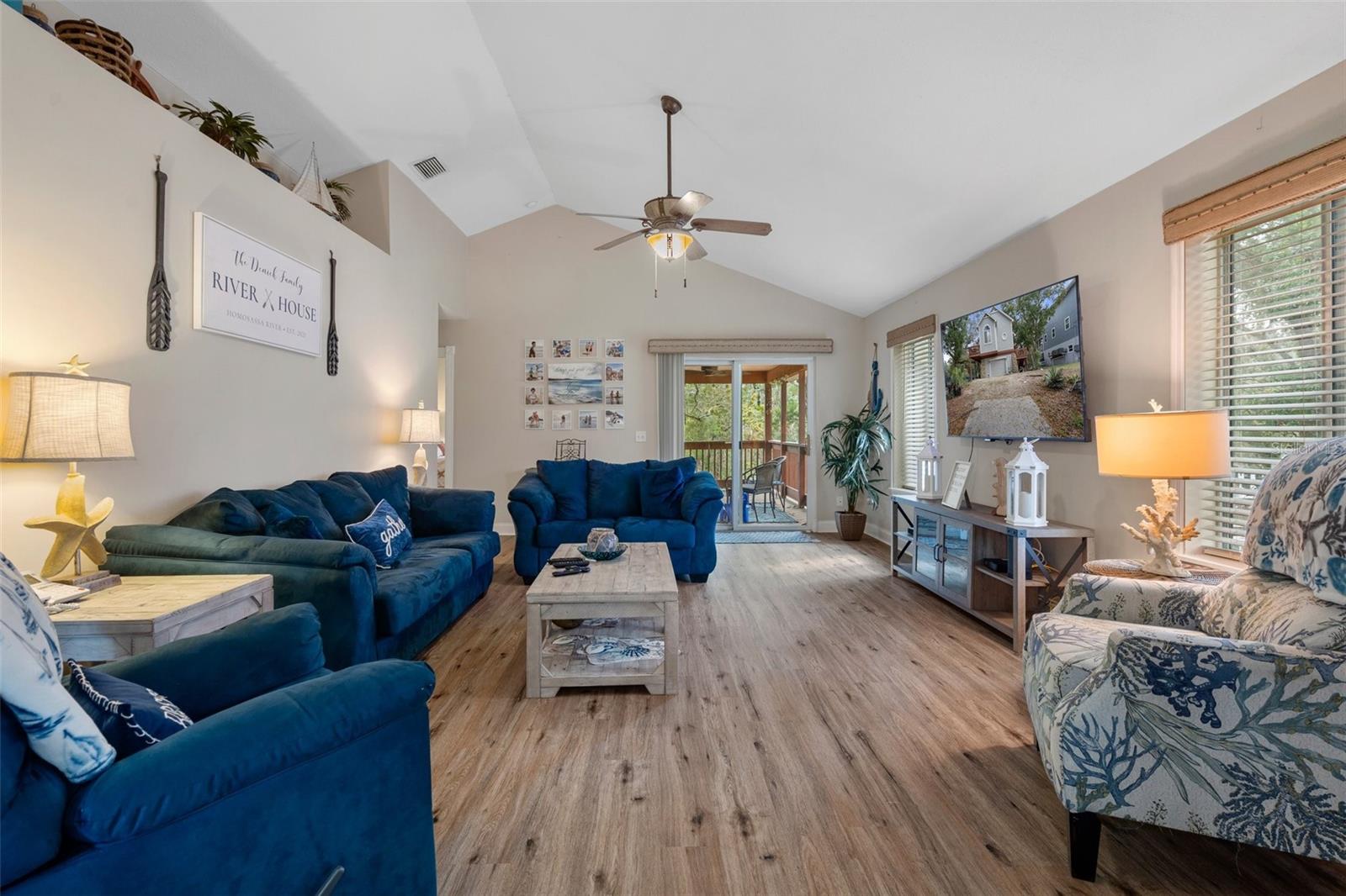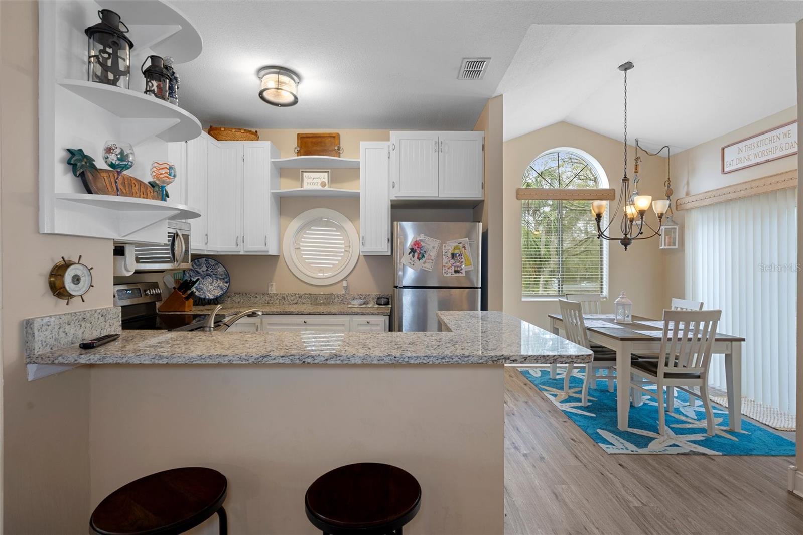 Discover your dream waterfront oasis with this stunning 3-bedroom, 2-bathroom home, located just 700 feet from direct Gulf access. As you step through the raised front entry, you’re welcomed into a bright and spacious living room featuring cathedral ceilings, stylish plant shelving, an updated ceiling fan, and an abundance of natural light. The beautifully designed kitchen makes entertaining effortless, showcasing sleek stone countertops, modern cabinetry, stainless steel appliances, and a convenient eat-in breakfast bar. Adjacent to the kitchen, the 15x9 dining room offers a seamless transition to the first of two balconies—an ideal spot for morning coffee while soaking in the serene views of Florida’s native wildlife. Escape to the tranquil master suite located on the second main living floor, complete with cathedral ceilings, generous closet space, and private access to the second balcony overlooking the backyard and picturesque canal. Just outside the master bedroom, the main bathroom boasts a tub/shower combination and a spacious single vanity. Guests will appreciate the thoughtful layout, offering privacy and comfort. The first guest bedroom, situated on the second level, features direct access to the first balcony. Meanwhile, the second guest bedroom on the ground level provides added seclusion, easy access, ample storage, and an en-suite bathroom with a tiled shower and modern vanity. Experience true Florida living on the expansive 26x19 open rear porch, which leads to an inviting wooden dock complete with a fish cleaning station. Additional highlights of this exceptional property include a durable metal roof, raised HVAC system, low-maintenance vinyl plank flooring throughout, extra boat parking, and so much more. Don’t miss out on this rare waterfront gem! Who do you know that’s ready to make this paradise their new home? Call us today to schedule a private showing!