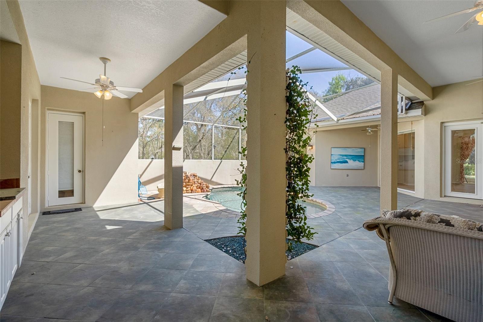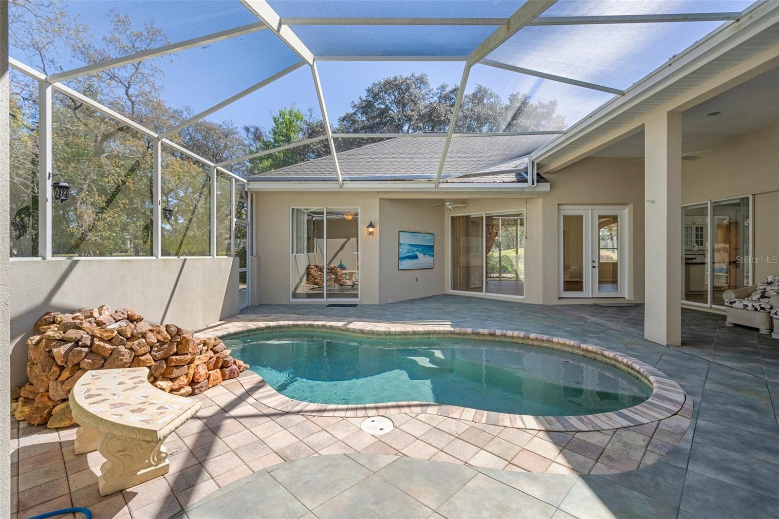 Discover the perfect blend of comfort, elegance, and resort-style living in the highly desirable Southern Woods section of Sugarmill Woods! This stunning Cabana-style 3-bedroom, 3-bathroom home, built in 2000, offers 2,179 sq. ft. of well-designed living space with a functional split-bedroom floor plan for ultimate privacy. With vaulted ceilings, abundant natural light, and thoughtfully designed living areas, this home creates a warm and inviting atmosphere. The spacious primary suite is a true retreat, featuring a walk-in closet, en-suite bath, dual vanities, and glass block shower to unwind. The second bedroom is generously sized, while the third bedroom doubles as an in-law suite, offering added convenience and flexibility. Designed for both relaxation and entertainment, this Cabana-style home embraces indoor-outdoor living at its finest. The beautifully designed kitchen features a center island, breakfast bar, pantry, and an eat-in nook, making meal prep and casual dining a delight. The adjacent formal dining area is ideal for hosting family and friends. The expansive living room flows seamlessly to the outdoor living space, where a covered and screened lanai overlooks the private in-ground pool with a serene stone waterfall feature—an oasis for relaxation and entertaining. Enjoy the perks of a cutting-edge solar power system that generates approximately $250 per month, dramatically lowering your electricity bill!!! Situated on the 1st hole of the Citrus National golf course, this home offers breathtaking views, enhancing the peaceful ambiance. The outdoor area is further complemented by a rear screened porch and an outdoor kitchen, making it perfect for year-round Florida living. Additional highlights include a spacious 2-car garage, indoor laundry room, and ample storage throughout. Nestled within the well-maintained Sugarmill Woods Community, residents enjoy a variety of resort-style amenities, including a clubhouse, fitness center, golf course, tennis courts, pickleball, and shuffleboard. With low HOA fees covering cable, internet, and ground maintenance, this home provides both luxury and convenience. Located just minutes from shopping, dining, outdoor recreation, and major highways, this exceptional Cabana-style golf course retreat offers the perfect balance of tranquility and accessibility. Don't miss your chance to own this one-of-a-kind home—schedule your private showing today!