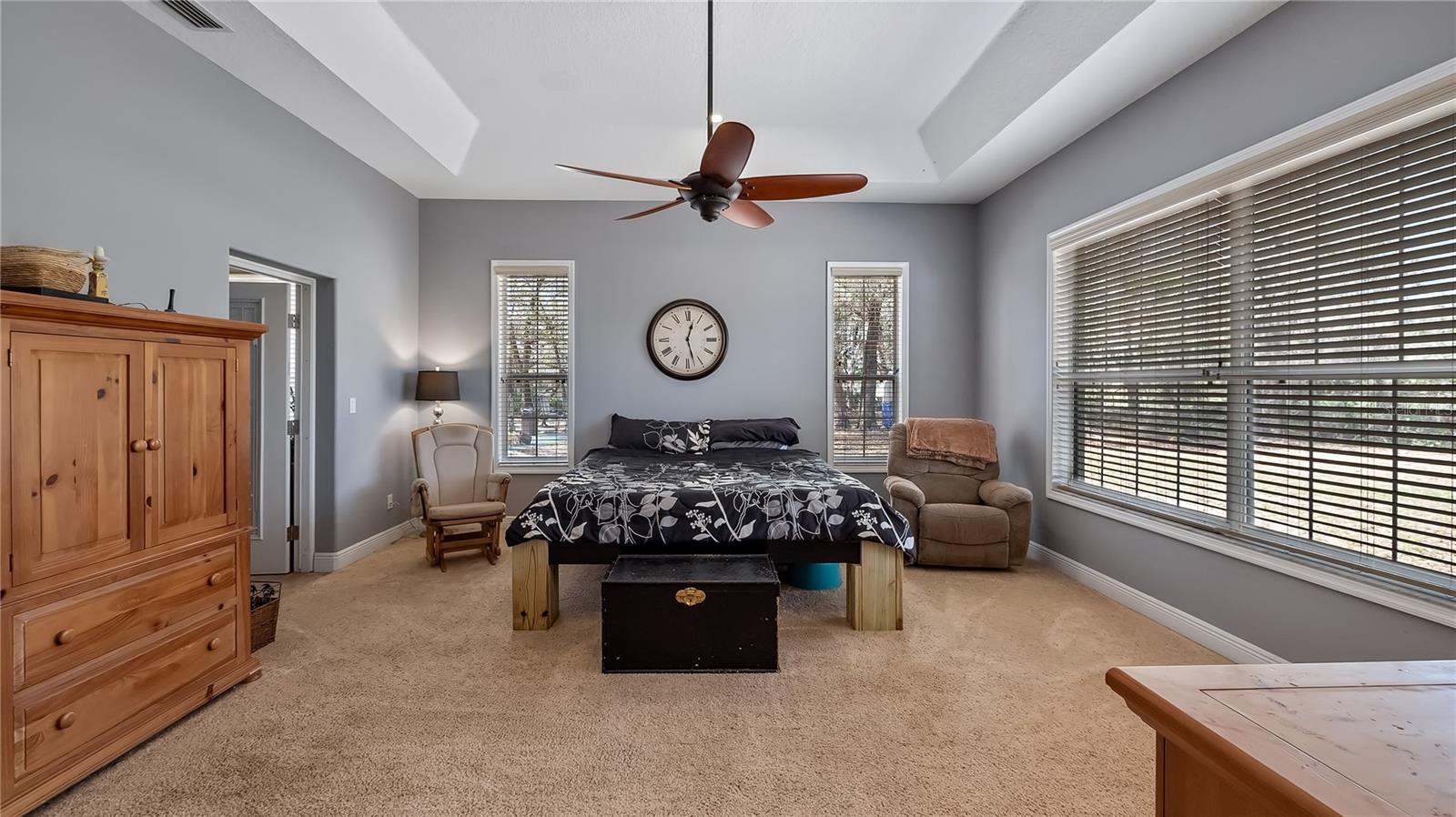 One or more photo(s) has been virtually staged. IMPROVED PRICE!! "Survey says" 4.88 ACRES with a SPACIOUS 3 bedroom 3 bath OPEN FLOOR PLAN home welcomes you to country living so bring your horses (cows or maybe llamas?). Upon entering you'll see the HUGE living room with a WOOD BURNING FIREPLACE, abundance of built in shelves and 12' tray ceiling. The kitchen is large enough for a couple of cooks to simultaneously work their magic. It includes an abundance of cabinets and counter space, a built in double oven and cooktop so cooking for those large crowds is a "piece of cake". The 17 x 17 master bedroom offers an 11' tray ceiling, multiple oversized windows allowing natural light to flow into the room, two walk in closets and an en suite bathroom boasting dual sinks, SOAKING TUB and separate shower. Both of the remaining bedrooms also have their own attached baths affording maximum privacy for the occupants. The first room on your right when you walk in is currently used for storage - wired with Cat 5 wiring it would make an awesome office. The home received a NEW ROOF in 2022 and has R-40 insulation in the attic area. There are is plenty of land for a large garden or your livestock AND there's a COMMERCIAL WELL, in addition to the house well, for your outside projects! The home is tucked back on the land and hidden from the road and includes several GRANDDADDY OAKS. Conveniently located in Howey in the Hills roughly 1.3 miles north of CR 455 on N. Buckhill. ZONING ALLOWS YOU TO BUILD AN ACCESSORY DWELLING NOT TO EXCEED 2139 SQUARE FEET, please verify with County. When you see this house, you will know you have found your next home!