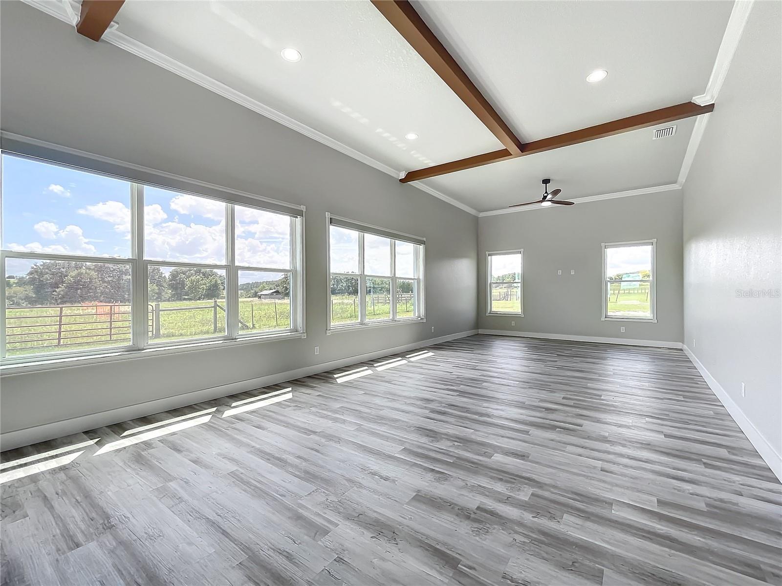 Seller Financing, Call for details!!Enjoy the rolling countryside of Howey-in-the-Hills in this 4/4 brand new construction home on 1 acre of land and the other 1.96 is fenced for animals. The home is situated on a cul-de-sac and an acre of land and features a u shaped driveway with a covered entry. Upon entering the home you will notice the tall ceilings and bright open floorplan. The living and dining room flow into the gorgeous modern kitchen. The kitchen features ample cabinetry, large kitchen island, all new stainless steel appliances, quartz counters, and a large walk in pantry. All four bedrooms have their own private ensuite bathroom and large walk in closets. There are also several storage closets through out the home. On the other end of the home, you will find a large family or entertainment room with a private entrance, so guests can enter directly upon arrival. The family room is also equipped with a large cabinet with ample counter space for use as a mini bar, coffee bar, or snack area and large custom ceiling fans. There is a large laundry room centrally located with cabinets for added storage. Ample parking for toys and vehicles in the large drive through garage. The home is conveniently located about 12 minutes from grocery, restaurants, and gas stations. Near to Leesburg, Florida's Turnpike, and other major roads. Contact Sylvia today to schedule a showing for this amazing home!