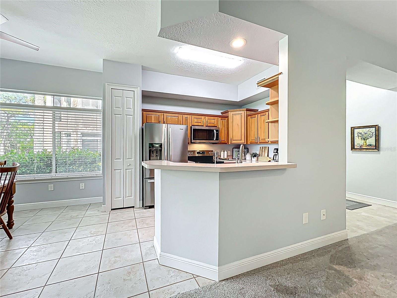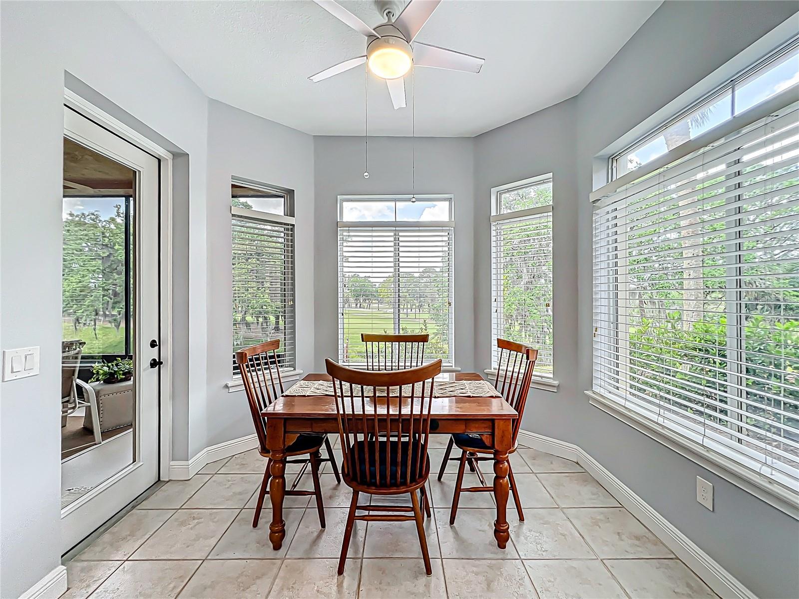 Easy living awaits at Mission Inn in this beautifully maintained first-floor end unit condo, perfectly positioned with stunning views of the 5th green of the world-class El Campeón golf course. Located in the desirable Sonoma community, this home offers a relaxing lifestyle surrounded by lush landscapes and resort-style amenities. Inside, the open layout features recent painting and flooring, updated stainless steel appliances, a breakfast bar, and a charming breakfast nook with bay windows overlooking the course. French doors lead to a large screened lanai, the perfect place to unwind and enjoy the peaceful golf course views. The split floor plan provides privacy for guests, with a full bath and an easy walk-in shower on one side of the home. On the opposite side, the spacious primary suite is a true retreat with massive windows that showcase the greens, his and her walk-in closets, and a luxurious en-suite bath complete with updated dual vanities, a soaking tub, walk-in shower, and private water closet. Additional highlights include a separate laundry room with closet storage, an attached 1-car garage, and an A/C system updated in 2018. The heated community pool is just steps from the front door. Residents of Mission Inn enjoy access to two championship golf courses—El Campeón and Las Colinas—along with four on-site restaurants offering indoor and outdoor dining. Optional memberships are available for tennis, pickleball, skeet shooting, fitness facilities, and more. The Marina Del Rey offers access to the Harris Chain of Lakes, ideal for fishing, destination boating, and waterfront dining. All of this is just minutes from local Howey-in-the-Hills restaurants, shopping, public parks, and the library, with an easy commute to Orlando, major theme parks, airports, and Florida’s beautiful beaches. HOA fees cover so much for so little here, exterior cleaning, interior and exterior pest service, annual termite inspections, maintaining the exterior of the building including the roof! Call today for your private tour!