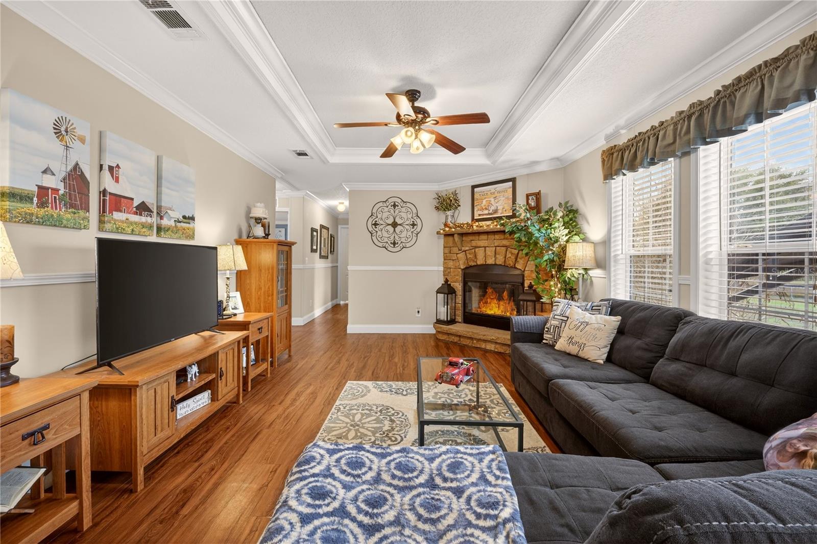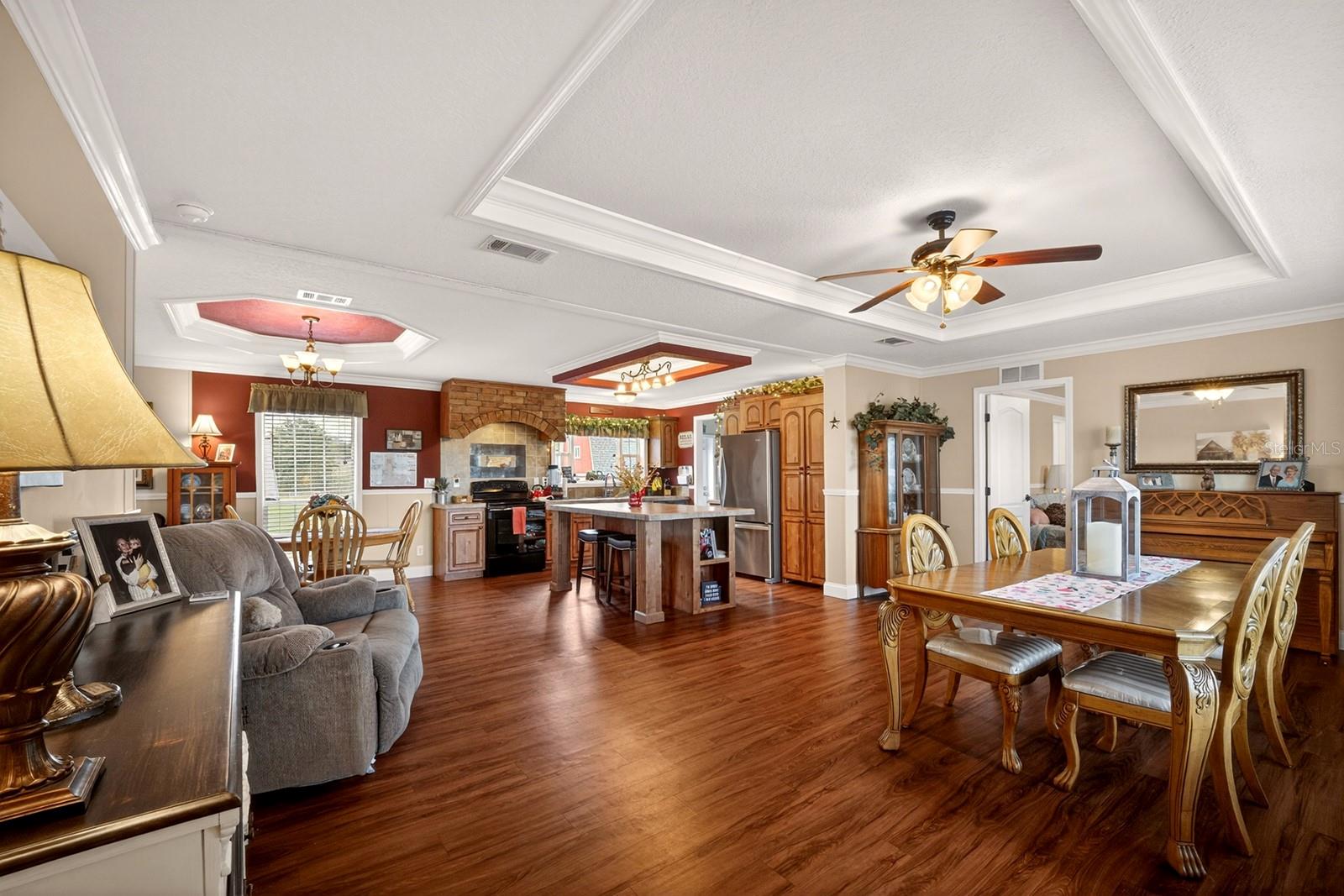 TURNKEY, MOVE-IN READY beautiful home on 2.26 acres of pure beauty! Located minutes from major highways, hospitals, golf courses, trails, lakes, boat ramps, shopping and more. This spacious and comfortable home offers 3 bedrooms plus an office with a walk-in closet that can easily be used as a 4th bedroom, 3 full baths, and over 2,000 sq ft of living space. When you enter, you are welcomed by an ELEGANT OPEN-CONCEPT FLOOR PLAN featuring a beautiful TRAY CEILING that adds architectural charm and a grand feel—perfect for entertaining. The large kitchen offers plenty of cabinets, a walk-in pantry, and a spacious island overlooking the living areas, so you can cook and still be part of the conversation. Enjoy a COZY WOOD-BURNING FIREPLACE during Florida’s cooler nights. The OVERSIZED PRIMARY SUITE provides plenty of room for all your furniture plus a sitting area. The primary bath features double vanities, a large walk-in shower, and a walk-in closet. The secondary bedrooms share a convenient Jack and Jill full bathroom, and the home also includes a third full guest bathroom for added comfort and convenience. Step outside to your private paradise featuring a large firepit over a beautiful, paved patio—perfect for gatherings under the stars—as well as an additional wood deck patio ideal for relaxing or entertaining. The property also includes a 20X15 TWO-STORY BARN ideal for a workshop, storage, hobby space, or whatever you can imagine, plus an additional shed and chicken/duck coop. With a well and filtration and purification system, saying goodbye to expensive water bills. Bring your horses, RV, boats, and all your toys! Centrally located just minutes from Lake Harris, downtown Clermont, downtown Tavares, Mission Inn Resort & Club, and JB Boondock's Bar & Grill located on Little Lake Harris. This property truly has it all. Schedule your private showing today before it’s gone!