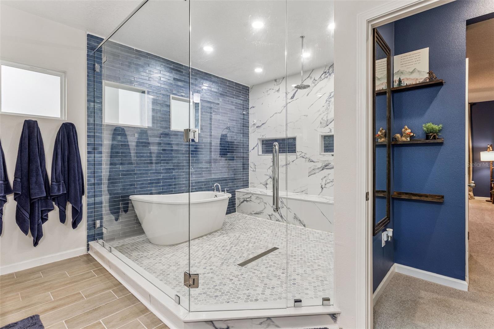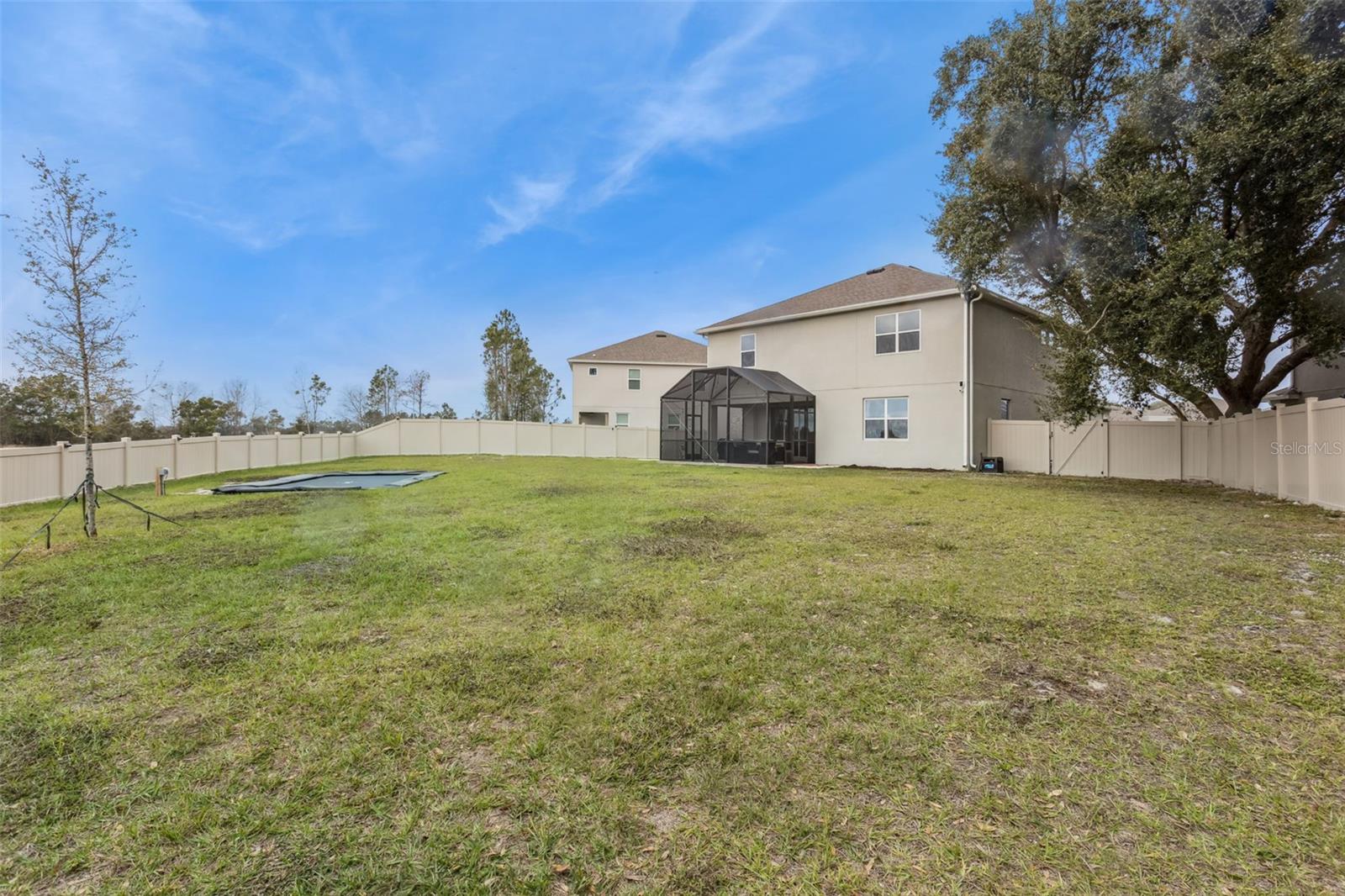 Welcome to this beautifully appointed 4-bedroom, 3-bathroom home designed for comfort, flexibility, and modern living. The layout includes a convenient downstairs bedroom and full bathroom, ideal for guests or multigenerational living. Upstairs, a large loft space provides endless possibilities for a home office, media room, or additional living area with a dry bar and beverage refrigerator. Every bedroom features a large walk-in closet and upgraded showers in their nearby or adjoining bathrooms. The primary bedroom is its own private retreat featuring two oversized walk-in closets and two additional linen closets for exceptional storage. The en-suite bathroom offers a dual-sink vanity, a luxurious shower room with beautifully upgraded tile, a built-in sitting bench, and custom shelving, along with a relaxing soaking tub which creates a spa-like space designed for comfort and style. The thoughtfully designed kitchen is perfect for both everyday living and entertaining, offering extended cabinetry into the dining area, an oversized island, and a large walk-in pantry. Large 3-panel sliding glass doors tuck into a pocket to create a seamless and open space from the living room to the fully screened and extended lanai, making indoor-outdoor living easy and convenient. Step outside to an oversized, fully fenced backyard, complete with an in-ground trampoline, providing plenty of space for play, relaxation, and gatherings. Ideally situated equidistant from Clermont and Mount Dora, this home also offers convenient access to jobs, shopping, restaurants, and more! Both North and South Florida Turnpike on-ramps are located just a few miles away, making commuting a breeze. The town of Howey-in-the-Hills features local amenities including a private boat ramp and community docks, walking trail, basketball courts, playgrounds, library, post office, police station, restaurants, future pickleball courts and unique small businesses. While all amenities are walking distance from home, golf carts are allowed and encouraged. Schedule a showing to see the beautiful upgrades and explore the charming town of Howey!