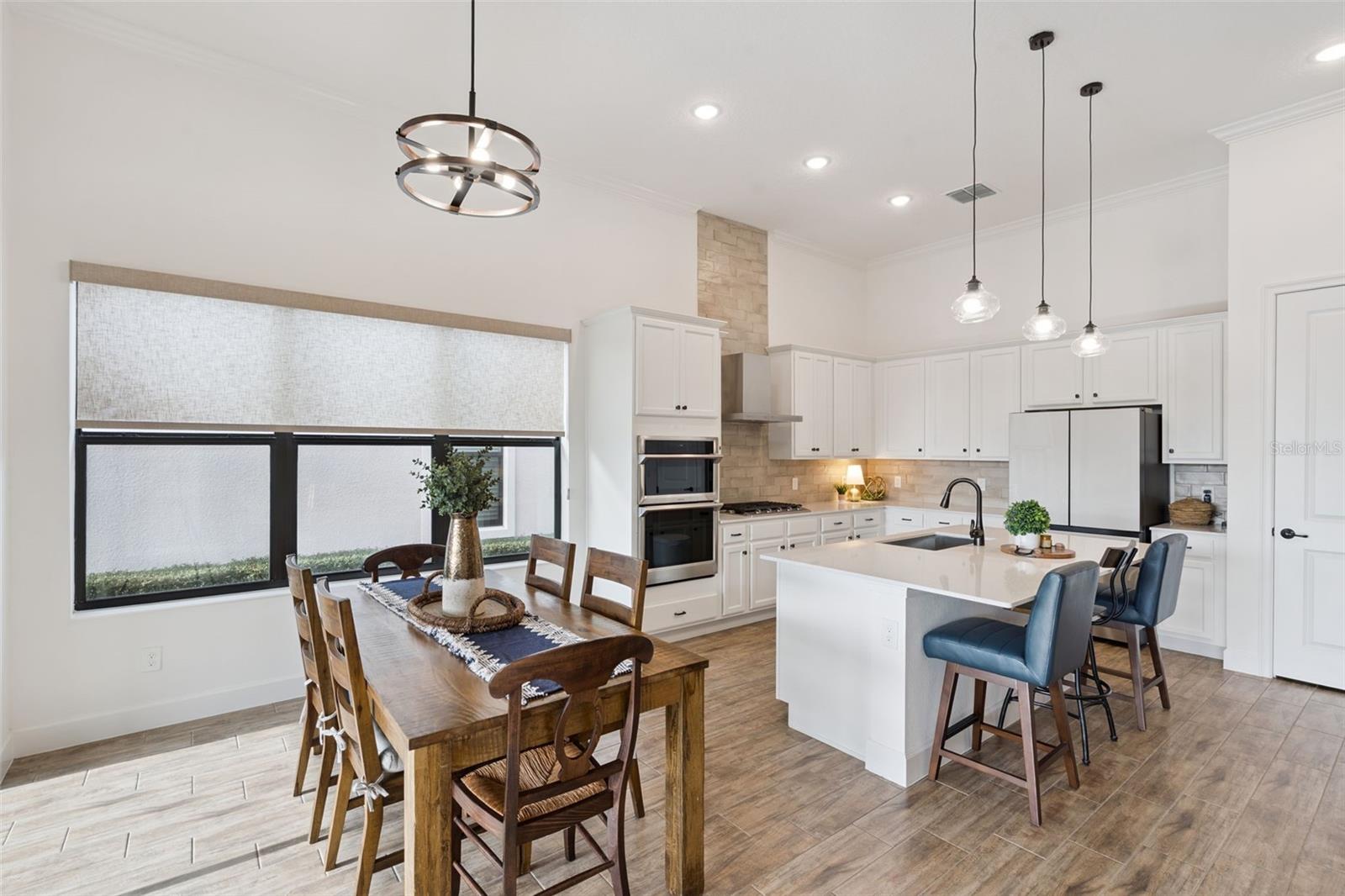Welcome to 9236 San Jose Boulevard, a like-new home built in 2023 that perfectly blends luxury and functionality. This inviting residence features 3 bedrooms, 2 bathrooms, and 2,145 sq. ft. of living space in the desirable Las Colinas community at Mission Inn Resort. Step inside to discover an open floor plan elevated by soaring 12-foot ceilings and durable wood plank style tiling running throughout. Elegant crown molding accents the main living areas including the entryway, kitchen, and family room while custom roll-up shades on every window add a polished touch of privacy. The oversized 2-car garage, which comes finished with durable epoxy flooring and a dedicated 240V EV outlet also features ample storage. Outside, the covered and screened-in lanai provides a comfortable retreat overlooking a scenic naturescape, perfect for everyday comfort and entertaining alike. Enjoy Florida living in a peaceful setting with close proximity to world-class resort amenities. Mission Inn residents have access to an exceptional lifestyle, including two championship golf courses (El Campeón and Las Colinas), a resort-style pool, tennis, a fitness center, spa services, and multiple on-site dining options. Waterfront recreation is also nearby at the Mission Inn Marina on the Harris Chain of Lakes. Ideally located near shopping, dining, and the charming towns of Mount Dora, Tavares, and Clermont, this home offers the perfect balance of privacy and resort-style living. Please note that the HOA includes landscaping in the monthly fee. Membership to Mission Inn is required, with both Social and Golf options available.