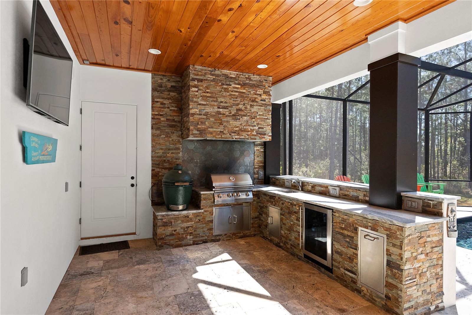 If you’ve been waiting for something truly different — this is it. Located in Blue Spring Reserve in Howey in the Hills, this fully custom, tech-forward residence offers 3,711 heated square feet on a private 2-acre homesite in Lake County. This 4-bedroom home, three of which are private master suites, features 3 full baths and 1 half bath and was designed for the buyer who wants every upgrade thoughtfully integrated and absolutely nothing left to do. The multiple suite-style bedrooms provide exceptional flexibility for multi-generational living, extended guests, or added privacy. In addition, the home includes a dedicated private office and a full-scale theater room, creating spaces that support both productivity and elevated entertaining. The open-concept floor plan offers expansive living and dining areas that flow seamlessly into the chef’s kitchen, complete with a full appliance package, abundant cabinetry, and a stunning double island designed for both functionality and gathering. Custom finishes — including a statement copper kitchen sink — reflect timeless design and quality craftsmanship throughout. Step outside to your own private resort experience, where a custom-designed pool and spa are framed by expansive screened and covered lanai spaces. Designed for seamless indoor-outdoor living, this exceptional retreat features two dedicated TV viewing areas — perfect for game day gatherings or sunset movies by the pool — along with a statement fireplace, a fully equipped outdoor kitchen, and integrated audio throughout. The oversized 4-car garage (44x23.5) provides ample space for vehicles, storage, or hobby needs. A custom home that stands apart in both design and execution. Schedule your private showing today.