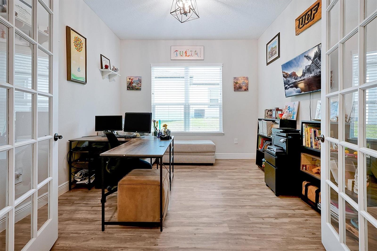 Spacious 4-Bedroom Home with 3-Car Garage and Gourmet Kitchen. This 4-bedroom, 3-bath home offers an open floor plan with luxury vinyl plank flooring throughout the main living areas. The gourmet kitchen features abundant cabinet and countertop space, perfect for cooking and entertaining. Enjoy a large fenced yard, paver driveway, and three-car garage for plenty of parking and storage. A dedicated office provides the ideal spot for working from home, crafting, or a playroom. Each bedroom is generously sized, offering comfort and privacy, with ample storage throughout the home. This property combines comfort, function, and style—and it’s priced to sell with No Rear Neighbors. Don’t miss your chance to make it yours!