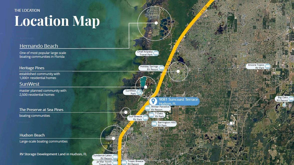 Pre-Construction. To be built. This is for the sale of both lots 13-24-16-0070-00000-0010 and 13-24-16-0030-00200-0050, for a total of 4.19 acres. Both will need to be unified prior to development. Invest in this opportunity to develop a state-of-the-art RV & Boat storage facility in Hudson, Florida, strategically located next to the rapidly growing SunWest master-planned community. With thousands of new homes being developed, this area is poised for significant growth, creating a high demand for RV / boat storage solutions. The site is adjacent to numerous RV Parks and boating communities in the area. The subject property is located 30 miles North of Tampa. This opportunity not only promises a steady revenue stream but also positions you at the forefront of a booming market. Don't miss out on the chance to capitalize on the growth of Hudson and the SunWest community. The County has already approved the site for 93 spaces, the approval is attached to this listing and can be emailed upon request.
