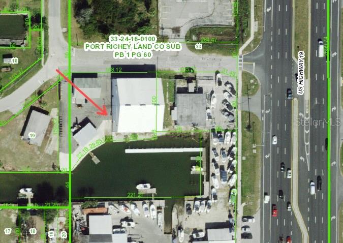 Marina/warehouse building 6750' for boat storage, 2 additional buildings 600' and 1200', all chain link fenced with two rolling gates, boat ramp and dock on the canal. Some water intrusion from Hurricane Helene, but little damage. Zoned C2 and AE flood zone. Just 1 mile to Hudson Beach. Great for boat storage. Possible seller terms. Additional 1.38 acres across the street north is available, fronts us 19, fenced with 36' x 66' pole barn, great for boat, RV, car storage, retail, convenience store $795,000.