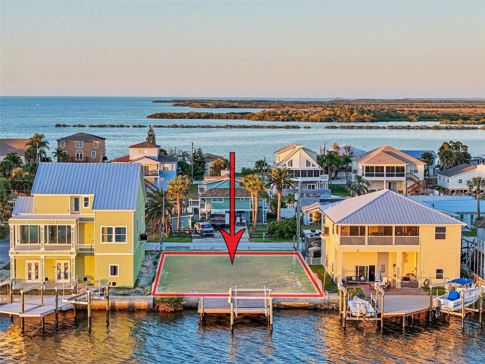This TOTALLY CLEARED FENCED-IN GULF FRONT LOT is located in the desirable DRIFTWOOD ISLES SUBDIVISION. Featuring 60ft of CONCRETE SEAWALL, a 6ft WIDE TOP WALK, a BRAND NEW 20x24 COMPOSITE STATIONARY DOCK with DOCKSIDE LIGHTING and RUNNING WATER. The BRAND NEW 10,000lb BOAT LIFT with REMOTE CONTROL makes it so easy to access your BOAT LIFT after a beautiful day out on the GULF. This is the PERFECT PLACE to build your GULF FRONT DREAM HOME with AMAZING VIEWS right in your own back yard. Catch a bite to eat at one of your preferred restaurants like INN ON THE GULF, SAM'S BEACH BAR or OLLIE’S ON THE BEACH which are all a few minutes away. SUNWEST PARK is a LOCAL ATTRACTION that is nearby as well. The HCA FLORIDA BAYONET POINT HOSPITAL, many local SUPERMARKETS and the PORT HUDSON MARINA are all located right here in HUDSON, Florida. The TAMPA BAY AIRPORT, TAMPA BAY, CLEARWATER BEACH, HOMOSASSA SPRINGS, TARPON SPRINGS, PINE ISLAND, HONEYMOON ISLAND and WEEKI WACHEE are under an hour away. FISH & CRAB right in your own back yard or take a KAYAK, JET SKI or BOAT RIDE (passing dolphins and manatees along the way) out into the OPEN GULF where the FISH ARE PLENTIFUL, the FUN is NEVER ENDING and the SUNSETS are ALWAYS AWESOME! (The owner has a full set of house plans for the property)