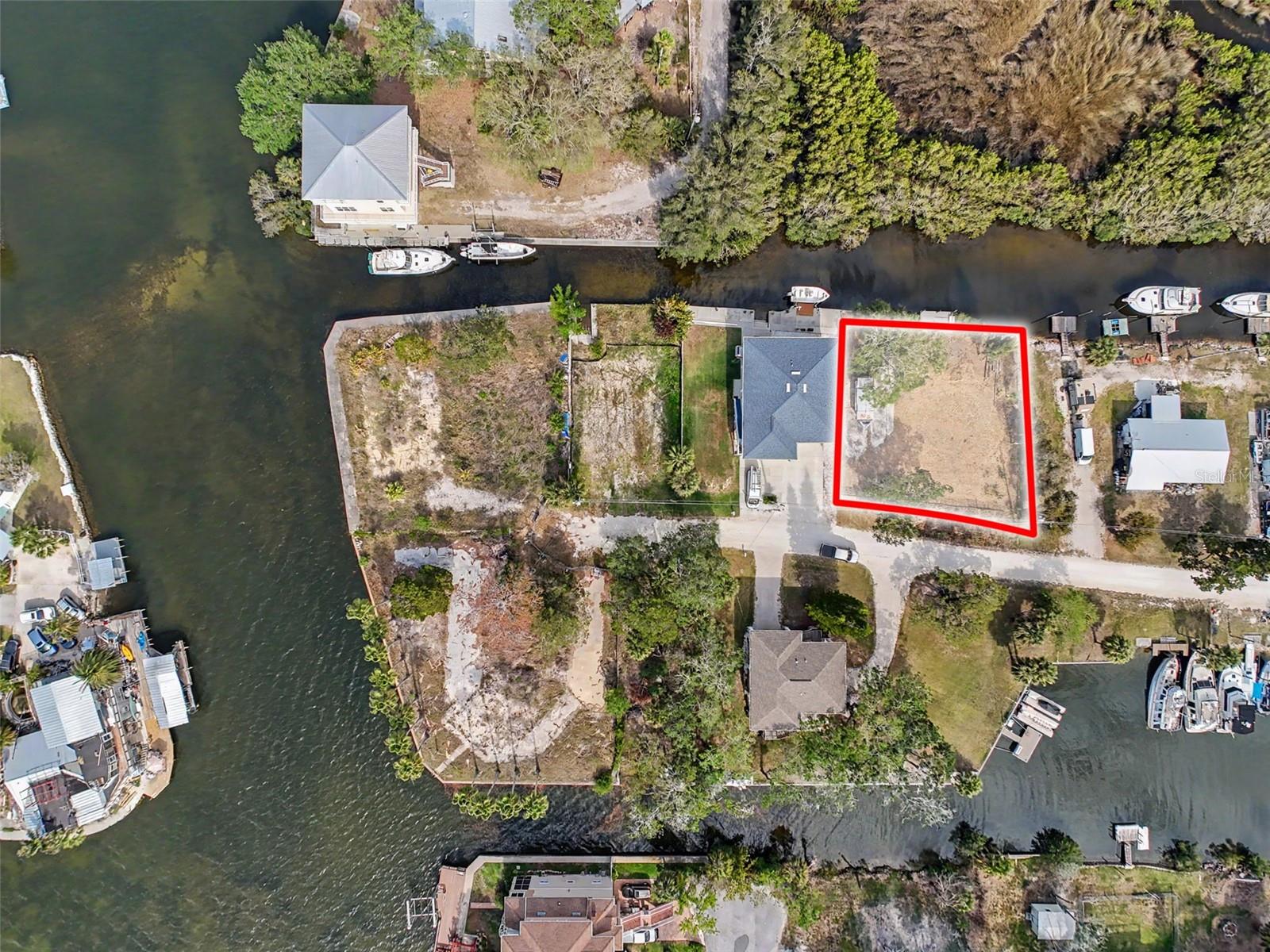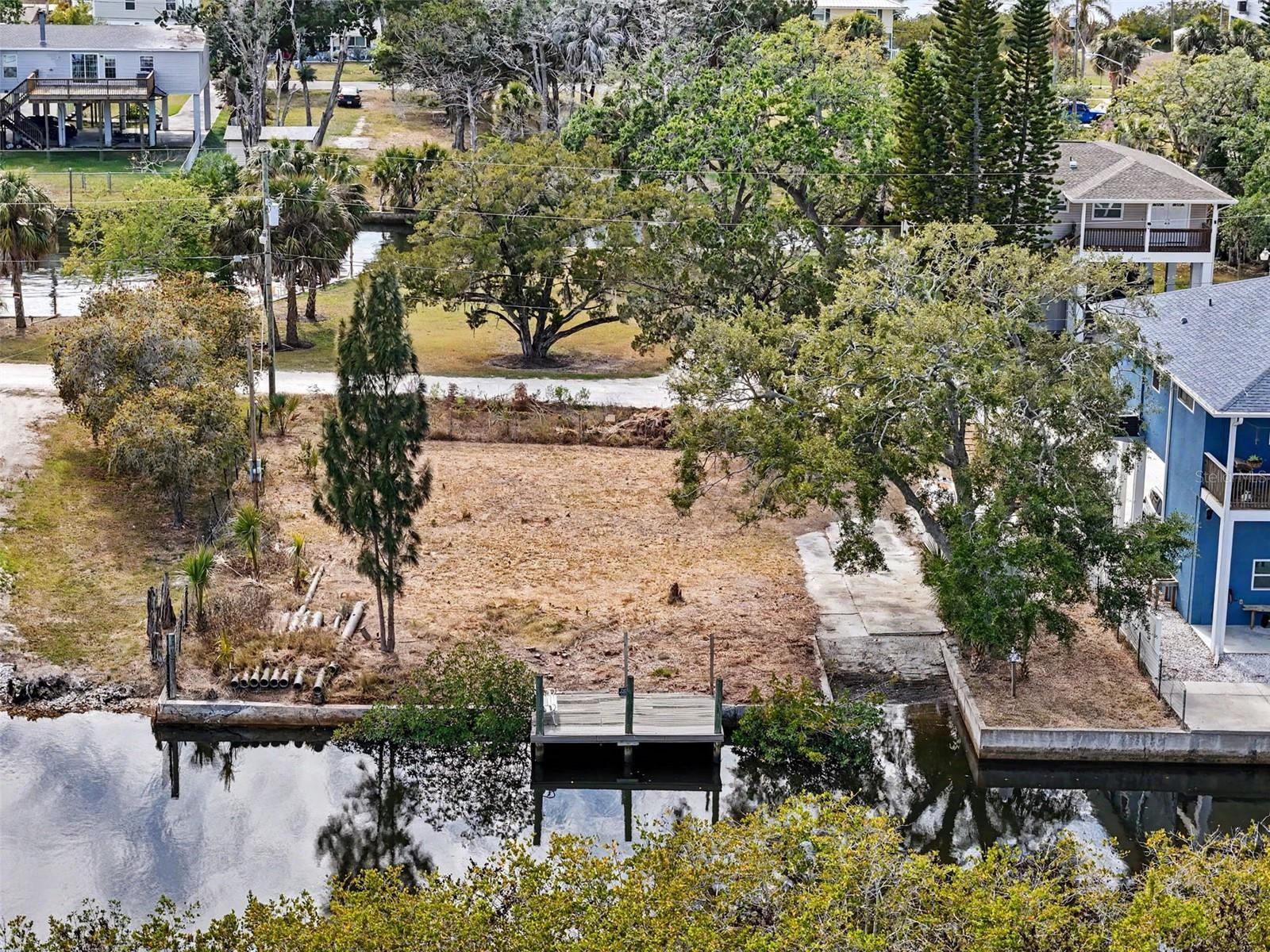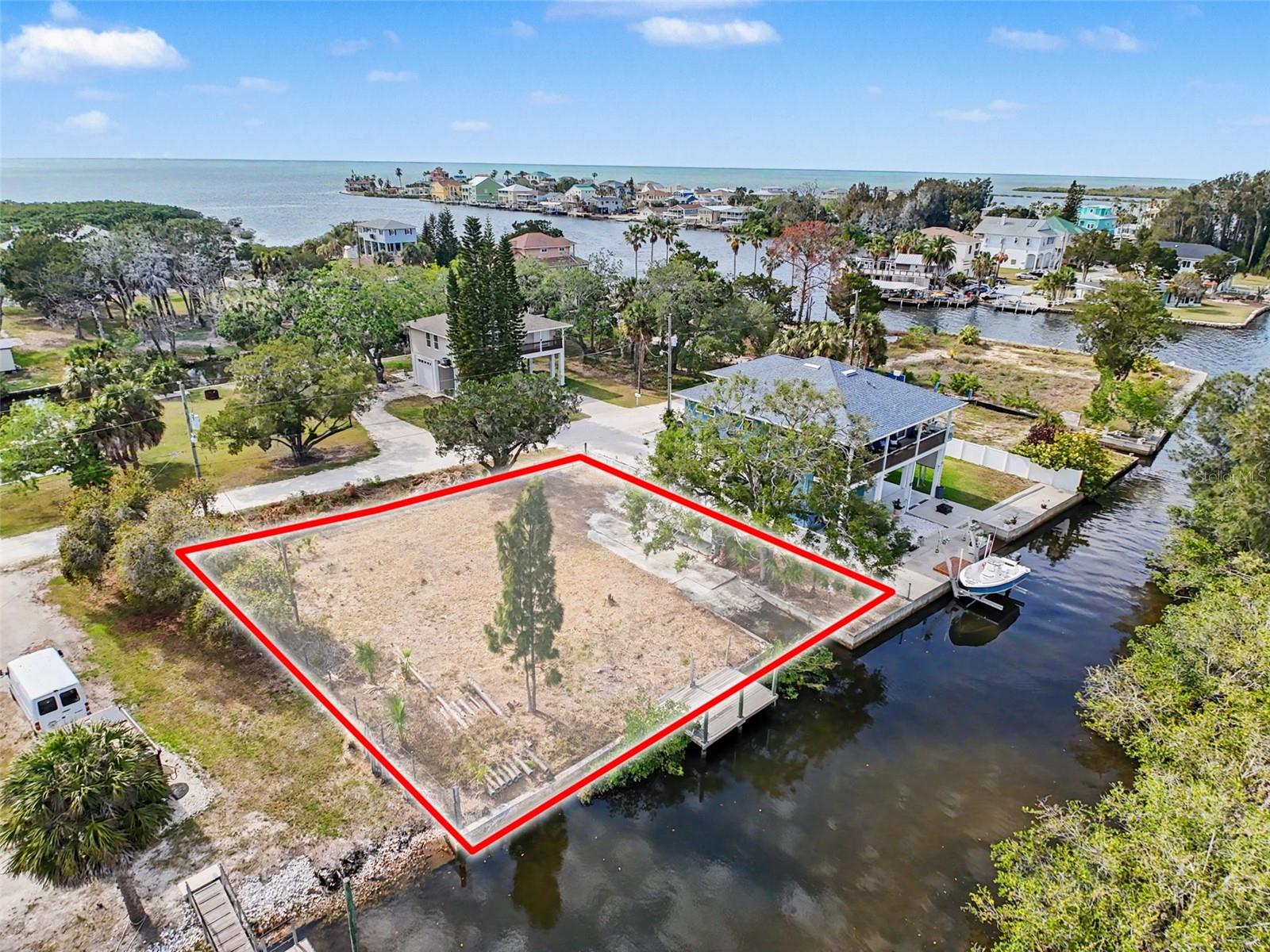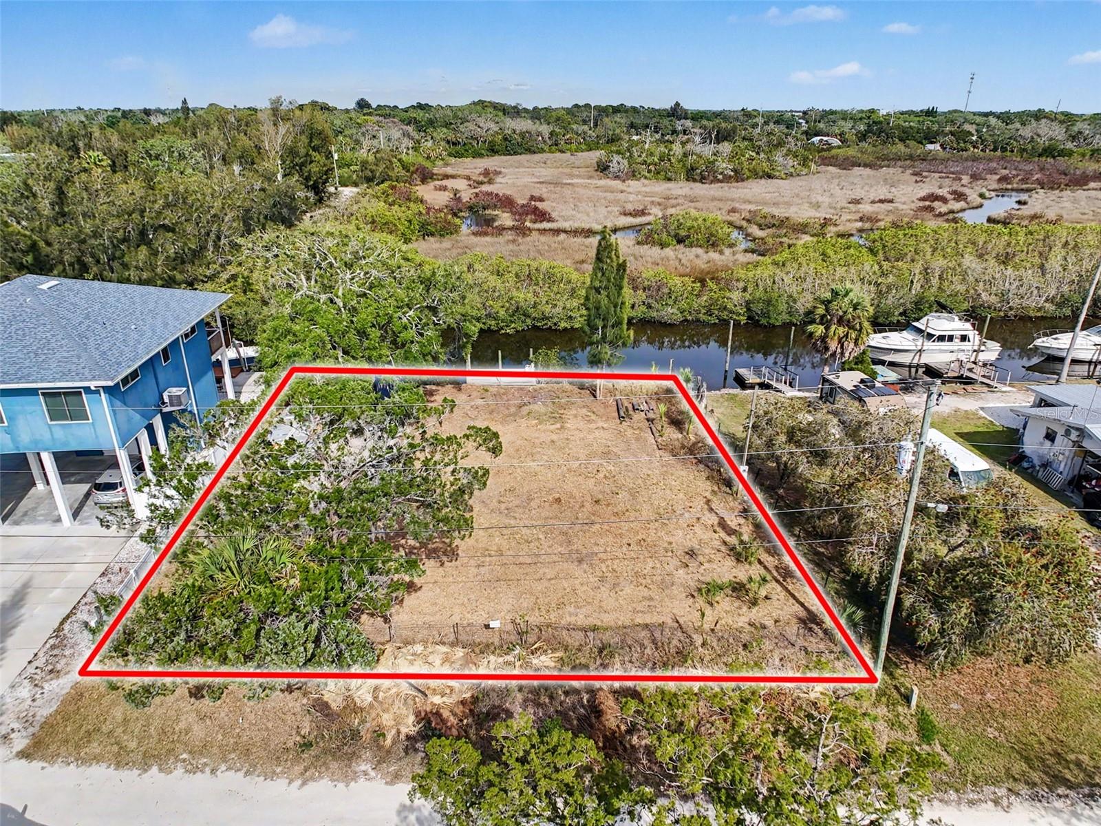One or more photo(s) has been virtually staged. This FENCED-IN WATYERFRONT LOT is located in the PINE ISLAND ESTATES SUBDIVISION featuring a PRIVATE BOAT RAMP, 90 foot of CONCRETE SEAWALL, a 10 x 16ft STATIONARY DOCK, a CONCRETE PARKING PAD and NO REAR NEIGHBORS across the canal. There is ELECTRIC on site (NEEDS METER) and a WATER HOOK up just in front of the fence. The PORT HUDSON MARINA and GET HOOKED RESTAURANT are in walking distance. Other local restaurants like Inn on the Gul and Sam's Beach Bar are a 5-minute drive. Sunwest Park is a local tourist waterfront attraction that is nearby as well. The Bayonet Point Hospital and many local supermarkets are all located right here in Hudson, Florida. The Tampa Bay Airport, Tampa Bay, Clearwater Beach, Homosassa Springs, Tarpon Springs, Pine Island, Honeymoon Island and Weeki Wachee are all under an hour away. Build your DREAM HOME and start enjoying the FLORIDA LIFESTYLE. Fish & crab off your own dock or take a kayak, jet ski or boat ride (passing Manatees and Dolphins along the way) to the GULF OF AMERICA where the fish are plentiful, the fun is never-ending and the sunsets are always awesome!