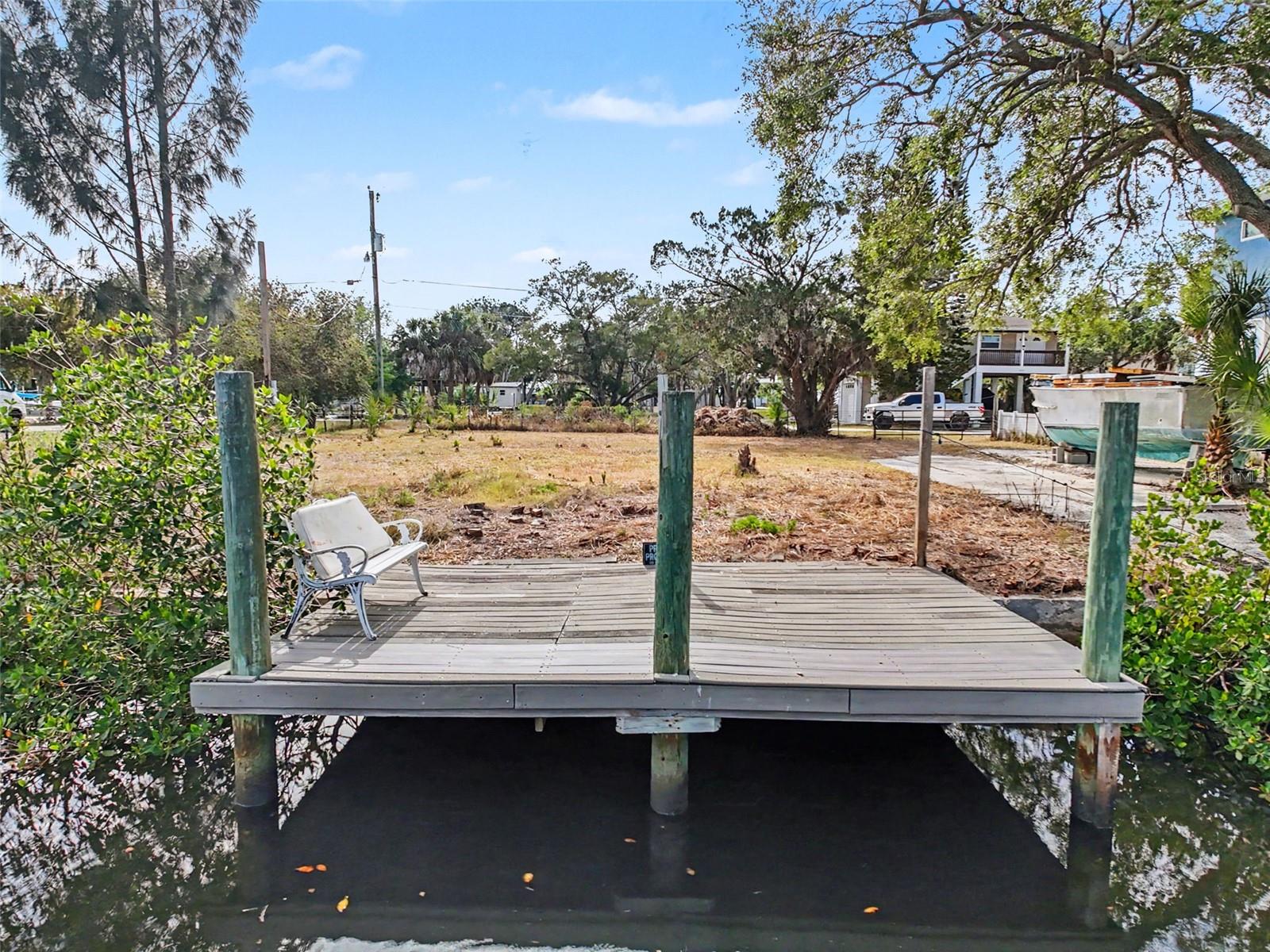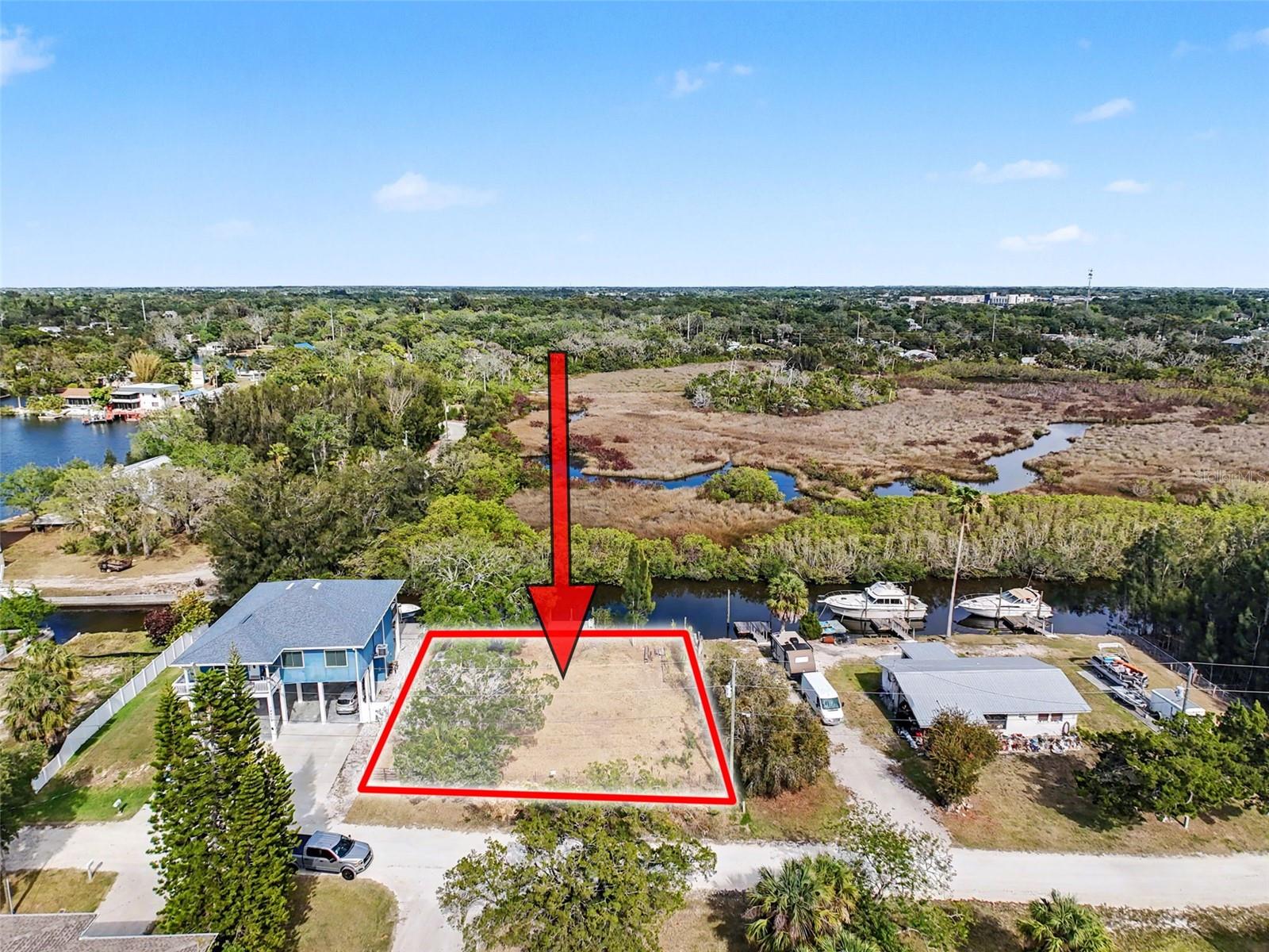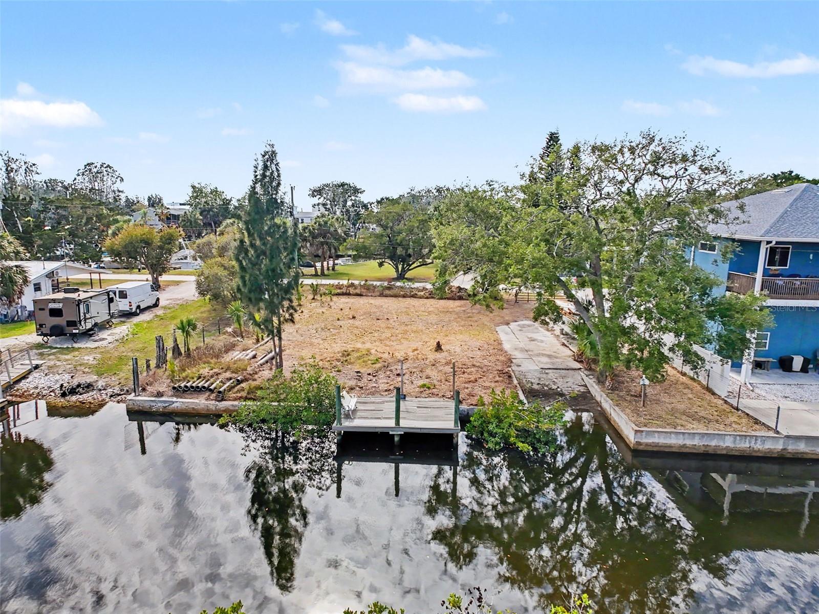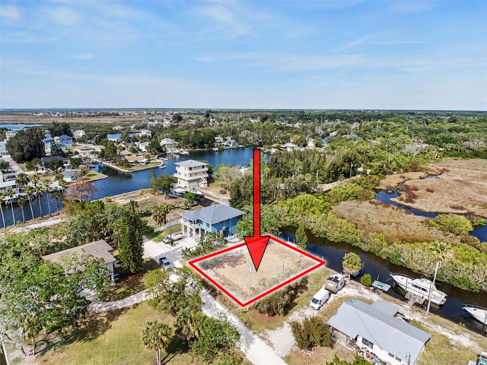 One or more photo(s) has been virtually staged. This FENCED-IN WATYERFRONT LOT is located in the PINE ISLAND ESTATES SUBDIVISION featuring a PRIVATE BOAT RAMP, 90 foot of CONCRETE SEAWALL, a 10 x 16ft STATIONARY DOCK, a CONCRETE PARKING PAD and NO REAR NEIGHBORS across the canal. There is ELECTRIC on site (NEEDS METER) and a WATER HOOK up just in front of the fence. The PORT HUDSON MARINA and GET HOOKED RESTAURANT are in walking distance. Other local restaurants like Inn on the Gul and Sam's Beach Bar are a 5-minute drive. Sunwest Park is a local tourist waterfront attraction that is nearby as well. The Bayonet Point Hospital and many local supermarkets are all located right here in Hudson, Florida. The Tampa Bay Airport, Tampa Bay, Clearwater Beach, Homosassa Springs, Tarpon Springs, Pine Island, Honeymoon Island and Weeki Wachee are all under an hour away. Build your DREAM HOME and start enjoying the FLORIDA LIFESTYLE. Fish & crab off your own dock or take a kayak, jet ski or boat ride (passing Manatees and Dolphins along the way) to the GULF OF AMERICA where the fish are plentiful, the fun is never-ending and the sunsets are always awesome!