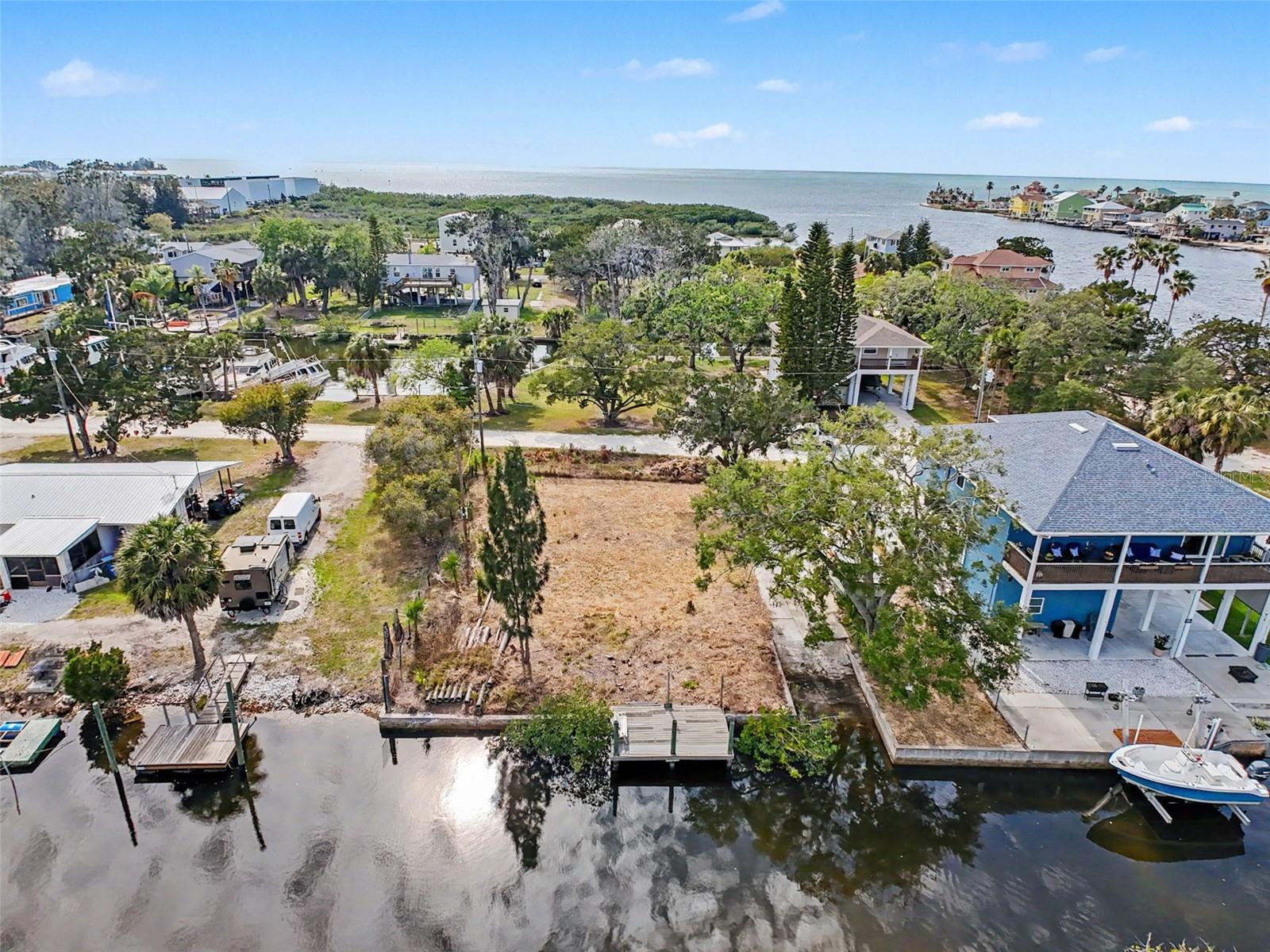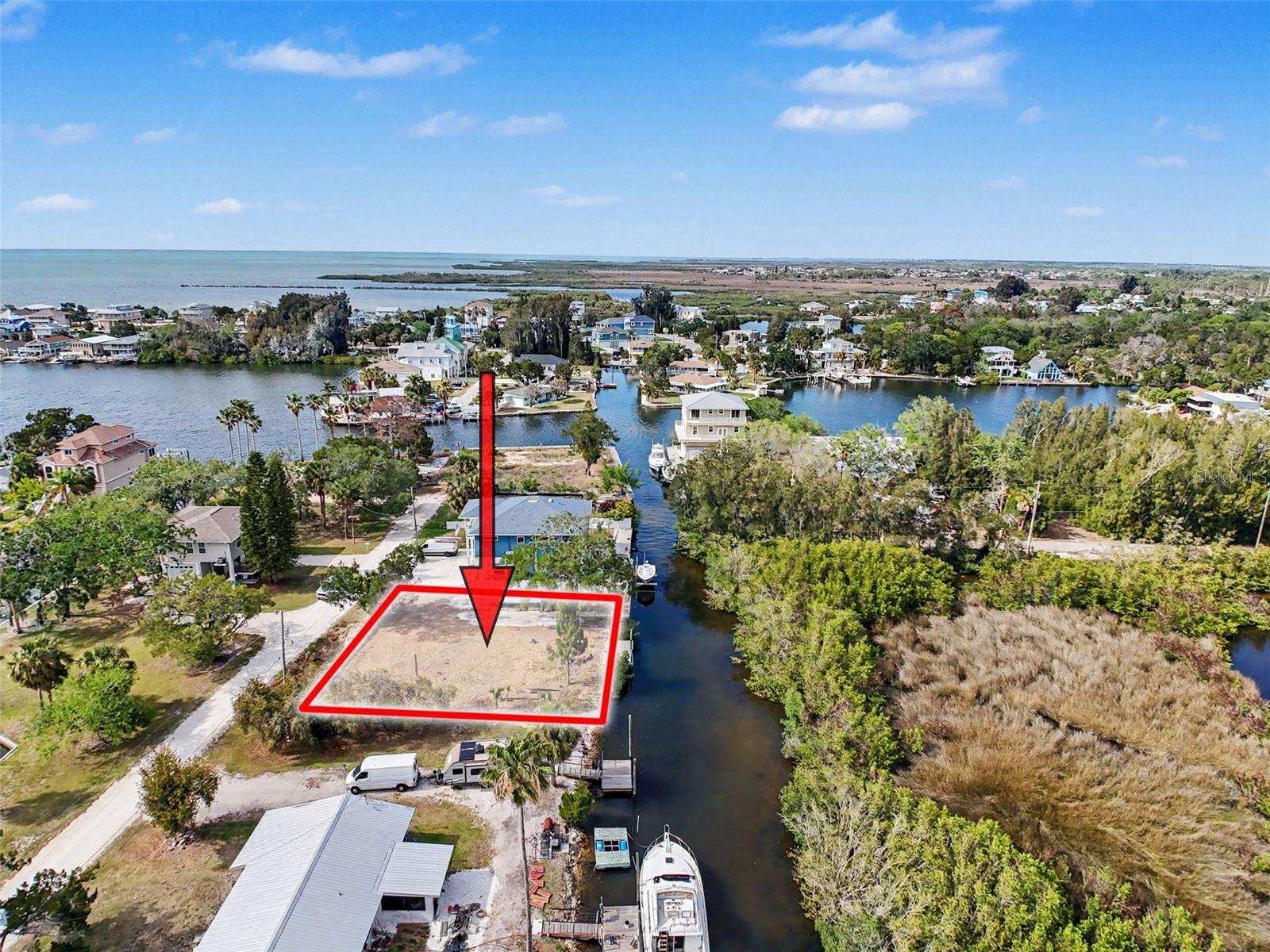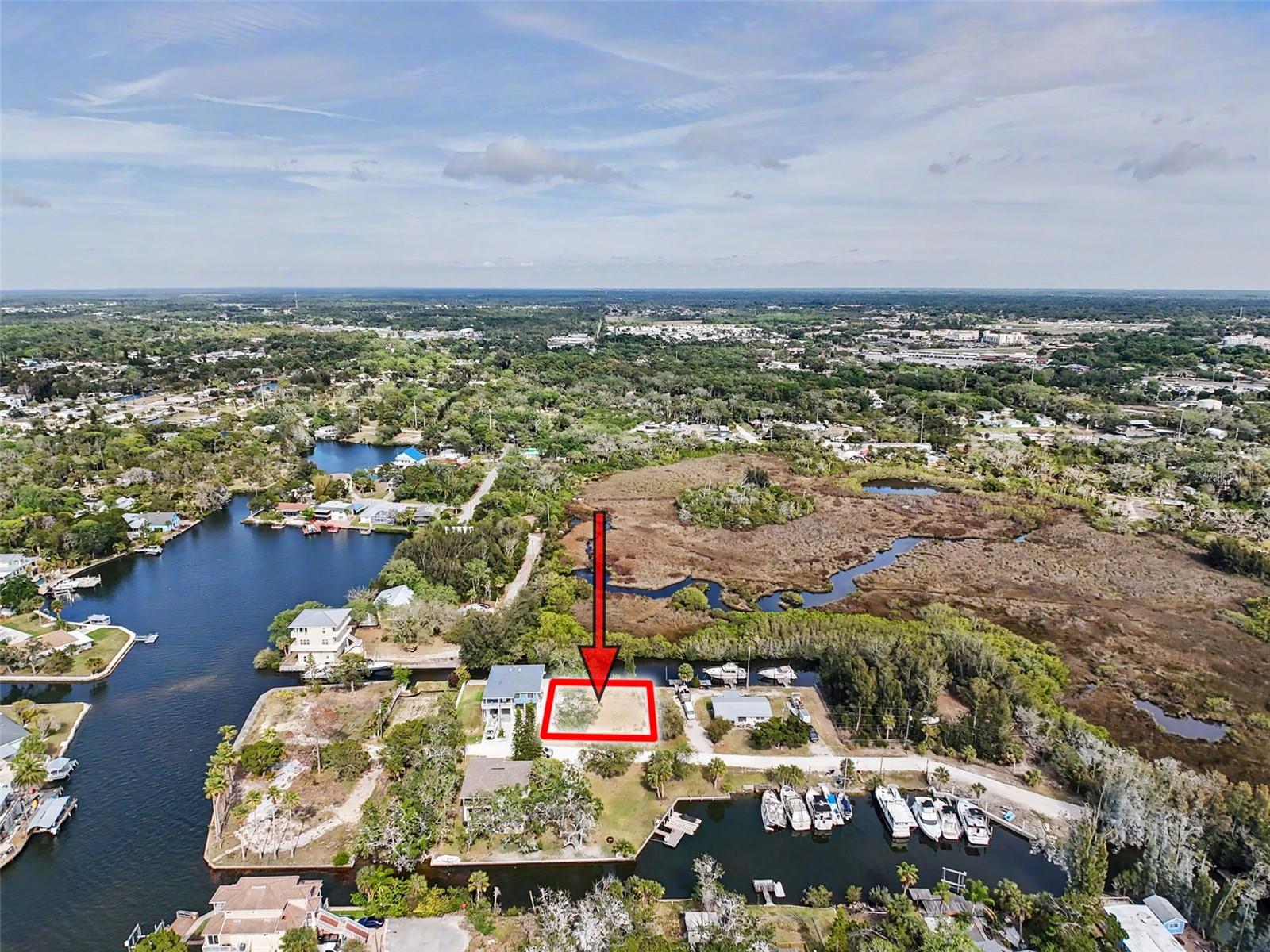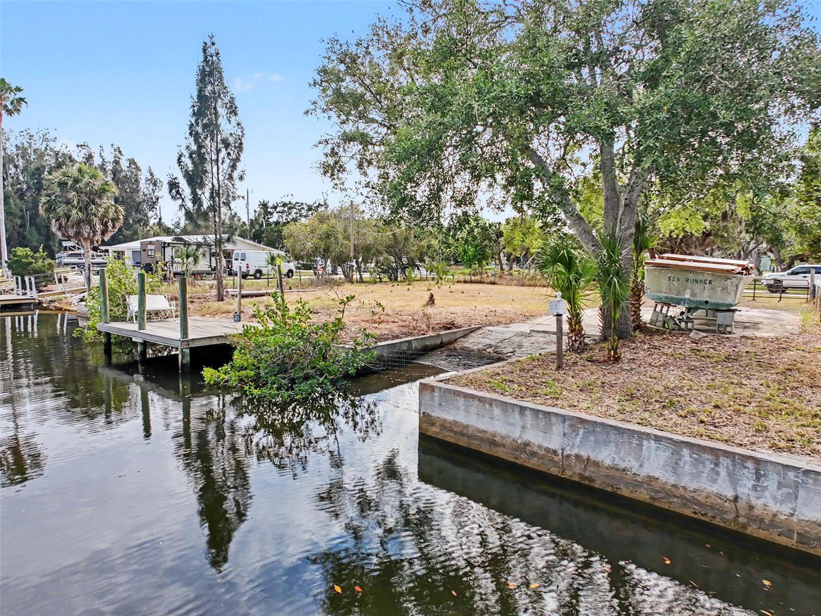 One or more photo(s) has been virtually staged. This FENCED-IN WATYERFRONT LOT is located in the PINE ISLAND ESTATES SUBDIVISION featuring a PRIVATE BOAT RAMP, 90 foot of CONCRETE SEAWALL, a 10 x 16ft STATIONARY DOCK, a CONCRETE PARKING PAD and NO REAR NEIGHBORS across the canal. There is ELECTRIC on site (NEEDS METER) and a WATER HOOK up just in front of the fence. The PORT HUDSON MARINA and GET HOOKED RESTAURANT are in walking distance. Other local restaurants like Inn on the Gul and Sam's Beach Bar are a 5-minute drive. Sunwest Park is a local tourist waterfront attraction that is nearby as well. The Bayonet Point Hospital and many local supermarkets are all located right here in Hudson, Florida. The Tampa Bay Airport, Tampa Bay, Clearwater Beach, Homosassa Springs, Tarpon Springs, Pine Island, Honeymoon Island and Weeki Wachee are all under an hour away. Build your DREAM HOME and start enjoying the FLORIDA LIFESTYLE. Fish & crab off your own dock or take a kayak, jet ski or boat ride (passing Manatees and Dolphins along the way) to the GULF OF AMERICA where the fish are plentiful, the fun is never-ending and the sunsets are always awesome!