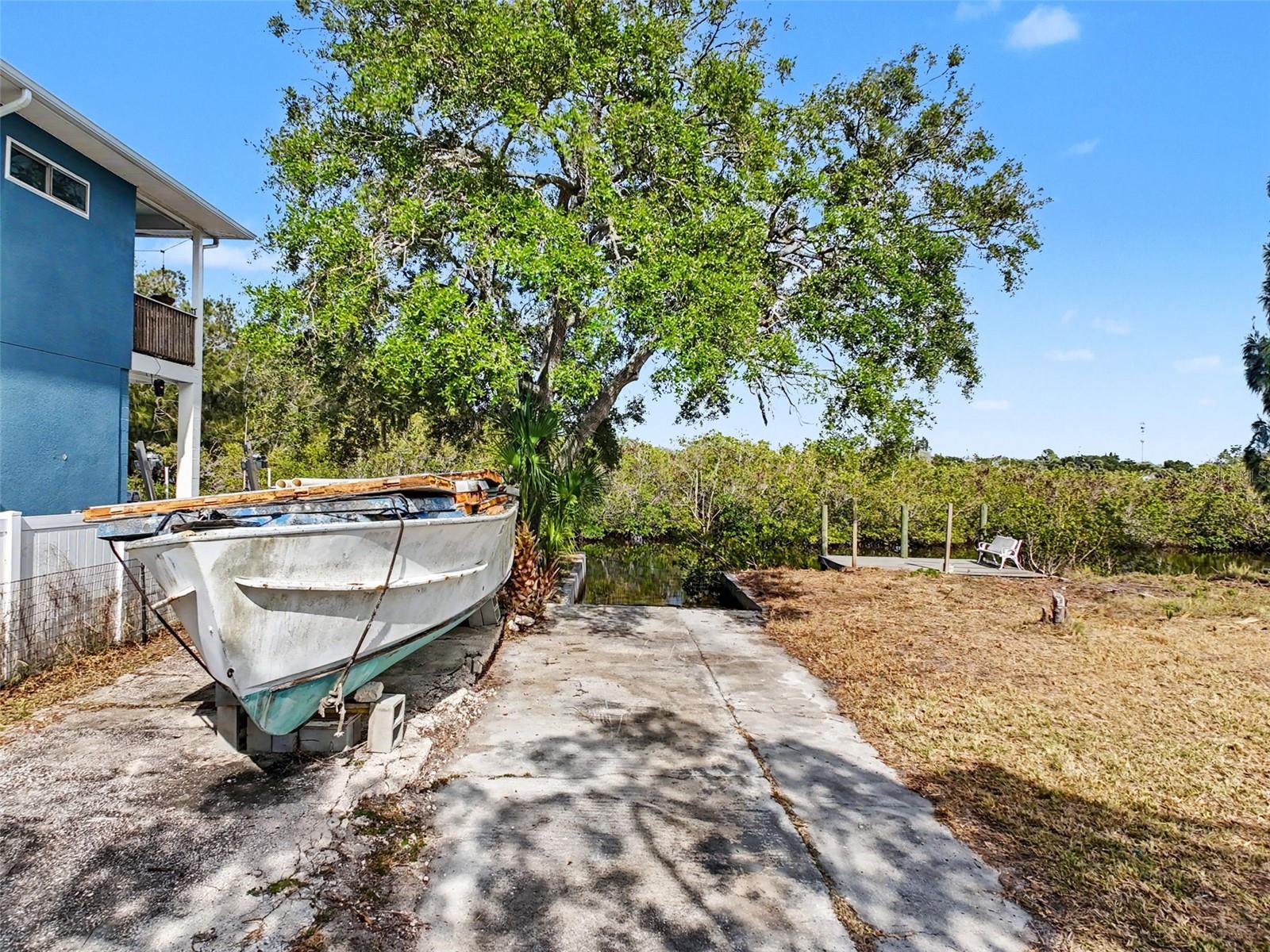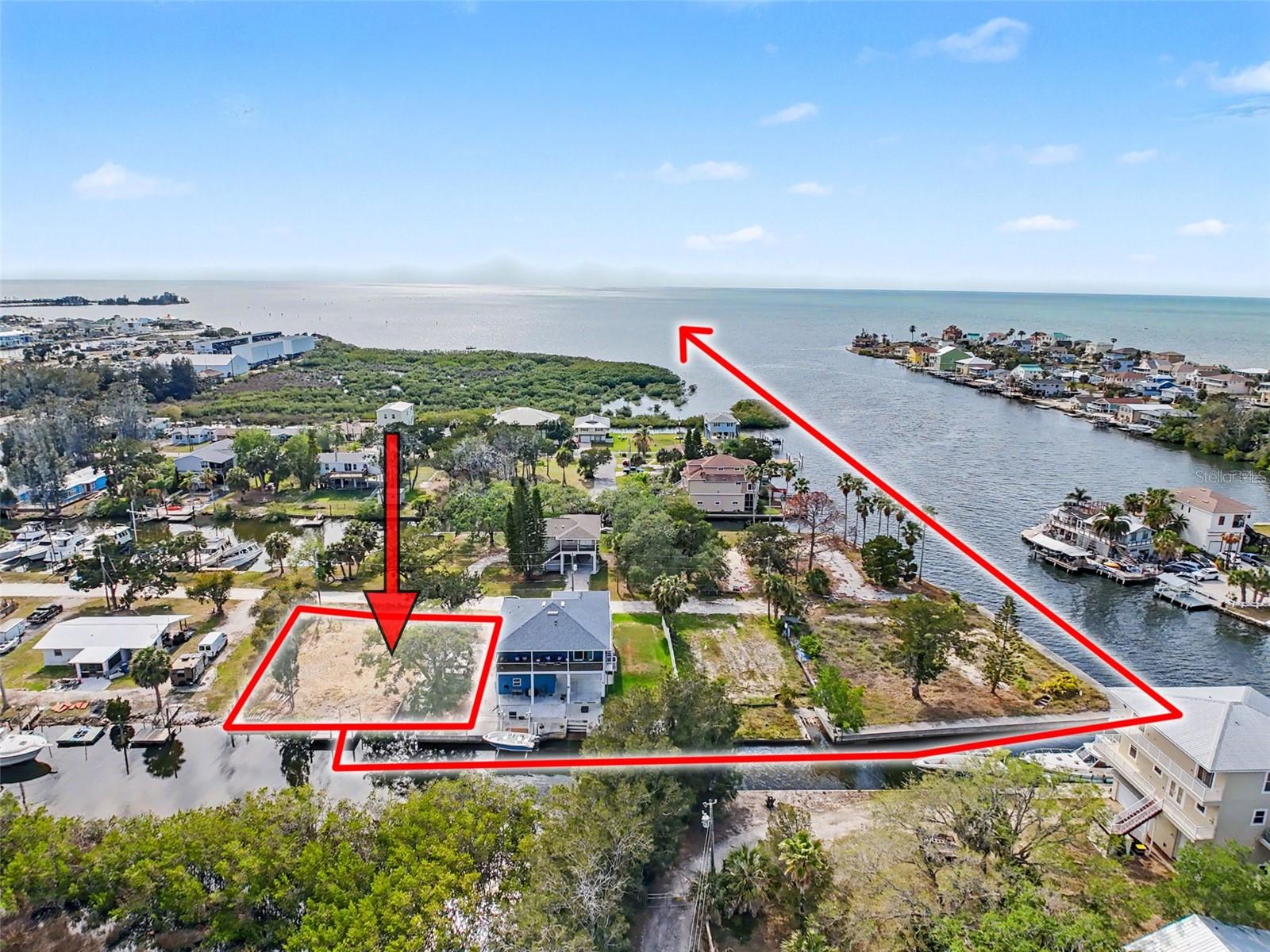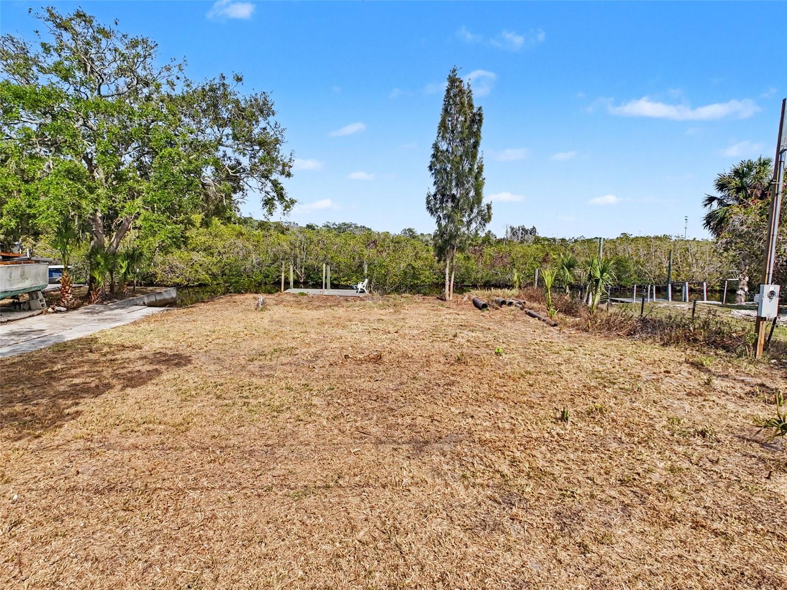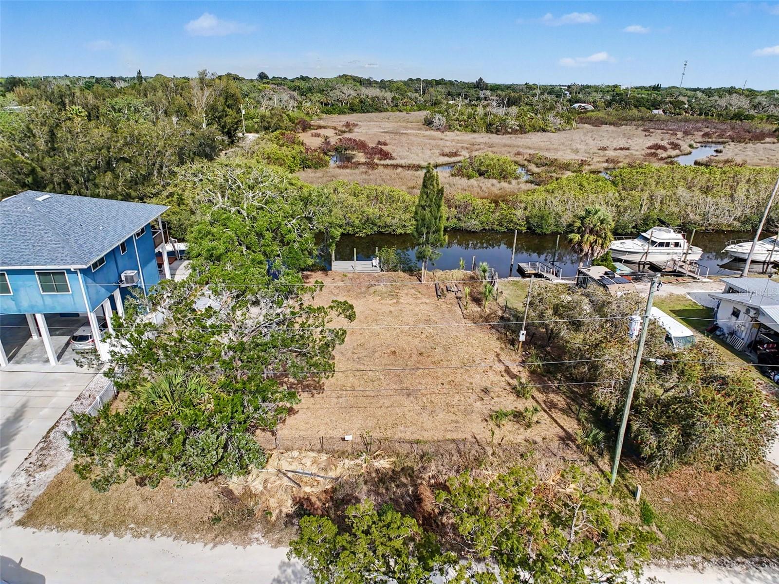 One or more photo(s) has been virtually staged. This FENCED-IN WATYERFRONT LOT is located in the PINE ISLAND ESTATES SUBDIVISION featuring a PRIVATE BOAT RAMP, 90 foot of CONCRETE SEAWALL, a 10 x 16ft STATIONARY DOCK, a CONCRETE PARKING PAD and NO REAR NEIGHBORS across the canal. There is ELECTRIC on site (NEEDS METER) and a WATER HOOK up just in front of the fence. The PORT HUDSON MARINA and GET HOOKED RESTAURANT are in walking distance. Other local restaurants like Inn on the Gul and Sam's Beach Bar are a 5-minute drive. Sunwest Park is a local tourist waterfront attraction that is nearby as well. The Bayonet Point Hospital and many local supermarkets are all located right here in Hudson, Florida. The Tampa Bay Airport, Tampa Bay, Clearwater Beach, Homosassa Springs, Tarpon Springs, Pine Island, Honeymoon Island and Weeki Wachee are all under an hour away. Build your DREAM HOME and start enjoying the FLORIDA LIFESTYLE. Fish & crab off your own dock or take a kayak, jet ski or boat ride (passing Manatees and Dolphins along the way) to the GULF OF AMERICA where the fish are plentiful, the fun is never-ending and the sunsets are always awesome!