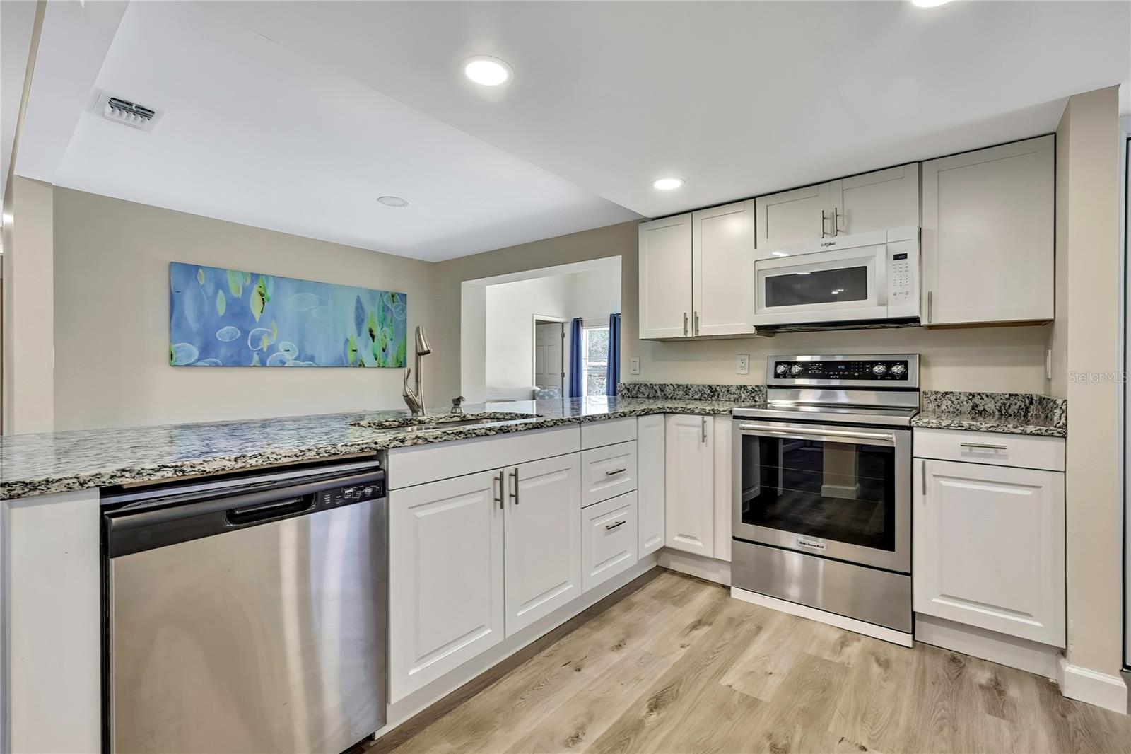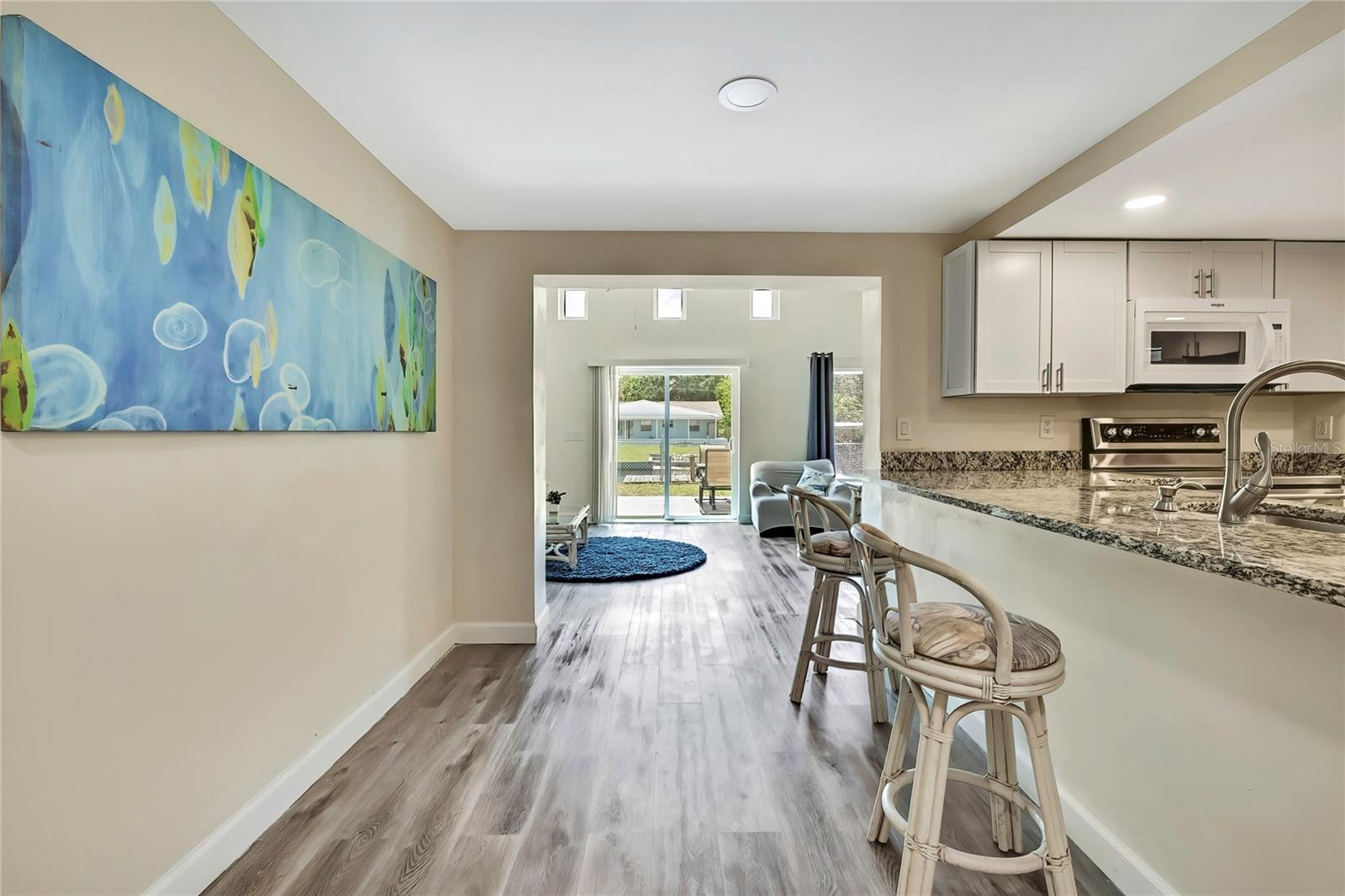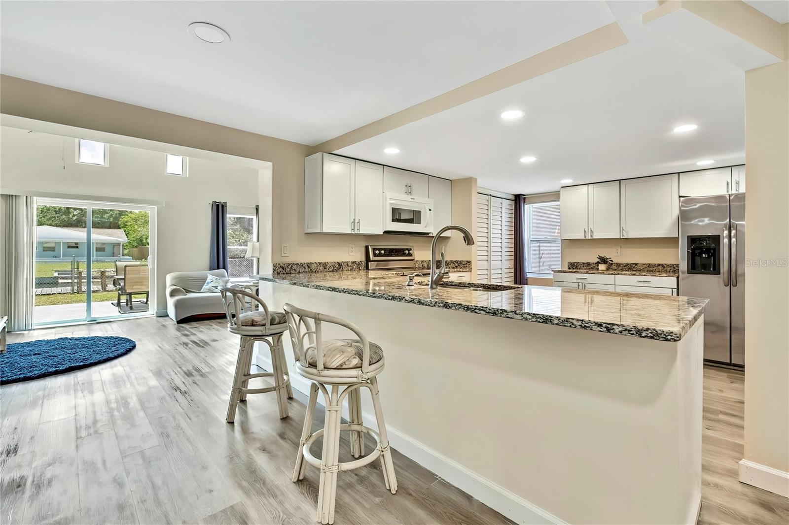 Larger 1600 s.f home ,open bright and airy 3 bedroom 2 bath home situated on a canal that leads into the Gulf. Huge kitchen featuring granite counter tops, stainless steel appliances, new cabinets and a pantry with washer and dryer inside , laminate flooring through out. Nice size fenced in back yard with a gate to store your toys , a shed and let you pets run free. Sit on the dock and enjoy the beautiful sunshine while fishing or watching the fish, manatees and an occasional dolphin.