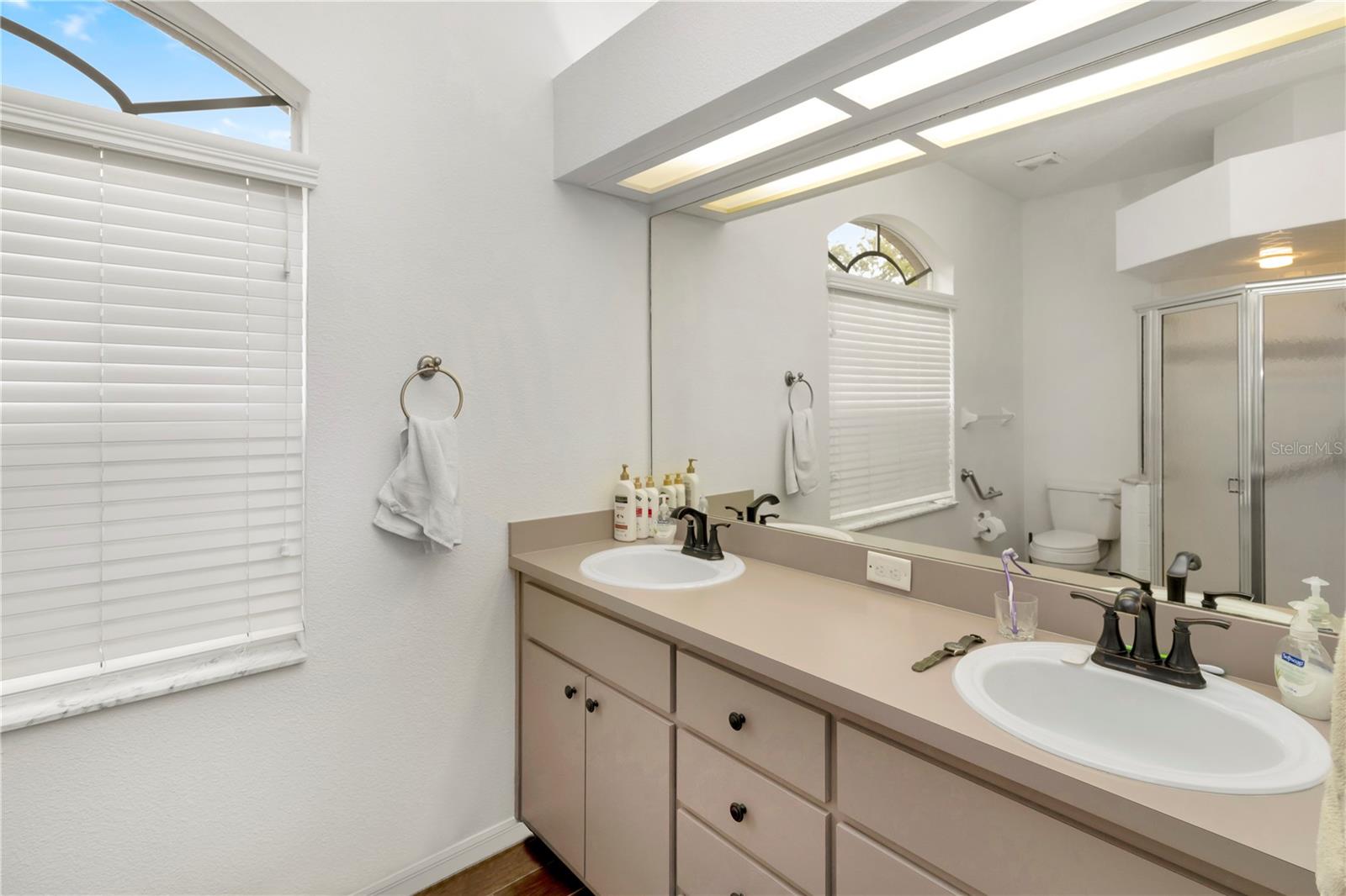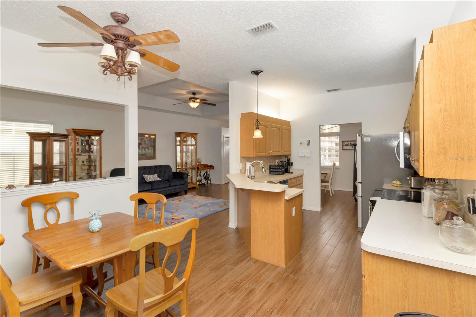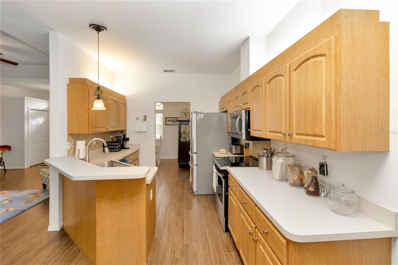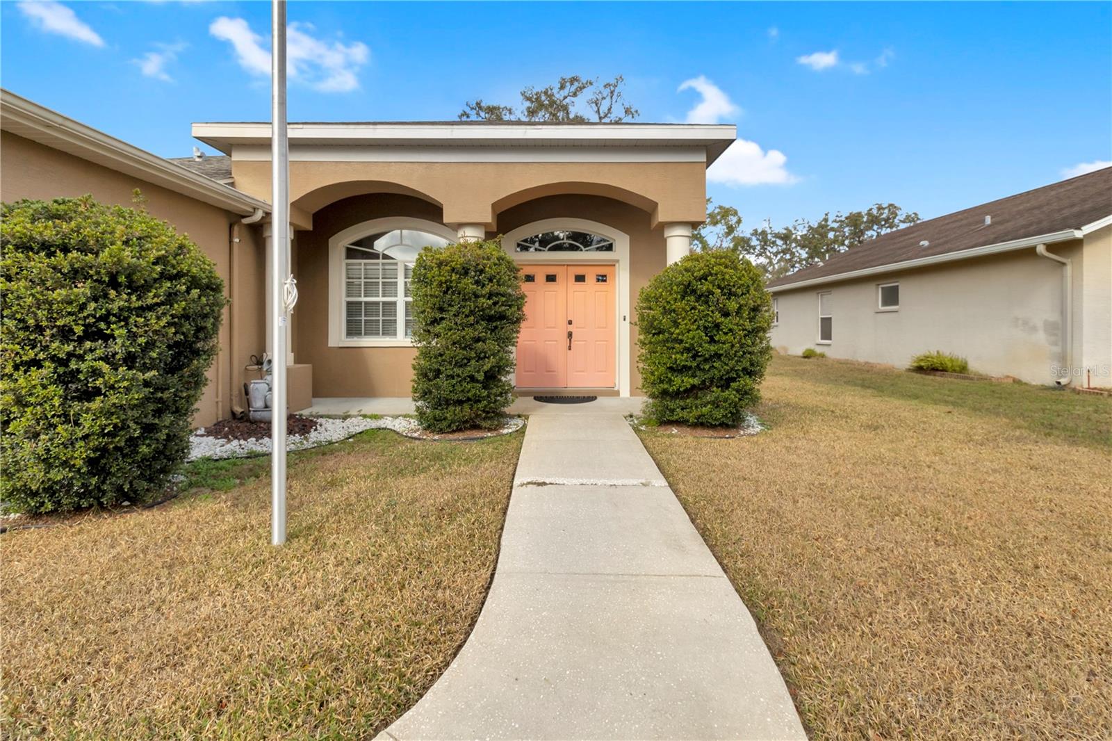 You'll LOVE this charming 3 bedroom, 2 bathroom home on Titleist Drive in Hudson! The split floor plan features spacious living areas and walkways with a ton of natural light. You'll notice durable tile flooring throughout this home, ceiling fans, and quaint details like arched ceilings and dual closets in the primary bedroom. Double sinks and a corner shower in the primary bathroom make the space both contemporary and convenient. The kitchen cabinetry provides lots of storage space, and the attached breakfast nook makes it a lovely place to entertain. Love the furniture in the photos? Seller is willing to negotiate any piece you can't live without! This property is idyllic and intuitive inside AND outside, with a large 15x25 screened patio and gutters fitted with leaf guard. Plus, this home is located in a neighborhood with low HOA fees only 20 minutes from the beach. Don't miss it! Schedule your showing today!