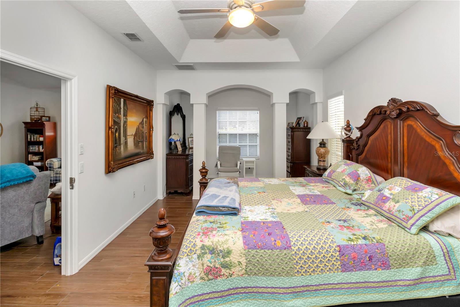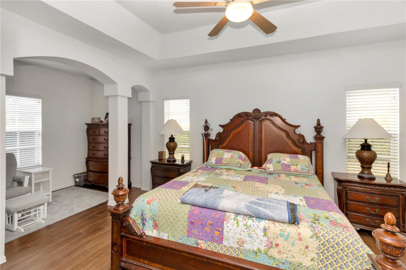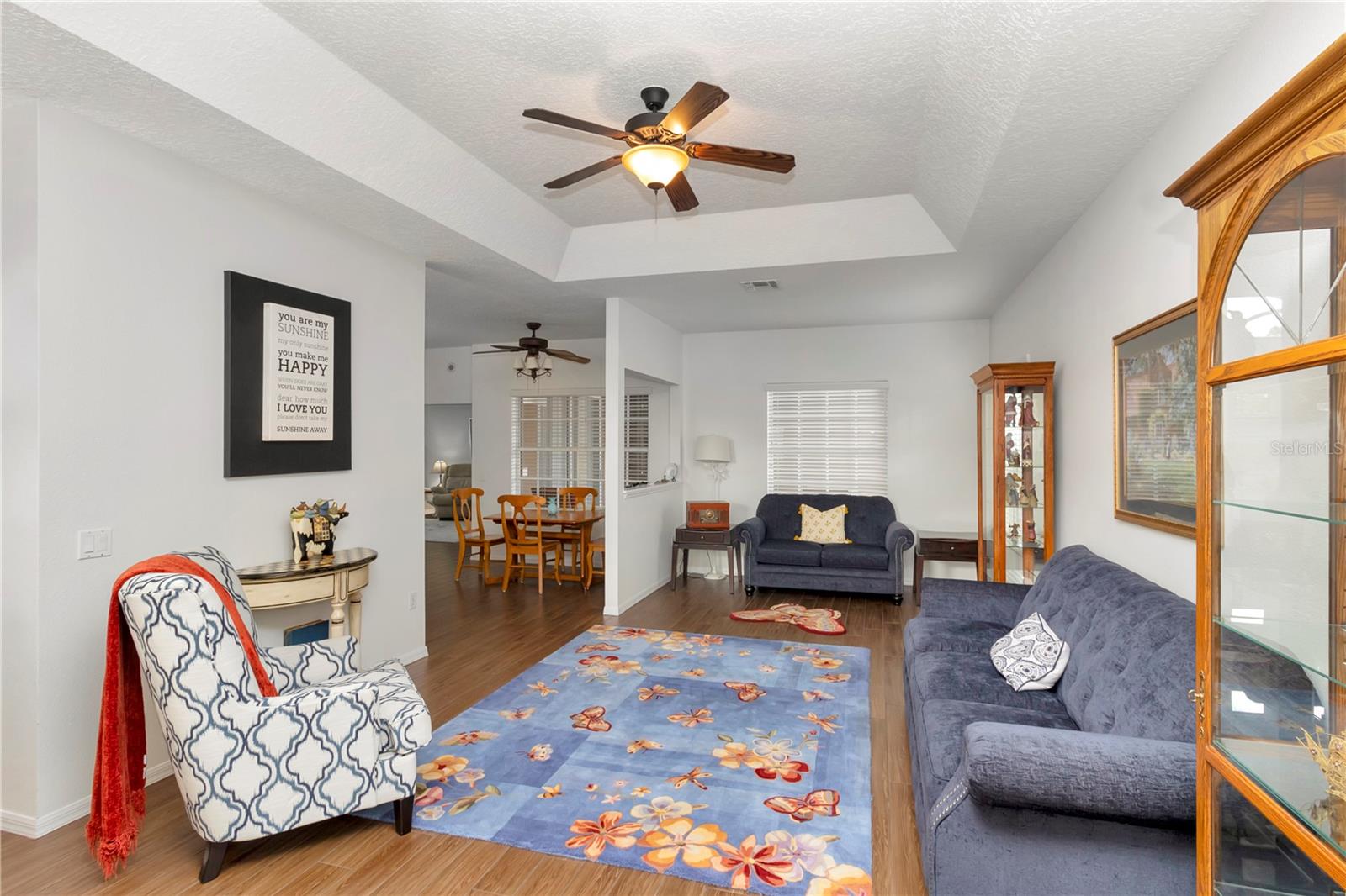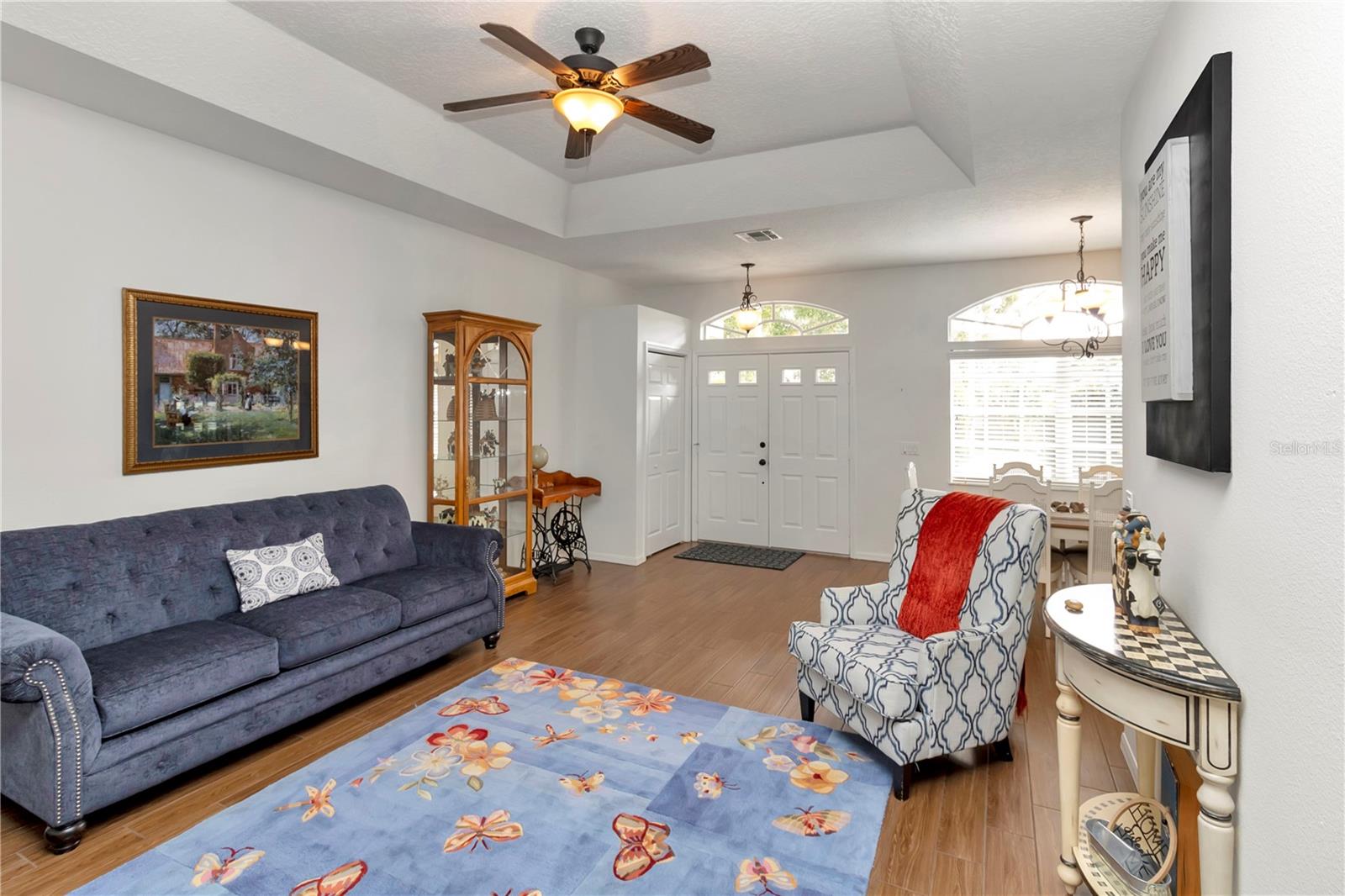 You'll LOVE this charming 3 bedroom, 2 bathroom home on Titleist Drive in Hudson! The split floor plan features spacious living areas and walkways with a ton of natural light. You'll notice durable tile flooring throughout this home, ceiling fans, and quaint details like arched ceilings and dual closets in the primary bedroom. Double sinks and a corner shower in the primary bathroom make the space both contemporary and convenient. The kitchen cabinetry provides lots of storage space, and the attached breakfast nook makes it a lovely place to entertain. Love the furniture in the photos? Seller is willing to negotiate any piece you can't live without! This property is idyllic and intuitive inside AND outside, with a large 15x25 screened patio and gutters fitted with leaf guard. Plus, this home is located in a neighborhood with low HOA fees only 20 minutes from the beach. Don't miss it! Schedule your showing today!